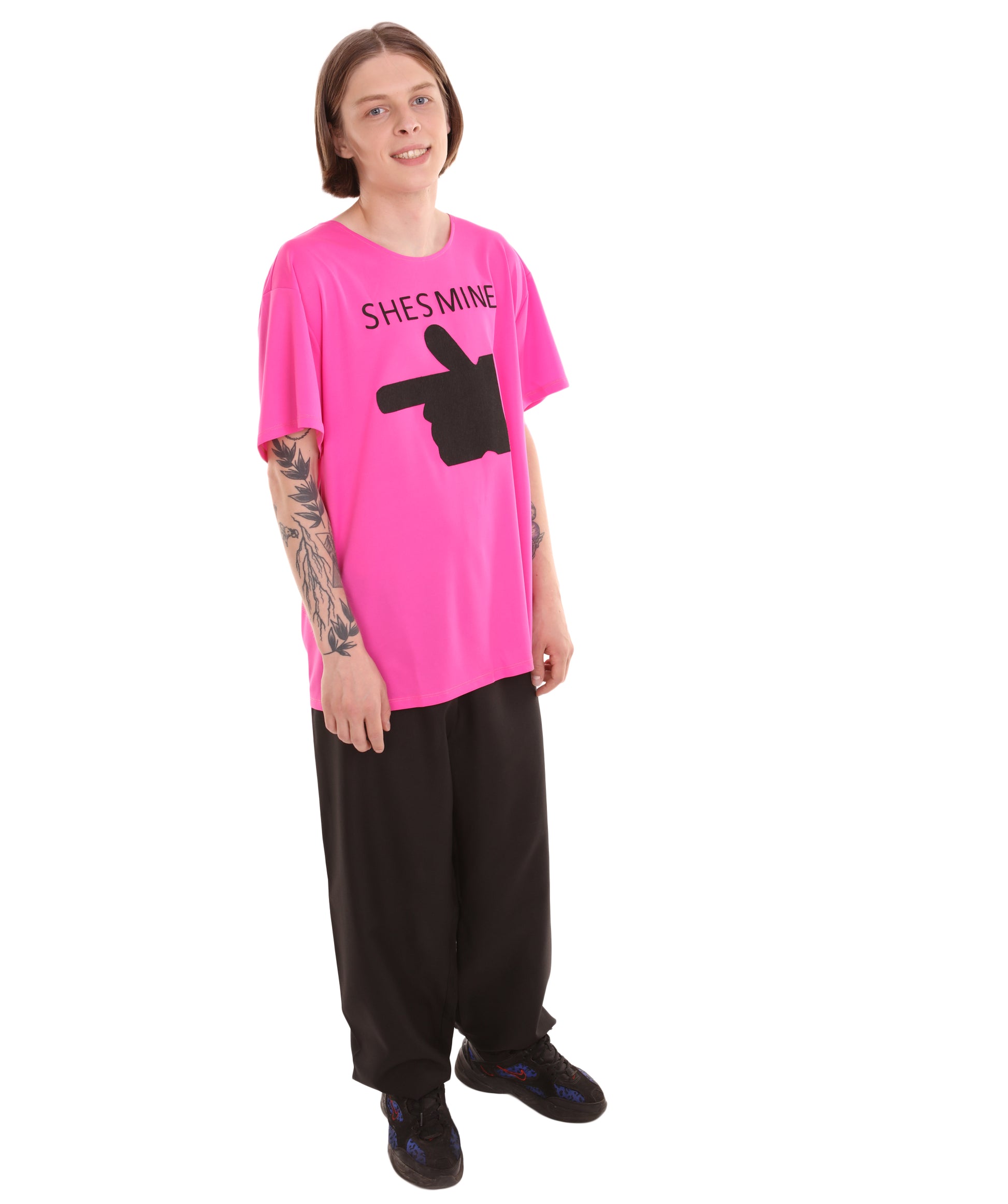 大人向け女性用 バレンタインデー ホットピンク マッチング カップル "He's Mine" Tシャツ コスプレ コスチュームコレクション