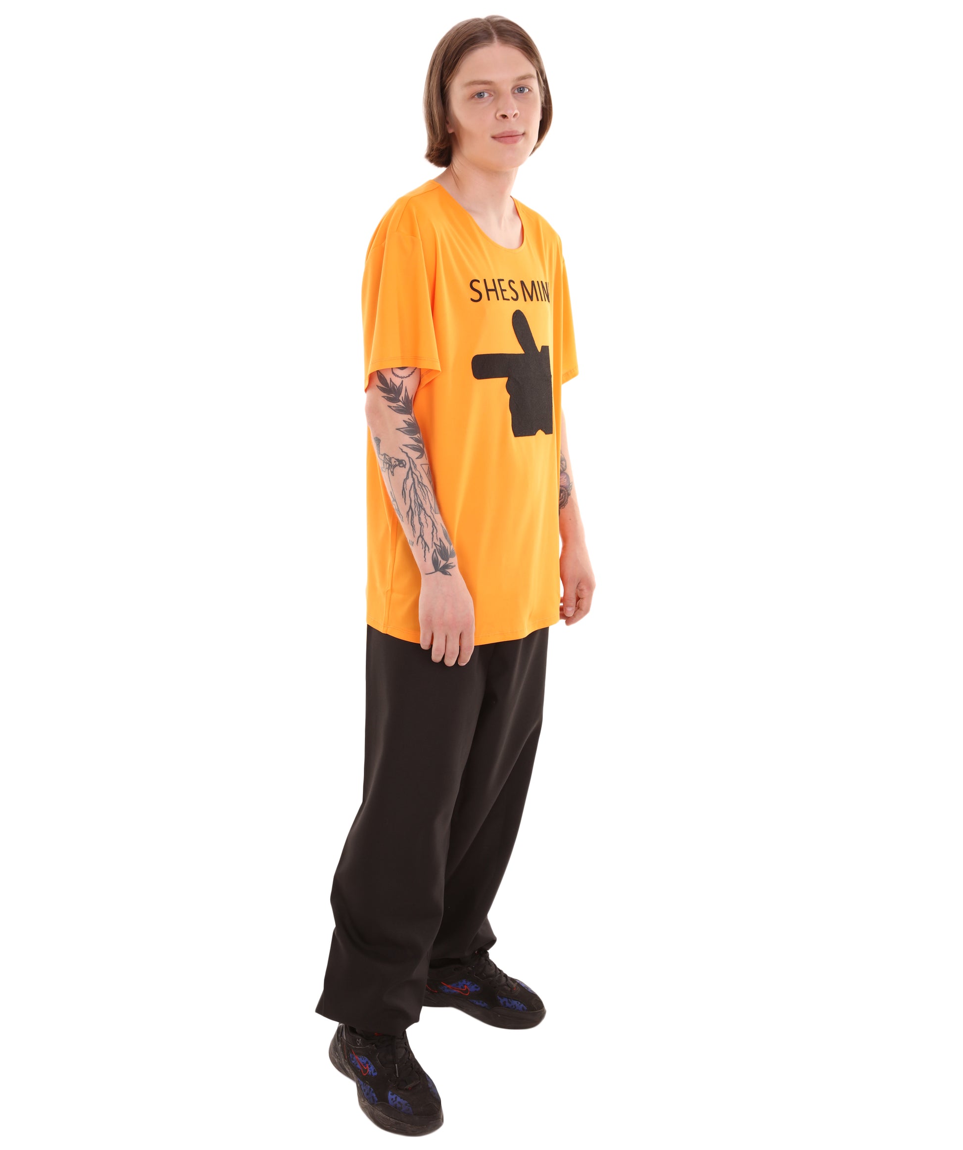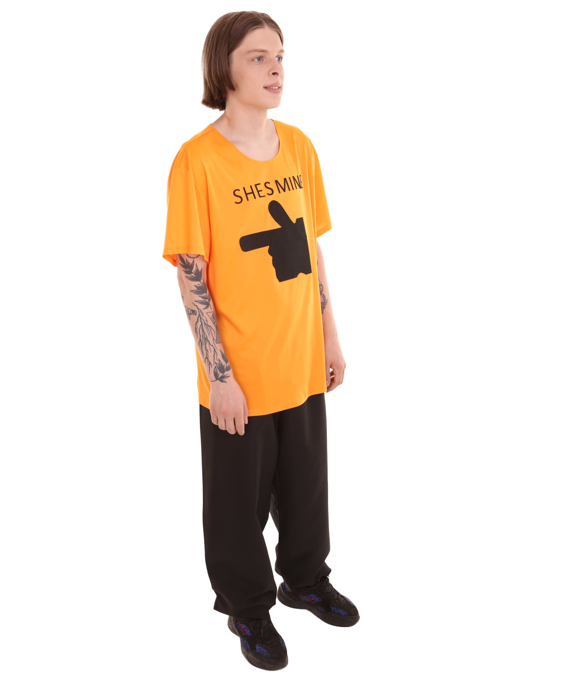 大人向け女性用 バレンタインデー オレンジ マッチング カップル "He's Mine" Tシャツ コスプレ コスチュームコレクション