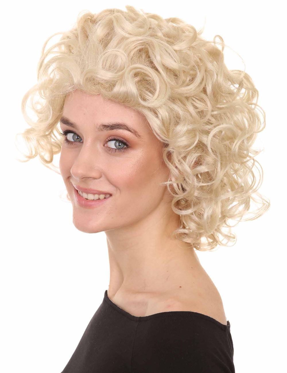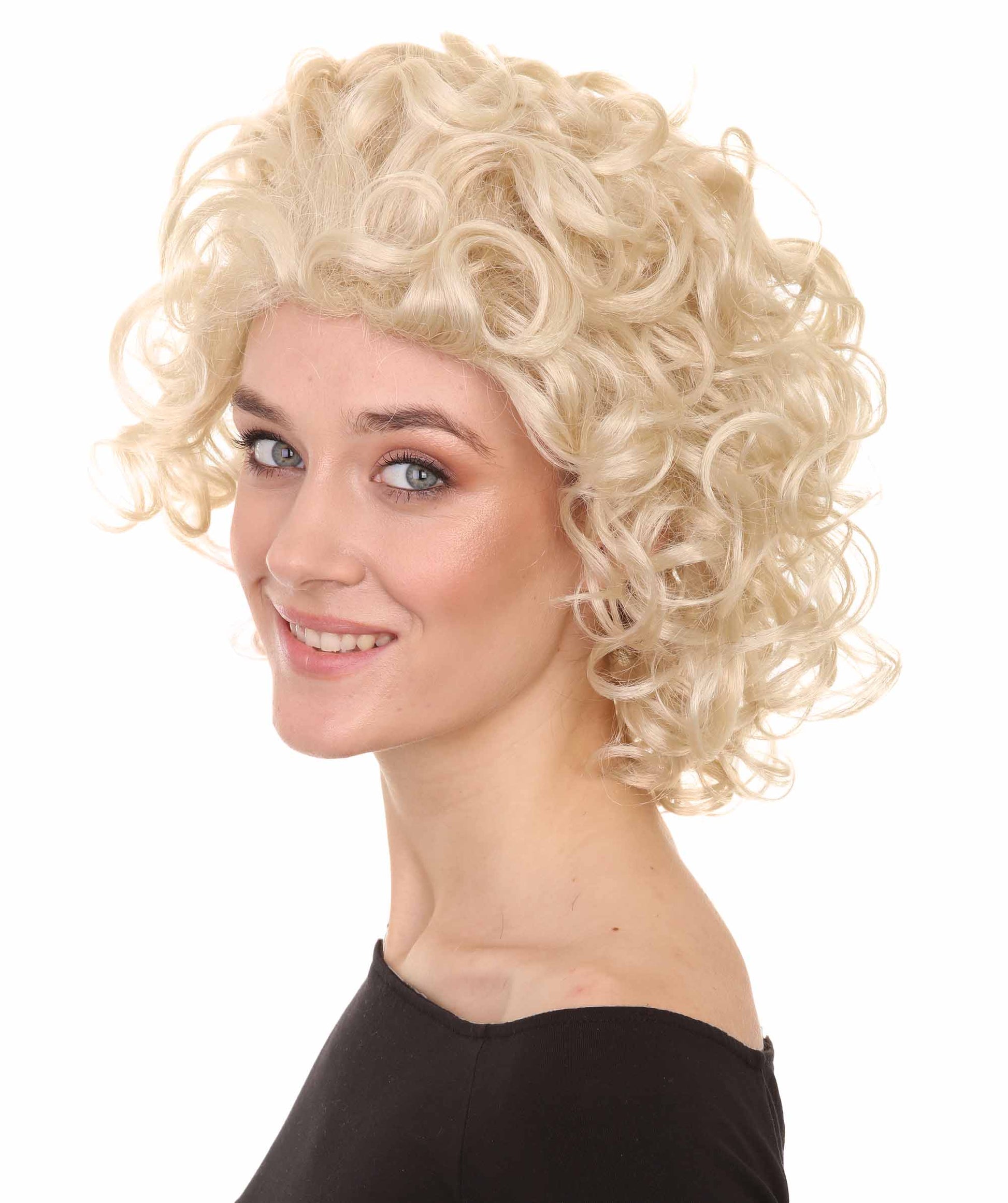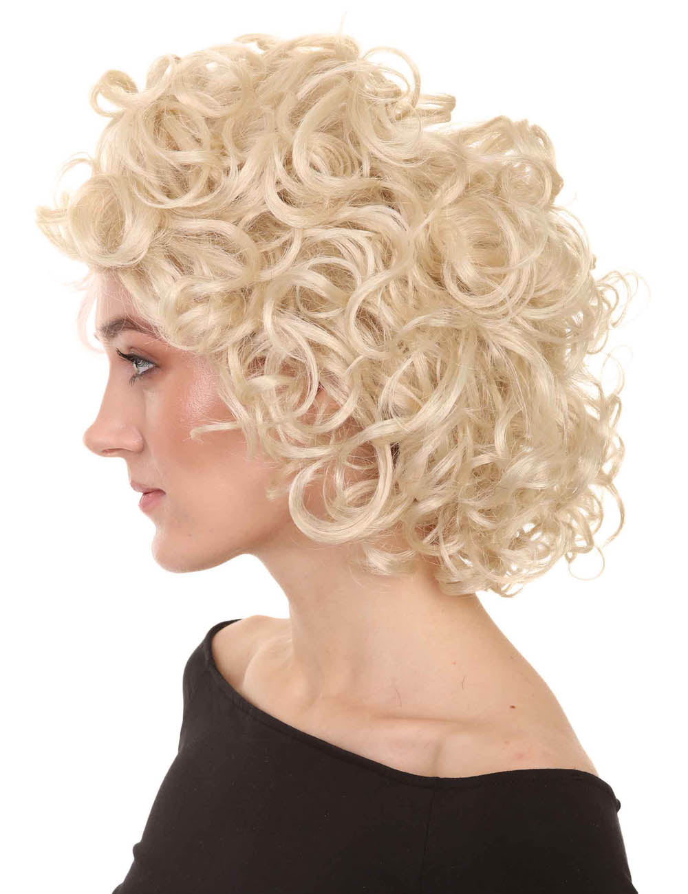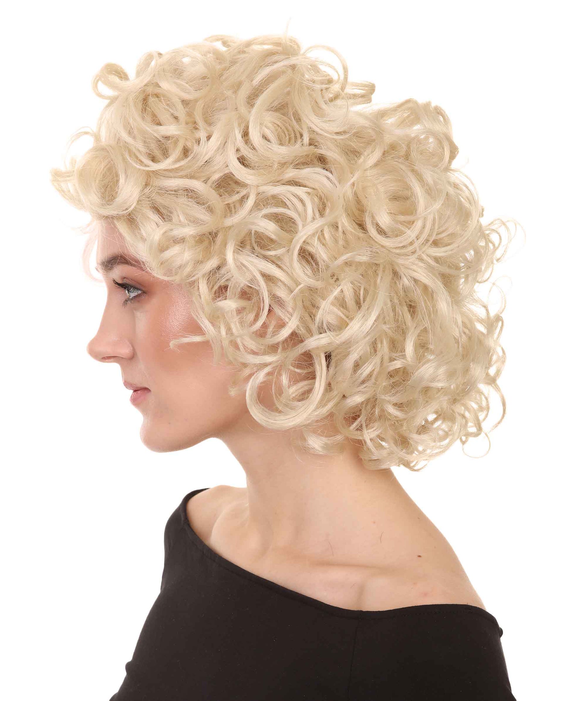 大人女性用ウィッグ ショート カーリー ブロンド 大きい プレミアム通気性キャップレスキャップ H-274