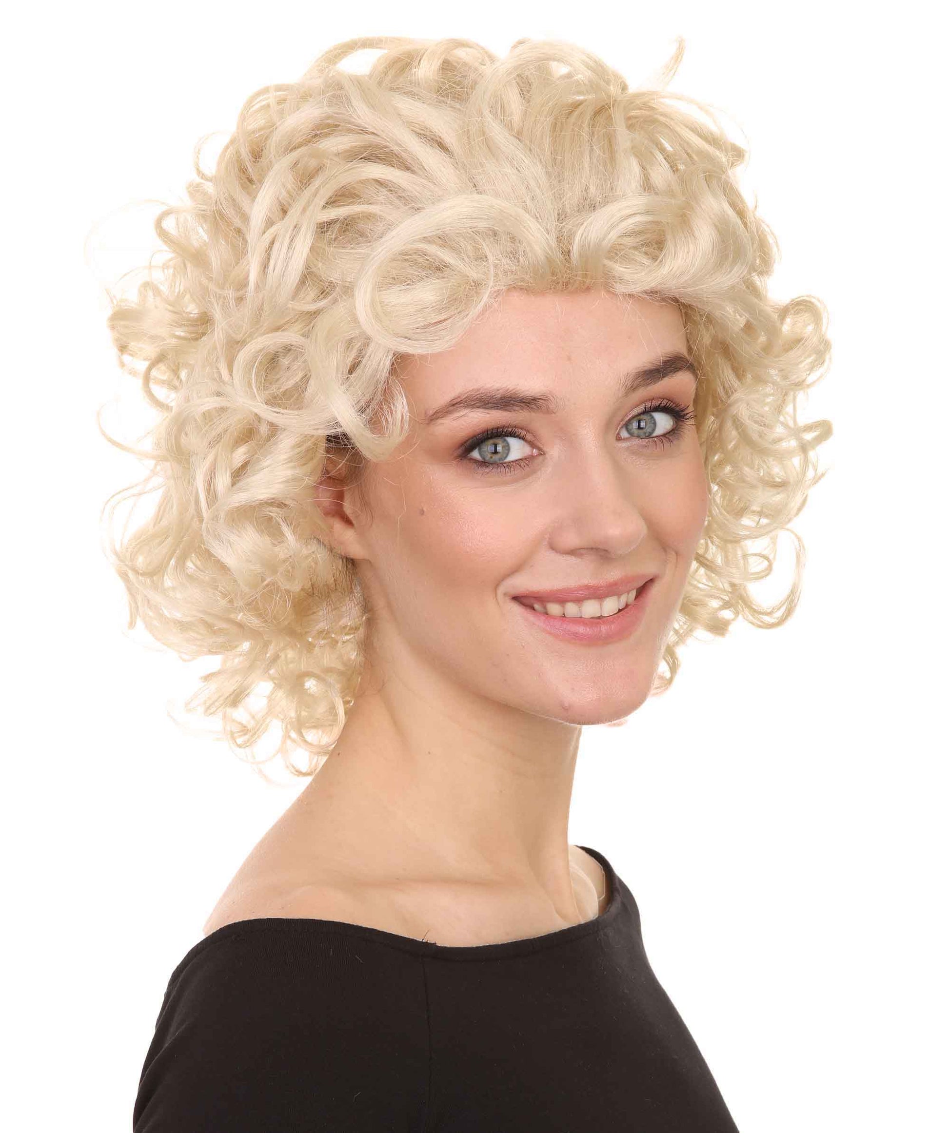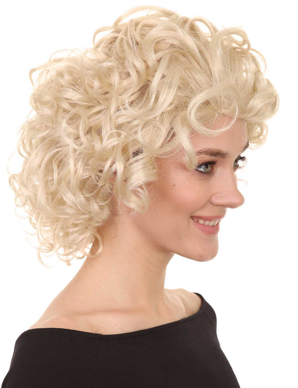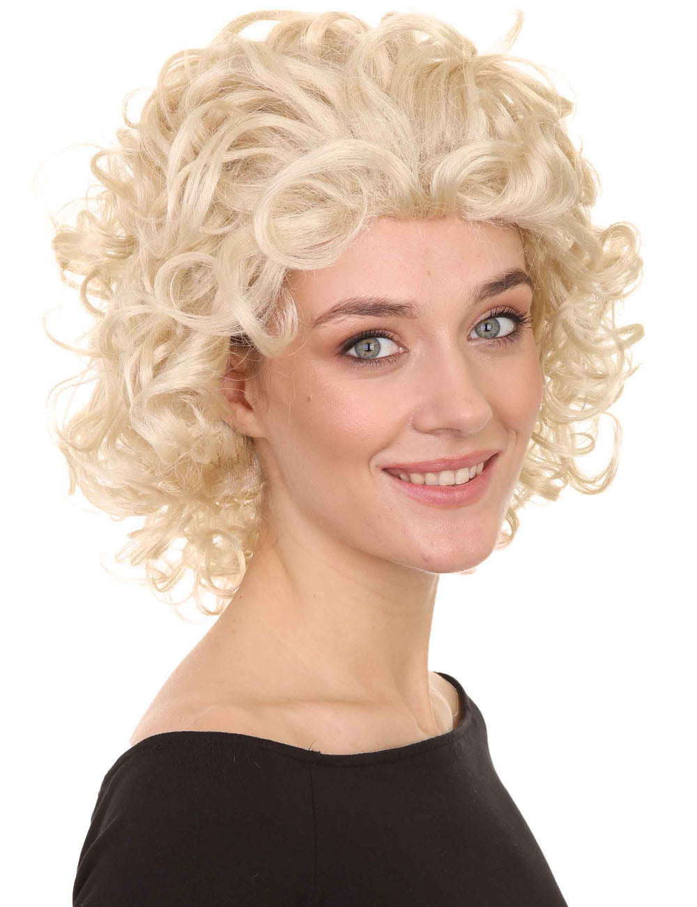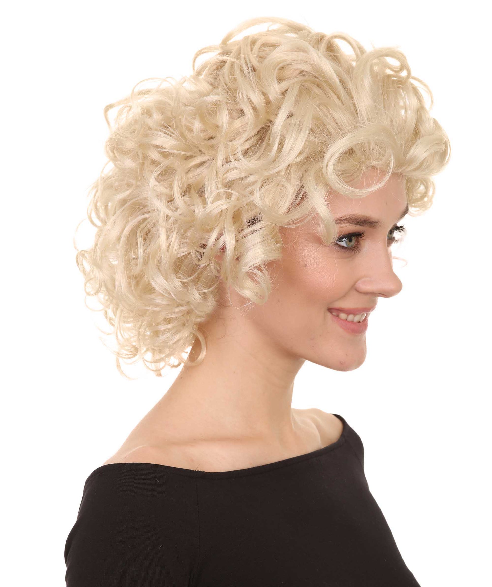 大人女性用ウィッグ ショート カーリー ブロンド 大きい プレミアム通気性キャップレスキャップ H-274