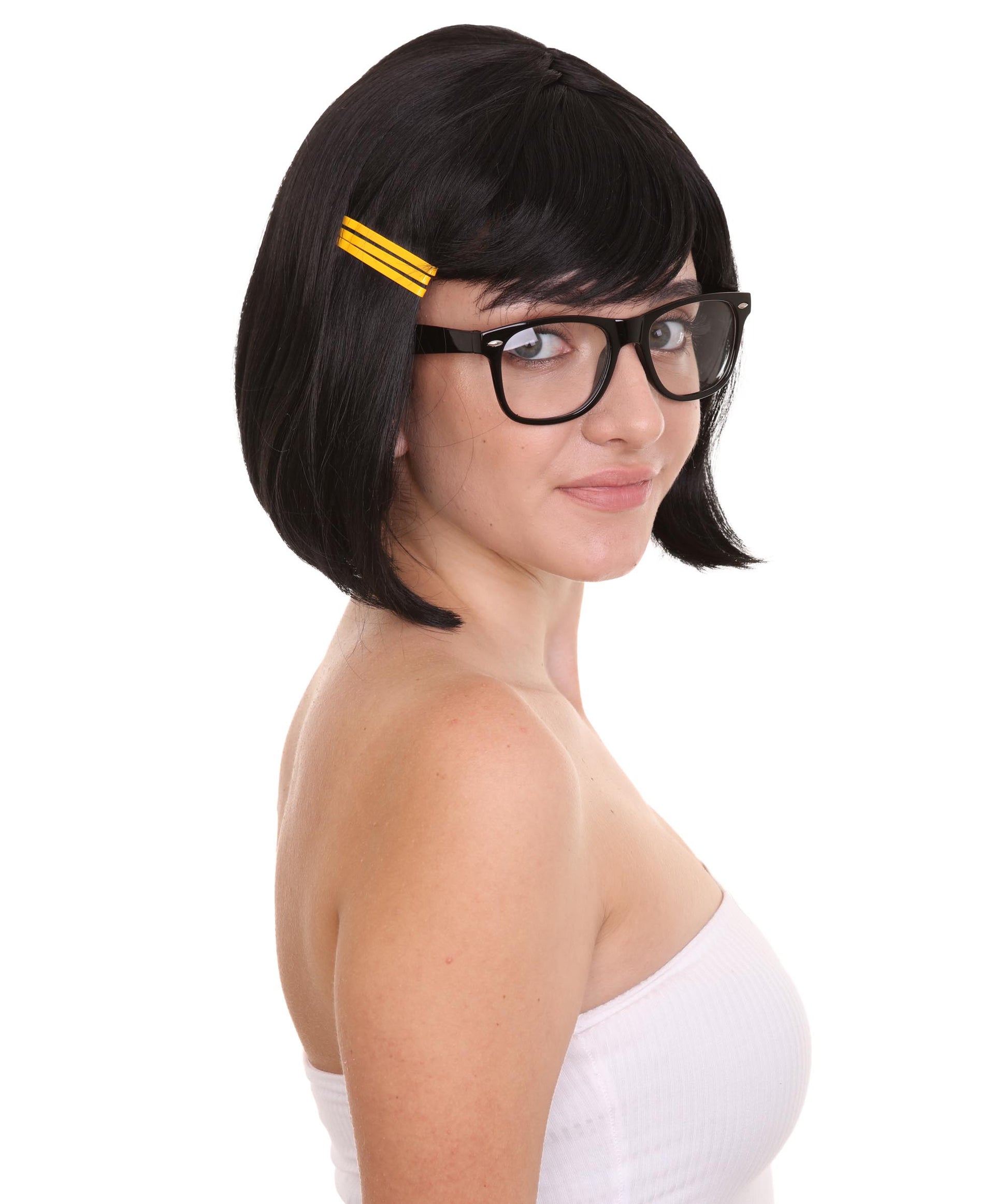 ボブズバーガー ティナ バルチャー ブラックウィッグ & グラスセット H-4557 TV/映画ウィッグ プレミアム通気性キャップレスキャップ