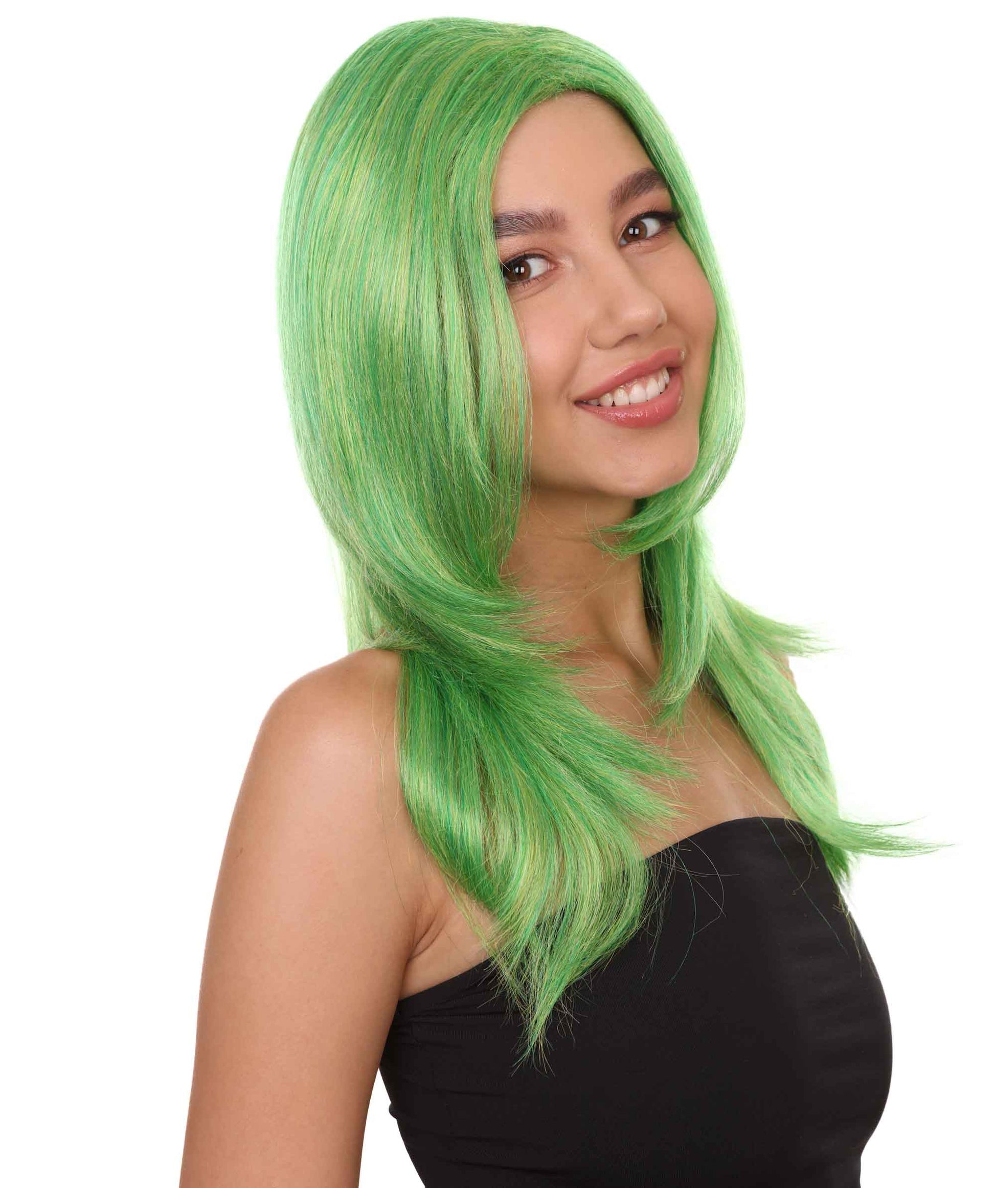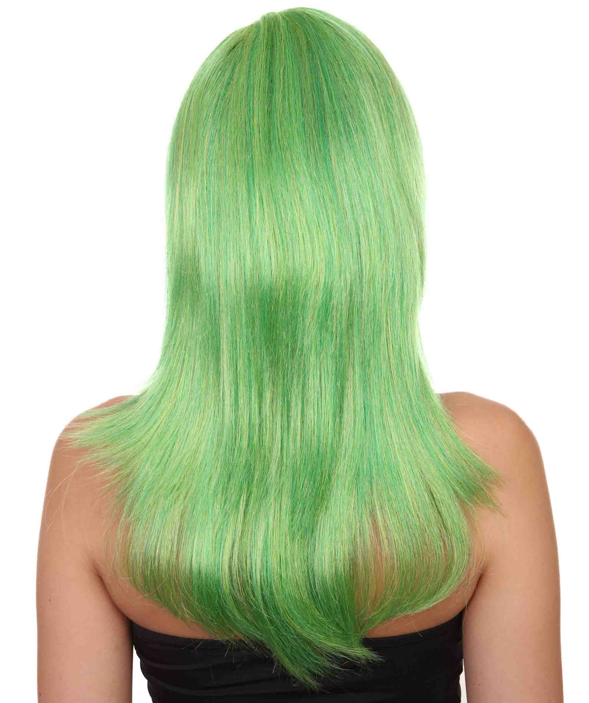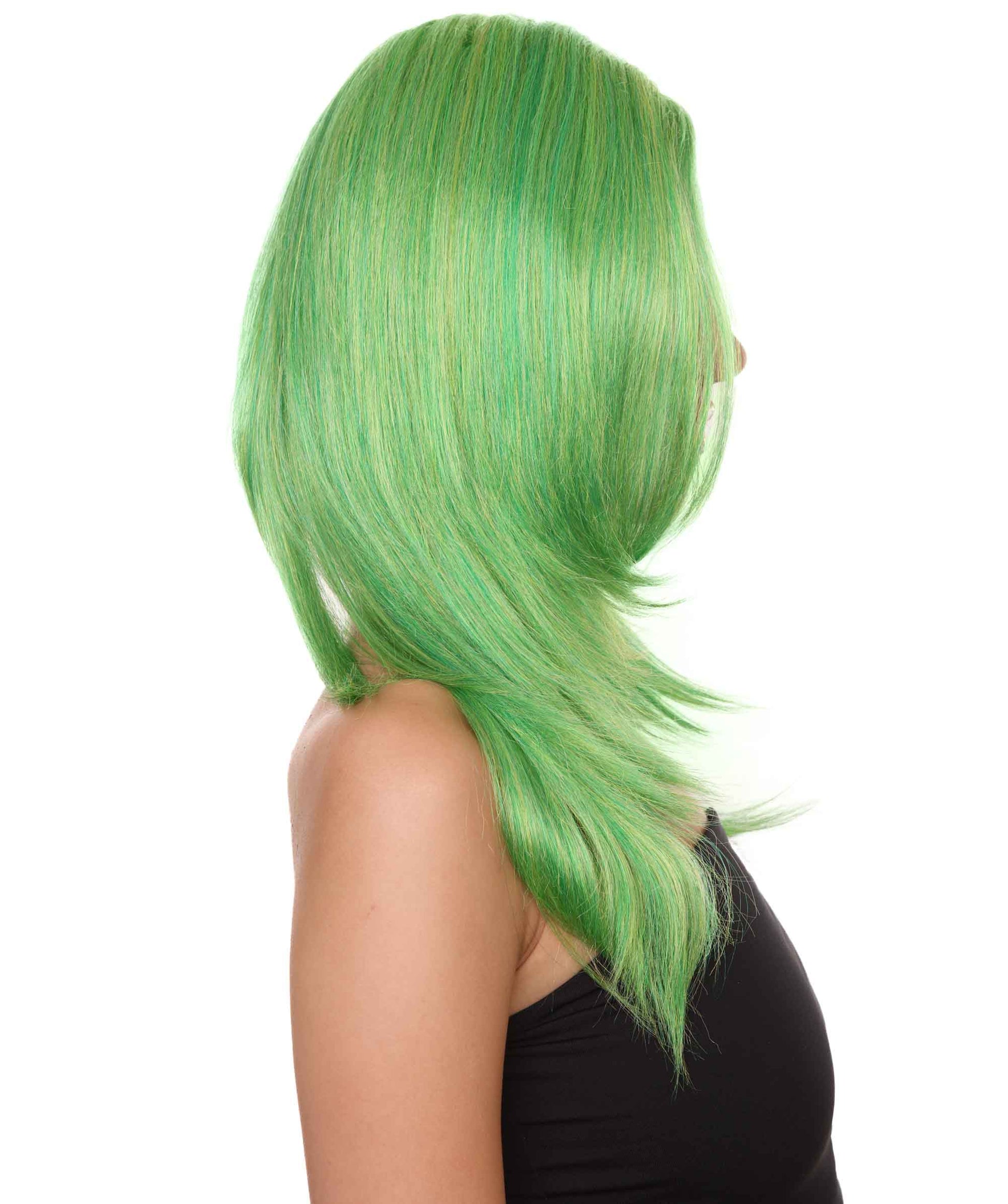 クラウンガール グリーンロングウィッグ H-3810 キャラクターコスプレハロウィンウィッグ プレミアム 通気性の良い キャップレスキャップ