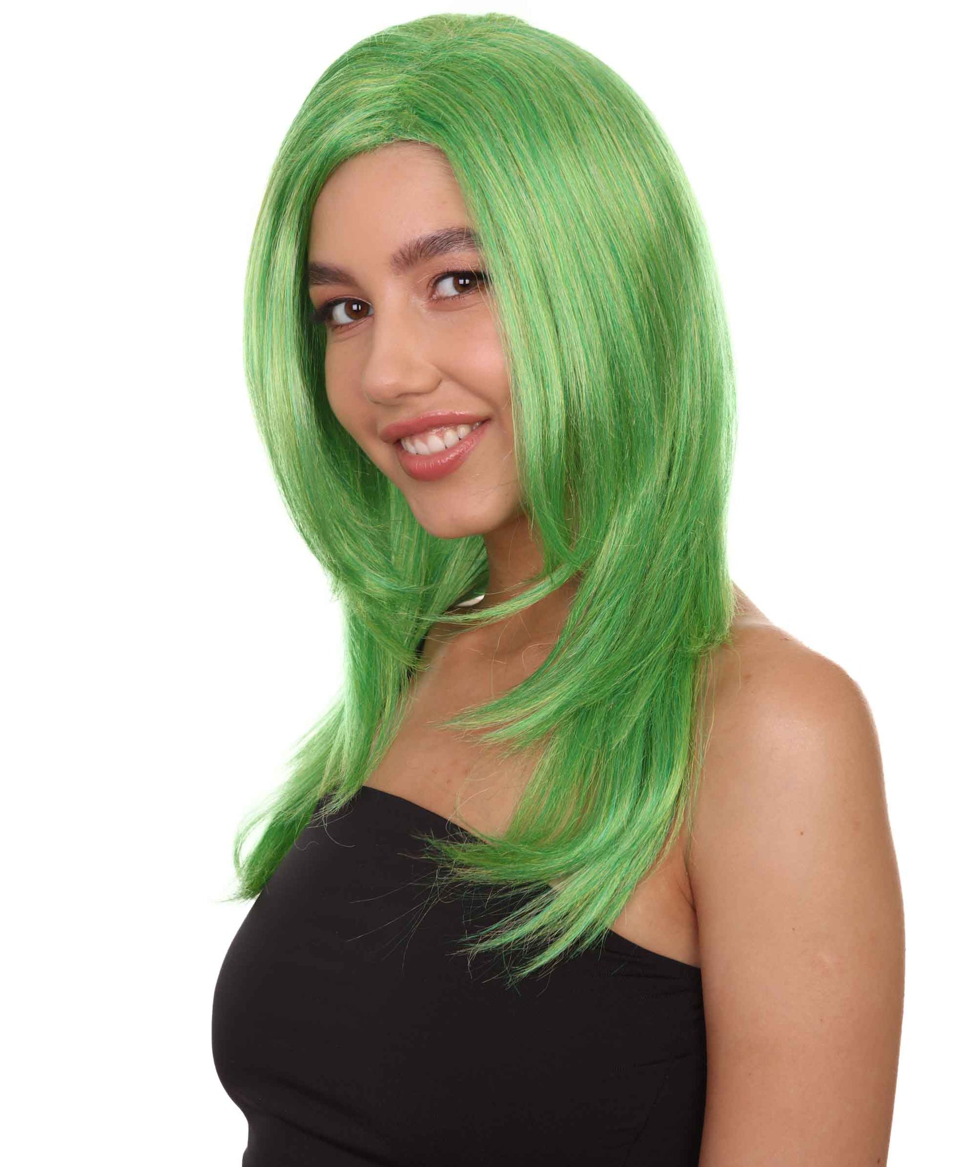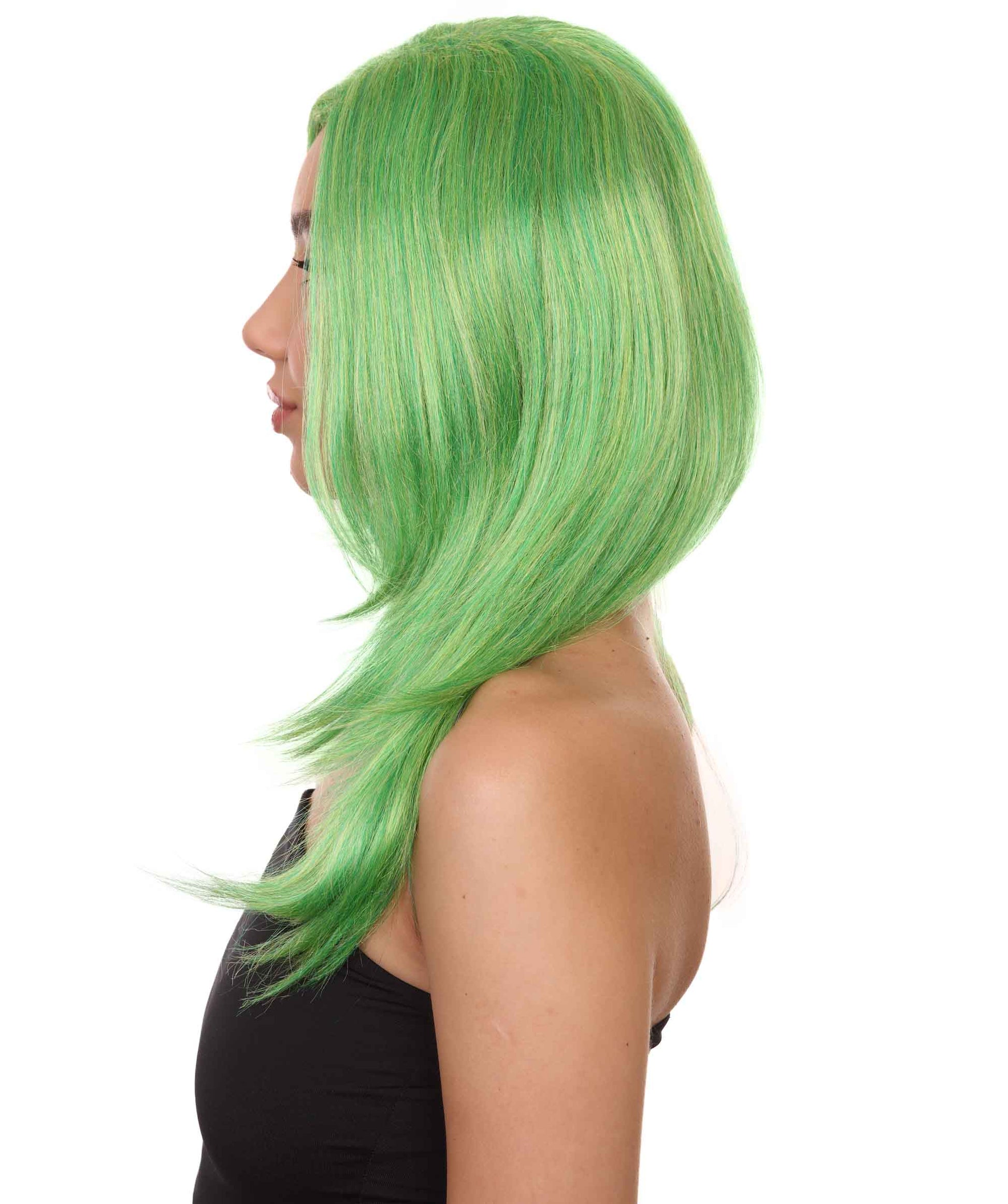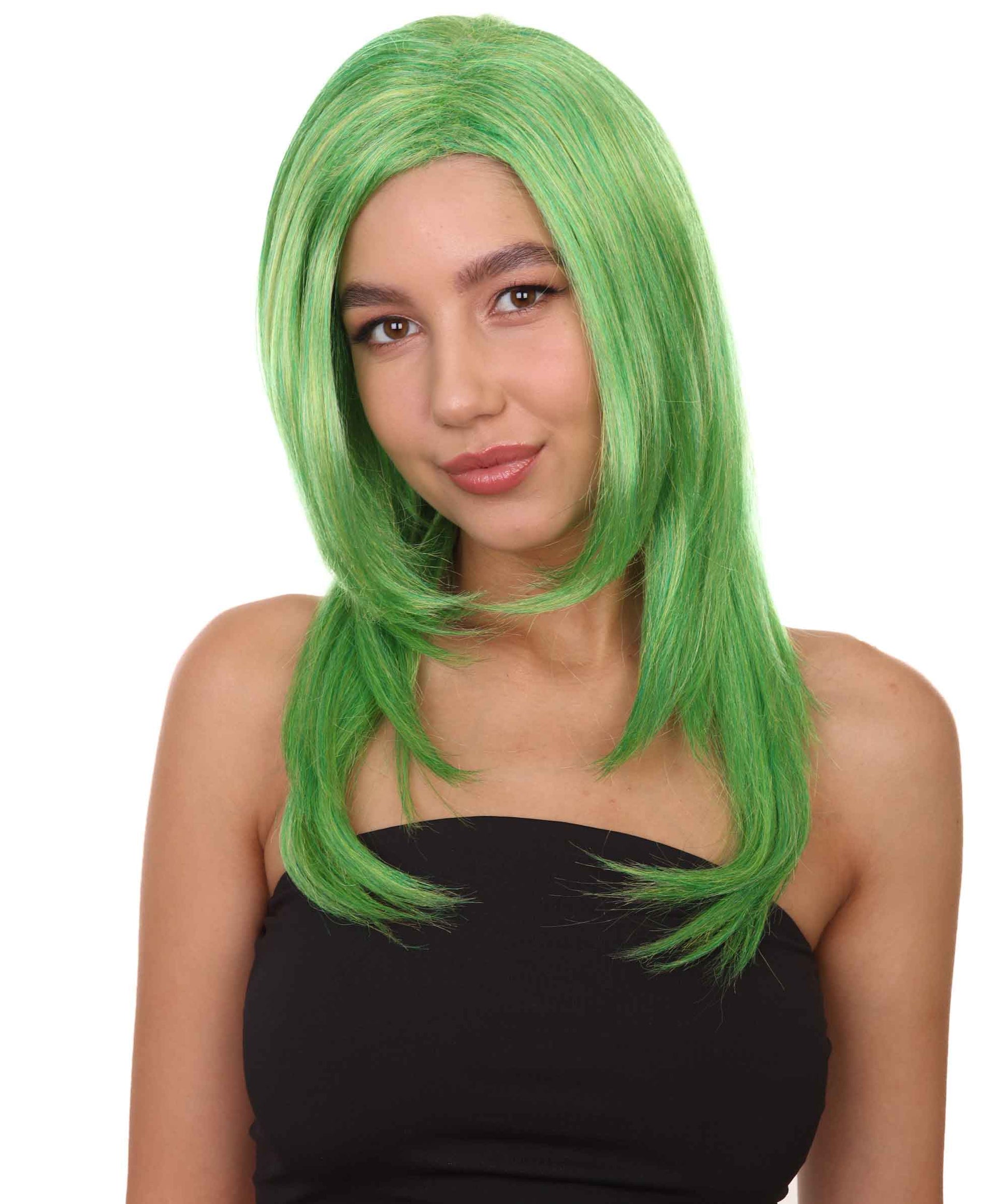 クラウンガール グリーンロングウィッグ H-3810 キャラクターコスプレハロウィンウィッグ プレミアム 通気性の良い キャップレスキャップ