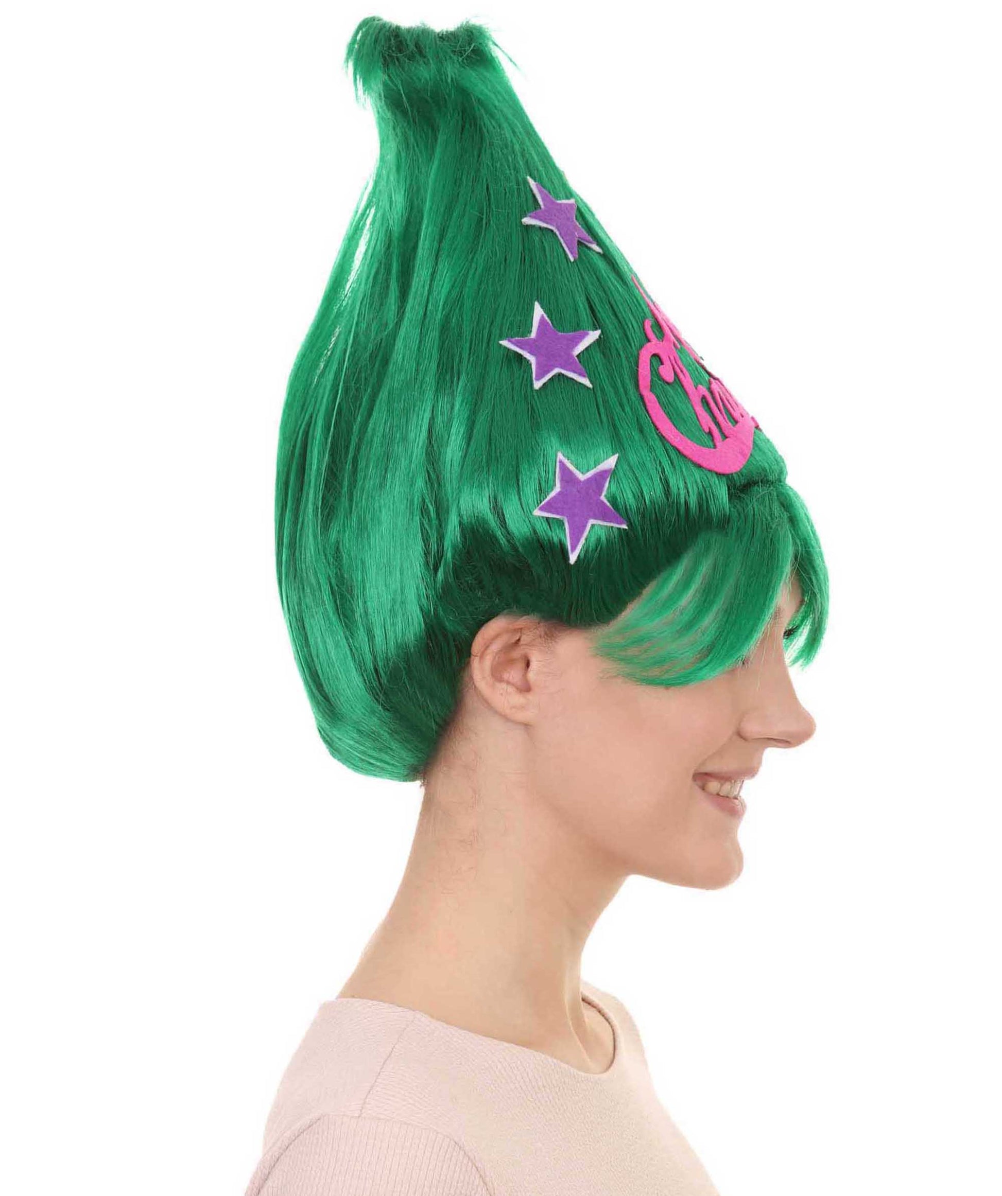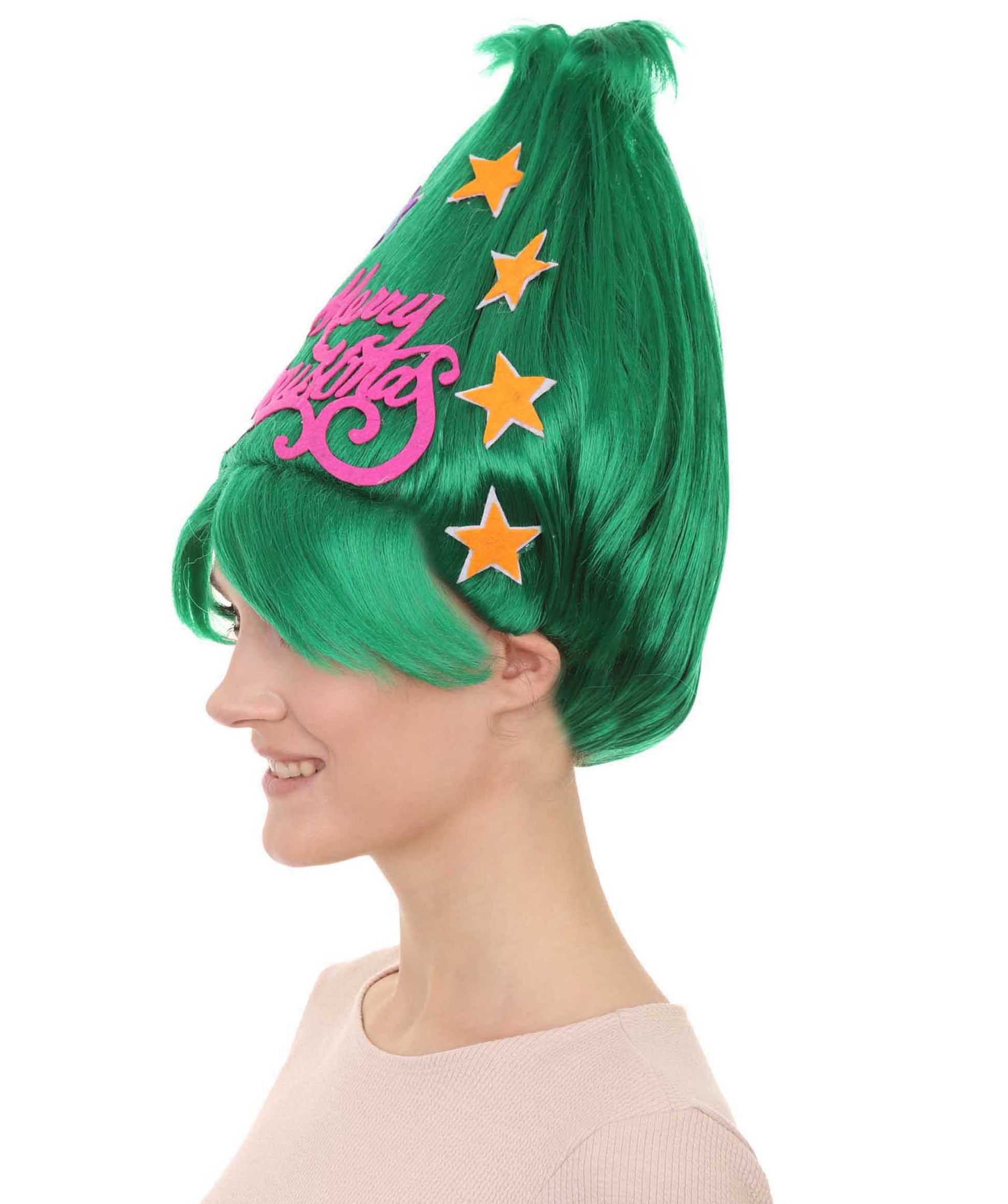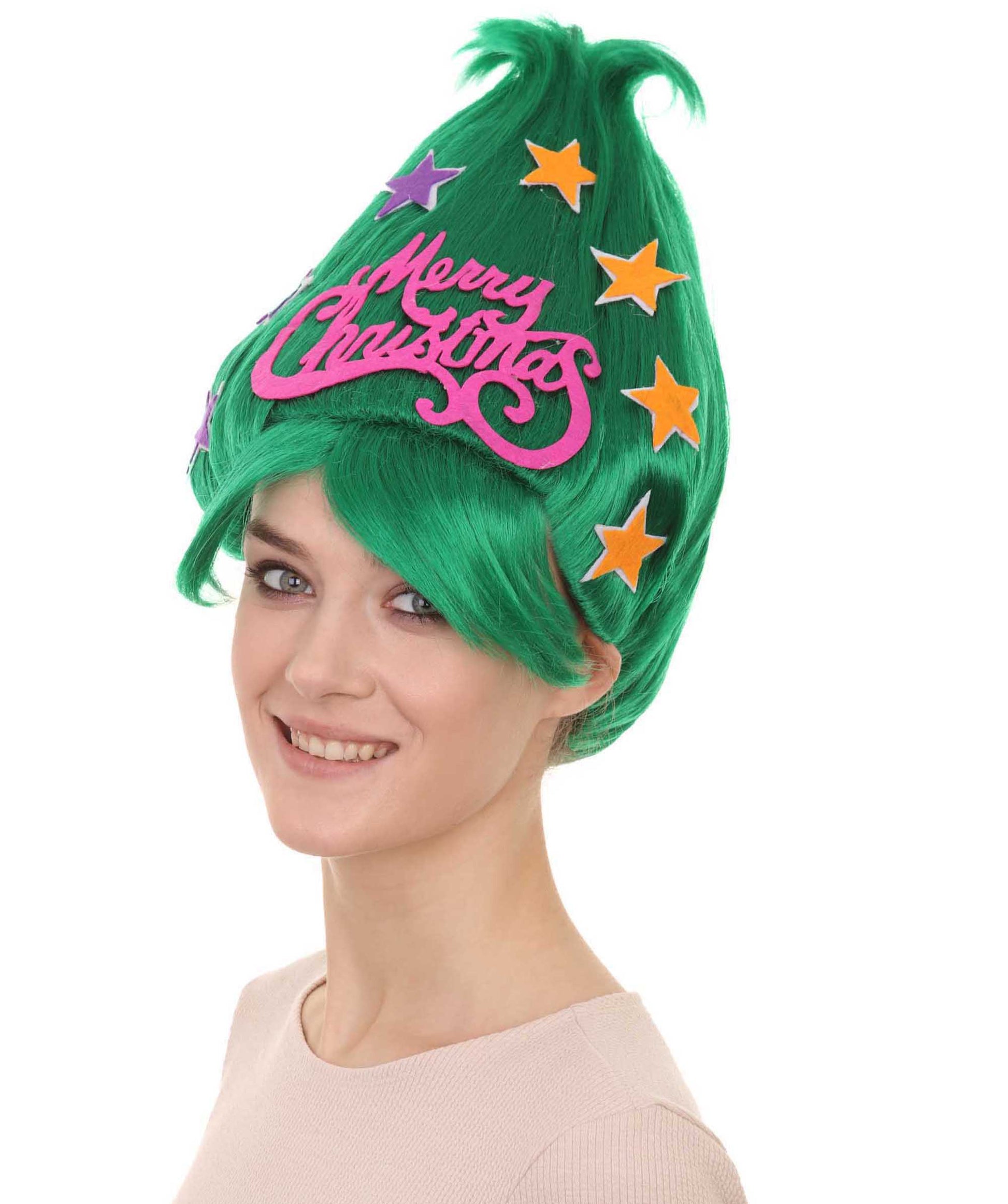 グリーンクリスマスツリーレディースウィッグ H-3529 メリーウィッグ プレミアム通気性のあるキャップレスキャップ