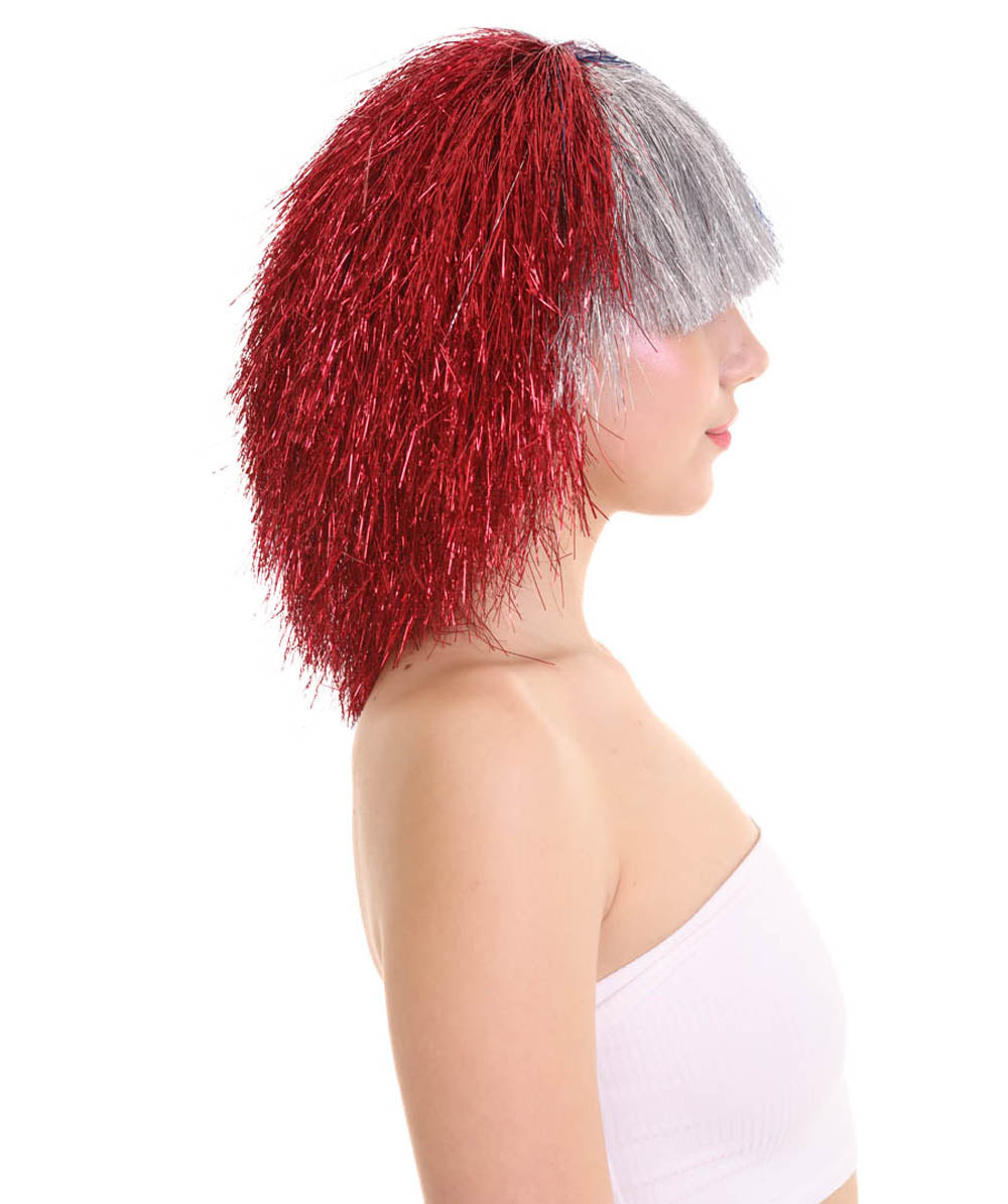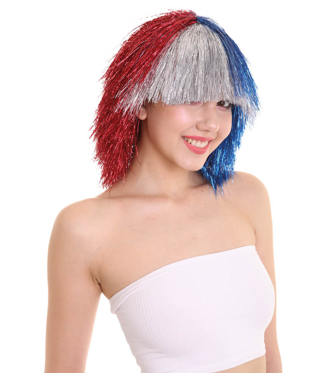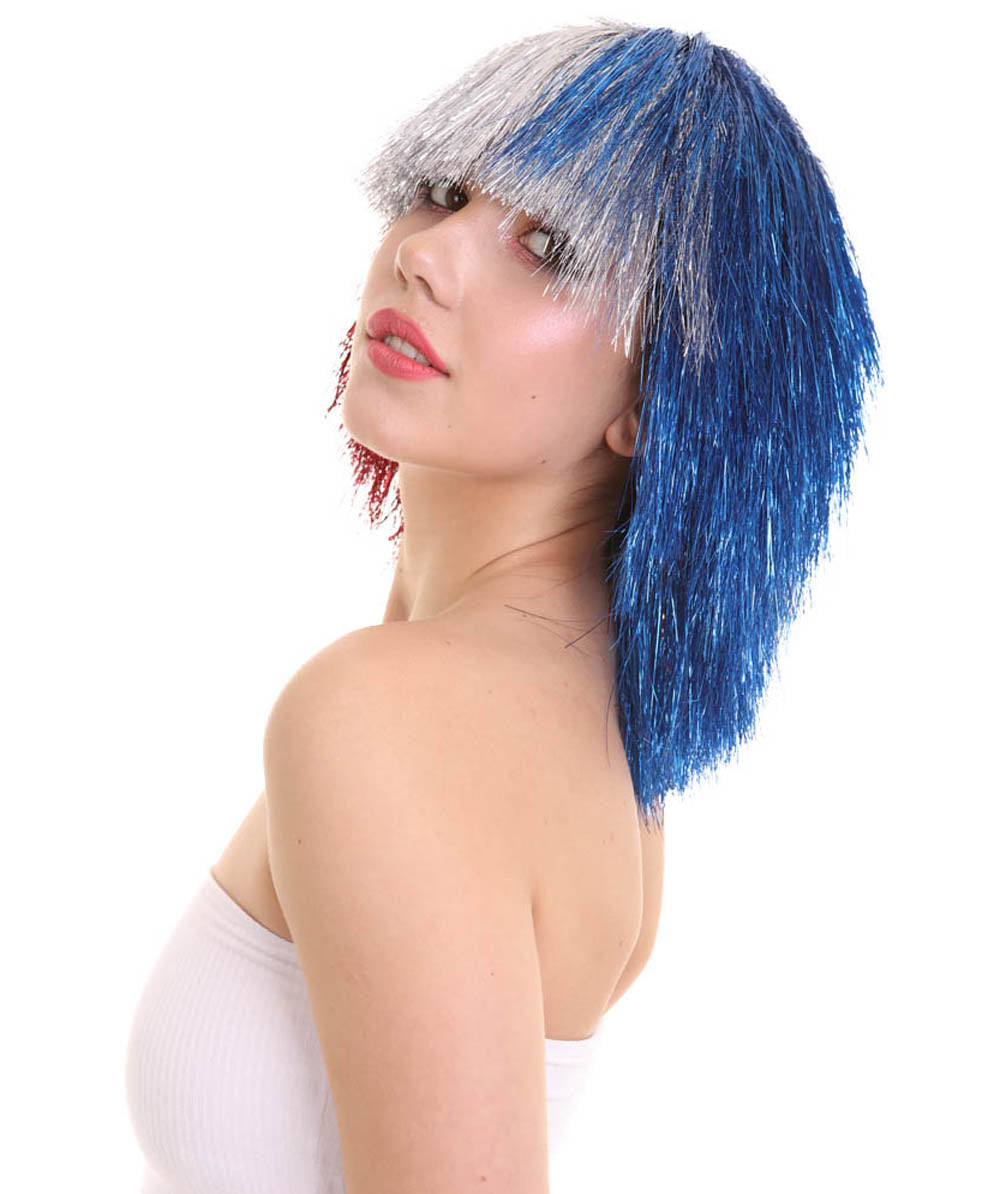 ハロウィンパーティ H-5219 女性用 シルバー、赤、青 全てのティンセル シャグウィッグ プレミアム 通気性抜群のキャップレスキャップ
