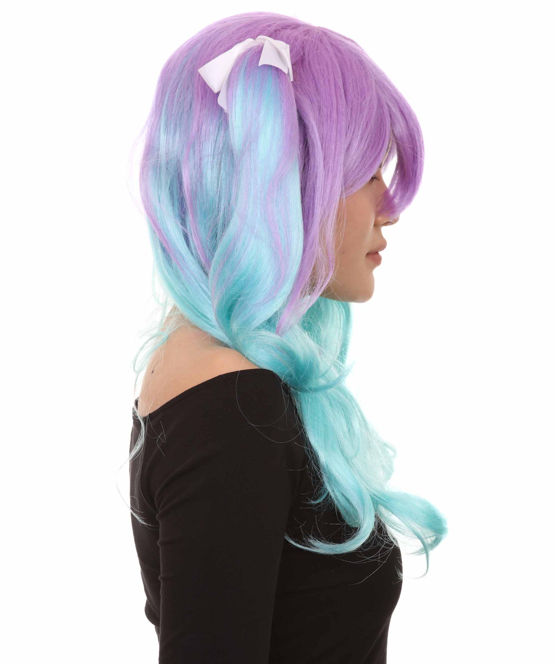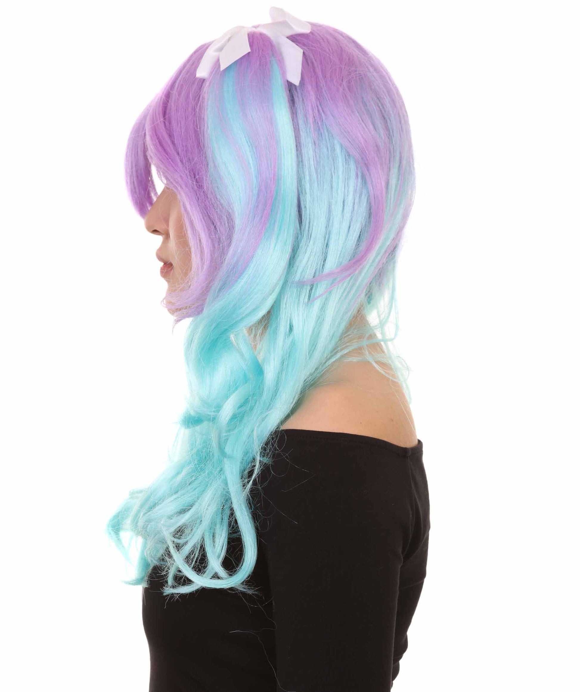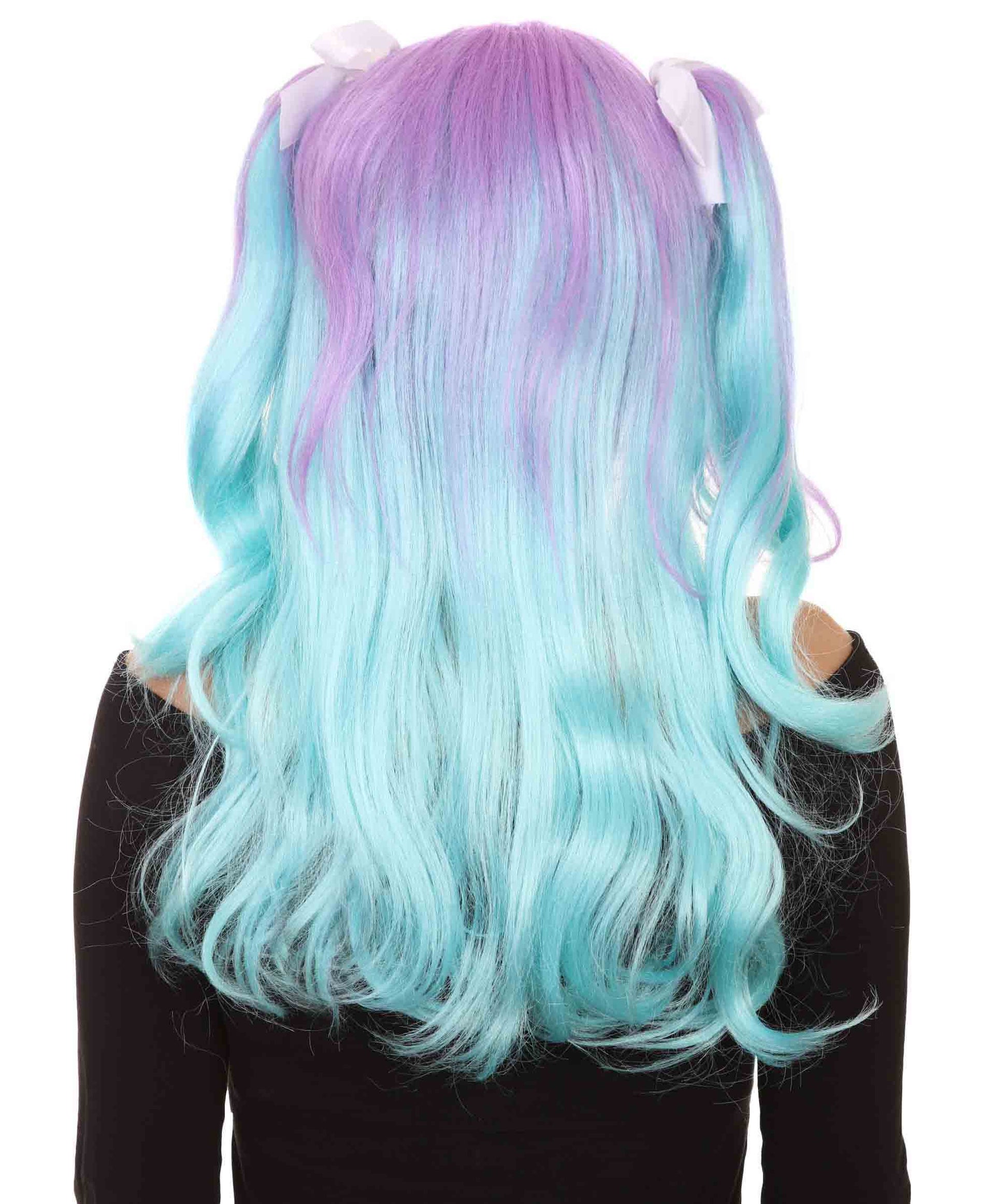 ハロウィンパーティープレミアム大人の女性用 H-2525 ブルーパープルポニーテールウィッグ 現代の淑女のためのエレガントなウィッグへの一歩