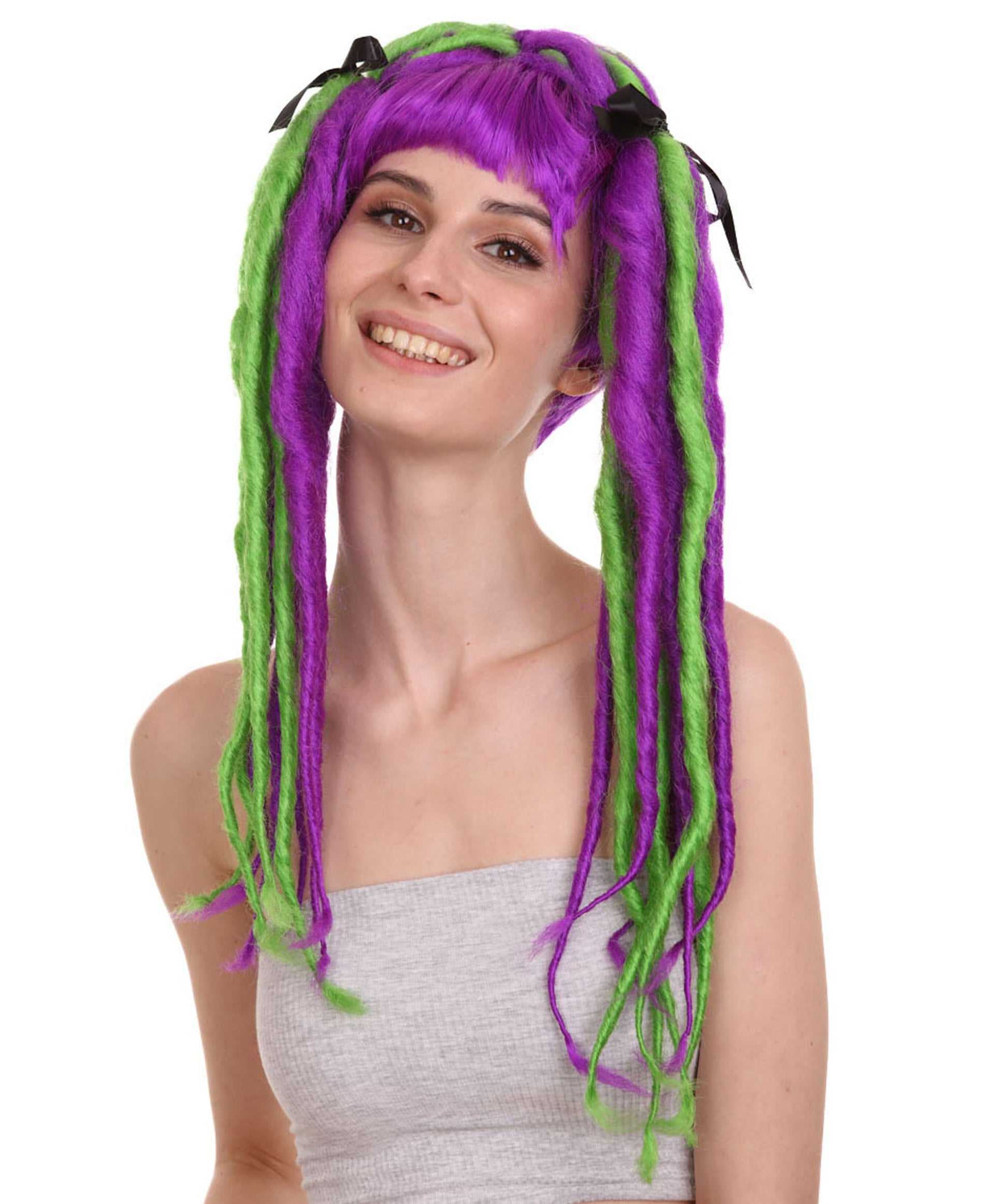 ハロウィンパーティープレミアム大人の女性用 H-2527 ネオンドレッドロックウィッグ 現代の淑女のためのエレガントなウィッグへの一歩