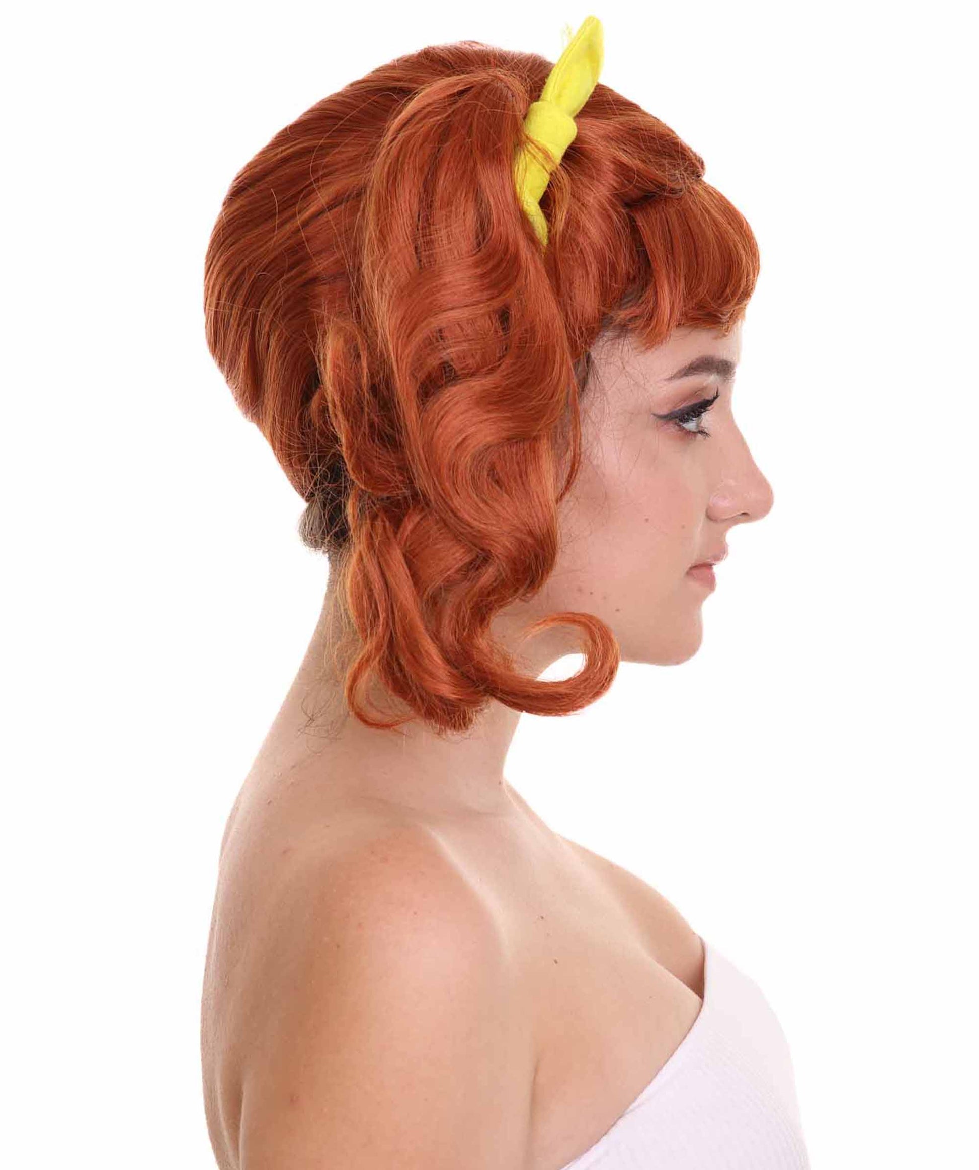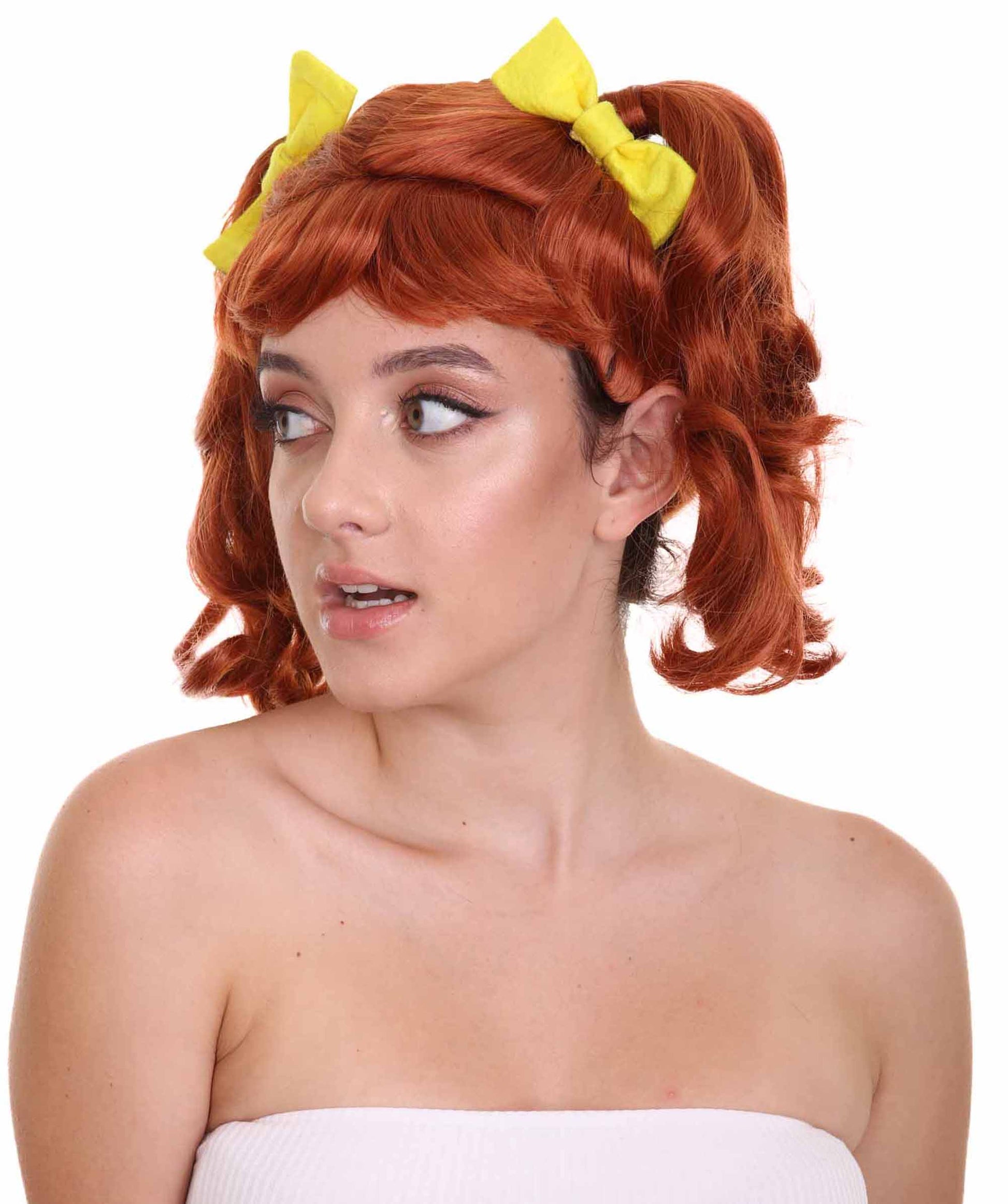 ハロウィンパーティープレミアム H-5246 女性用ショルダーレングスレッドヘッドピグテイルズ・イエローリボンウィッグ レッド