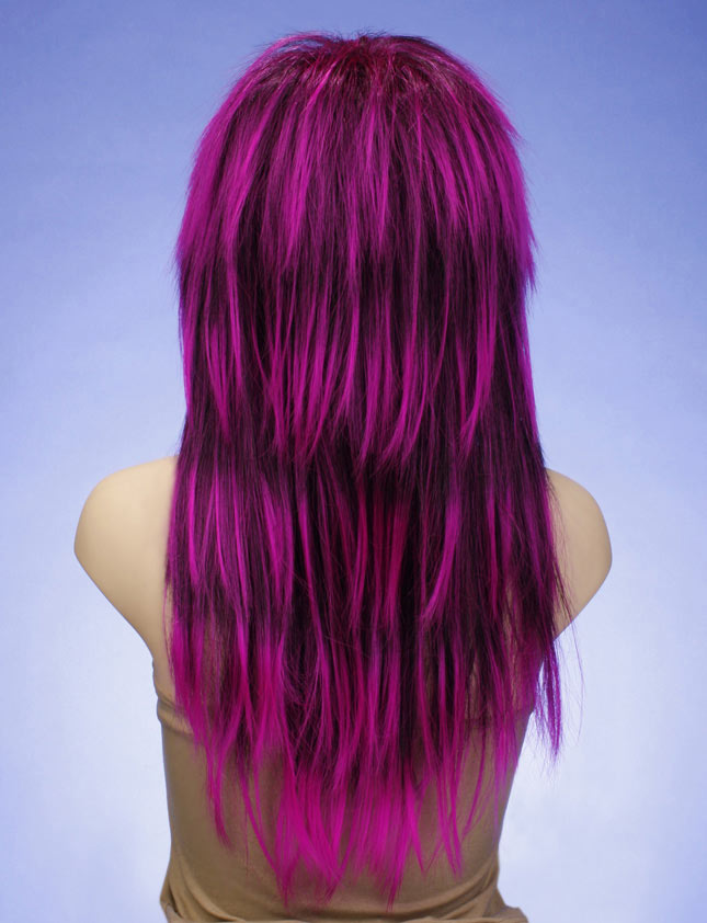 ハロウィンパーティープレミアムレディース H-104 ブラックネオンマゼンタチップウィッグ ファンシーキャラクターファッションウィッグ