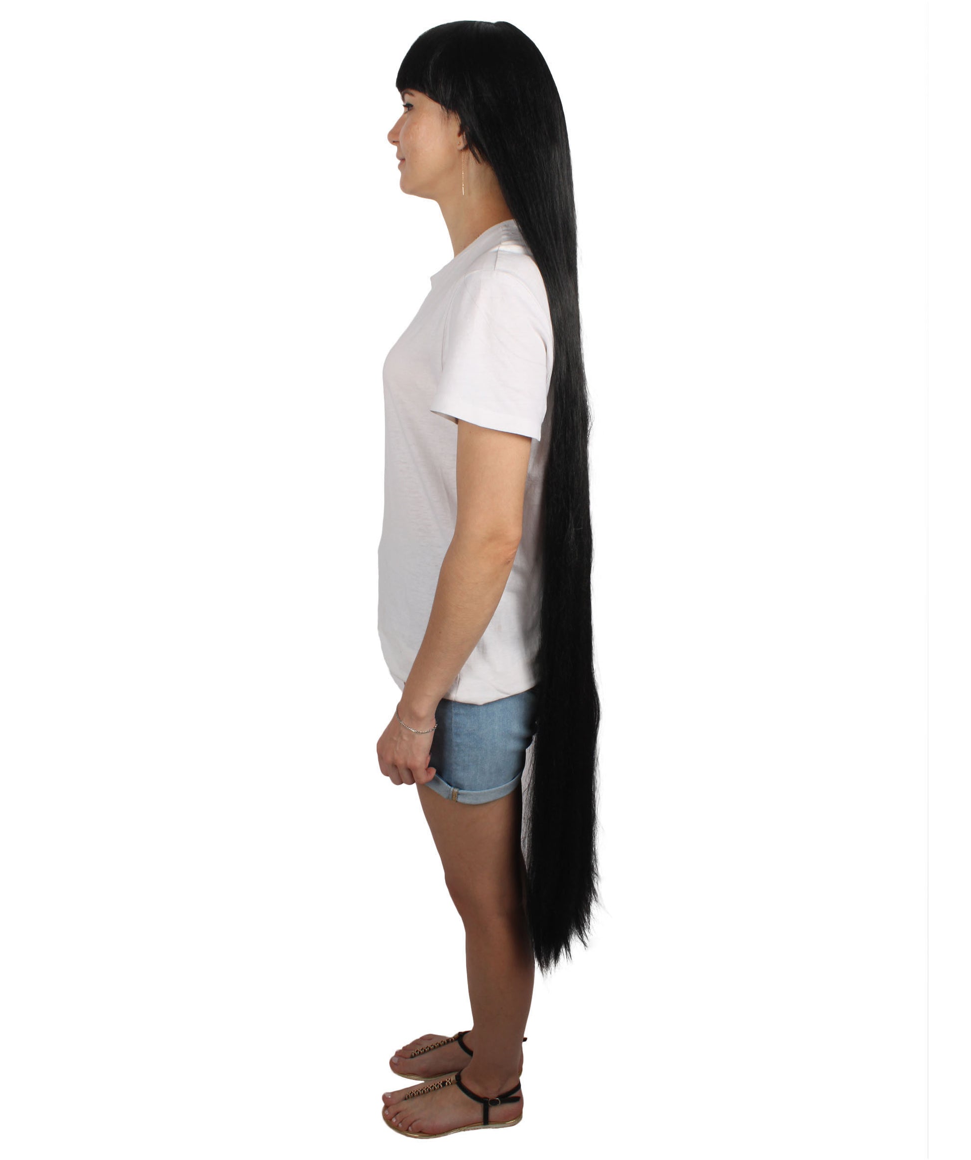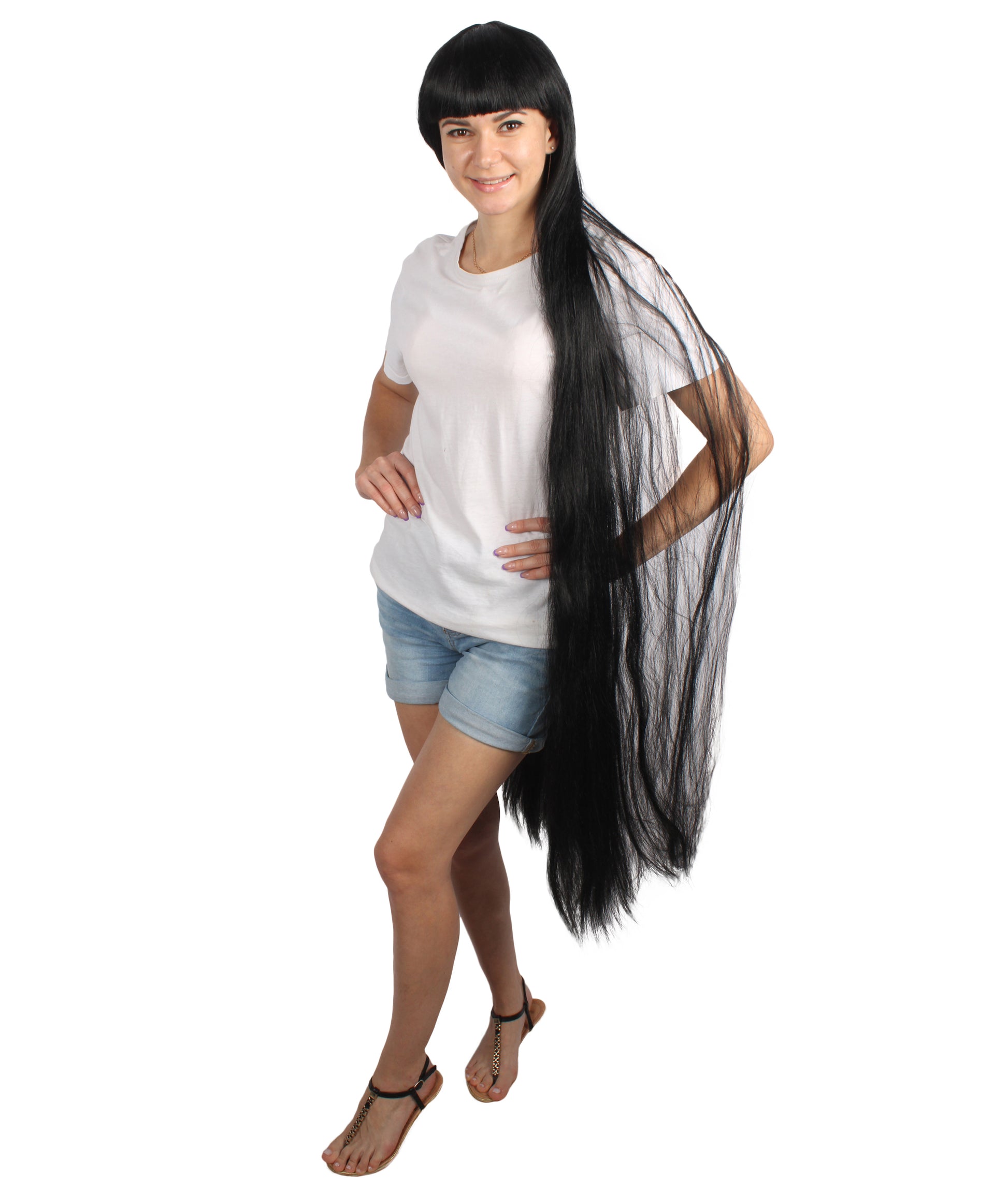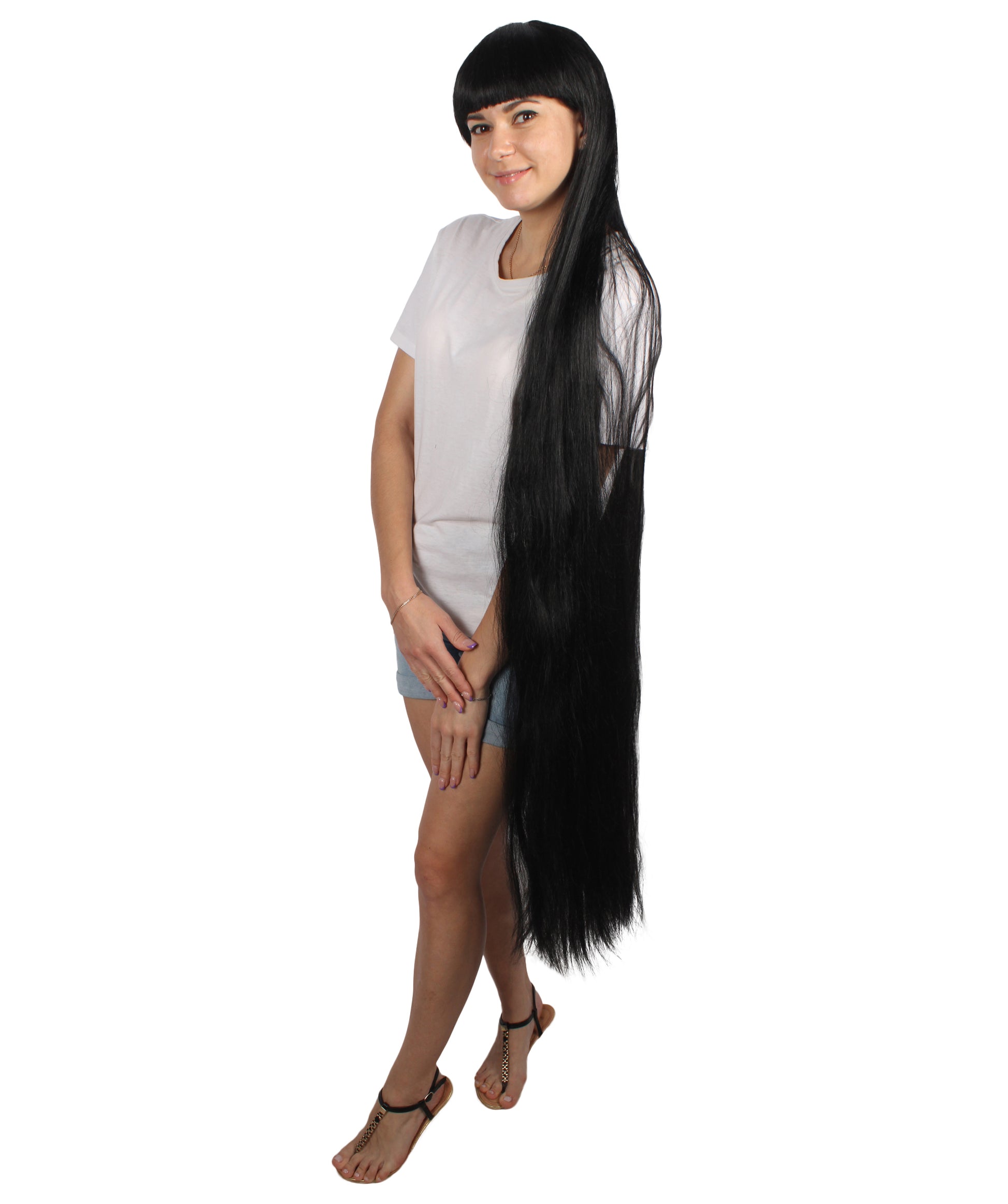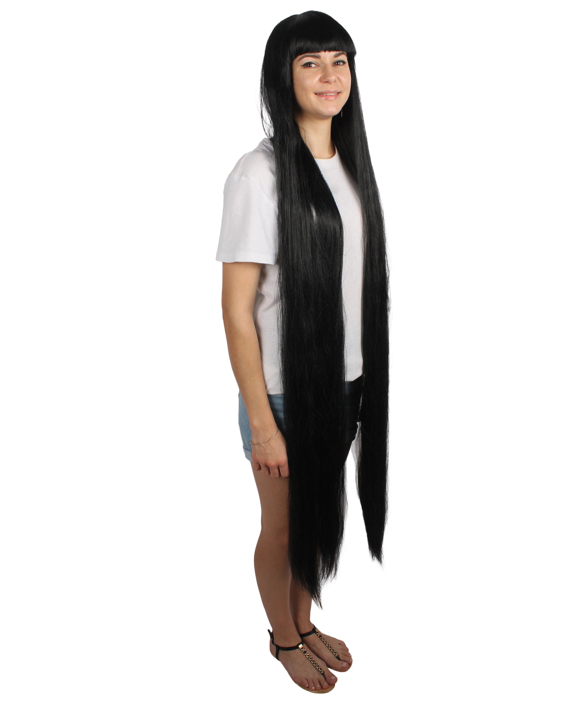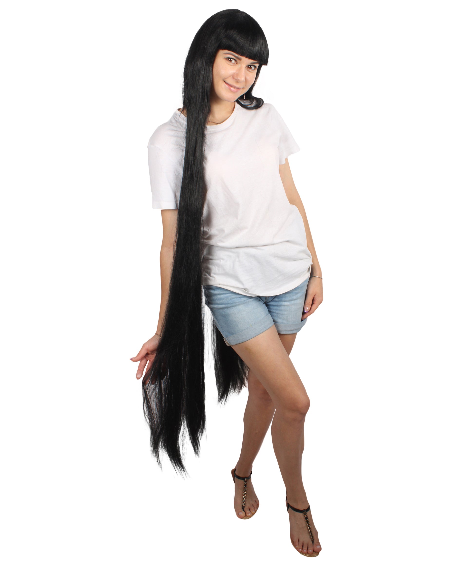 ハロウィンパーティープレミアムレディース H-2734 50 エクストラロングブラックウィッグコレクション プレミアム通気性キャップレスキャップ