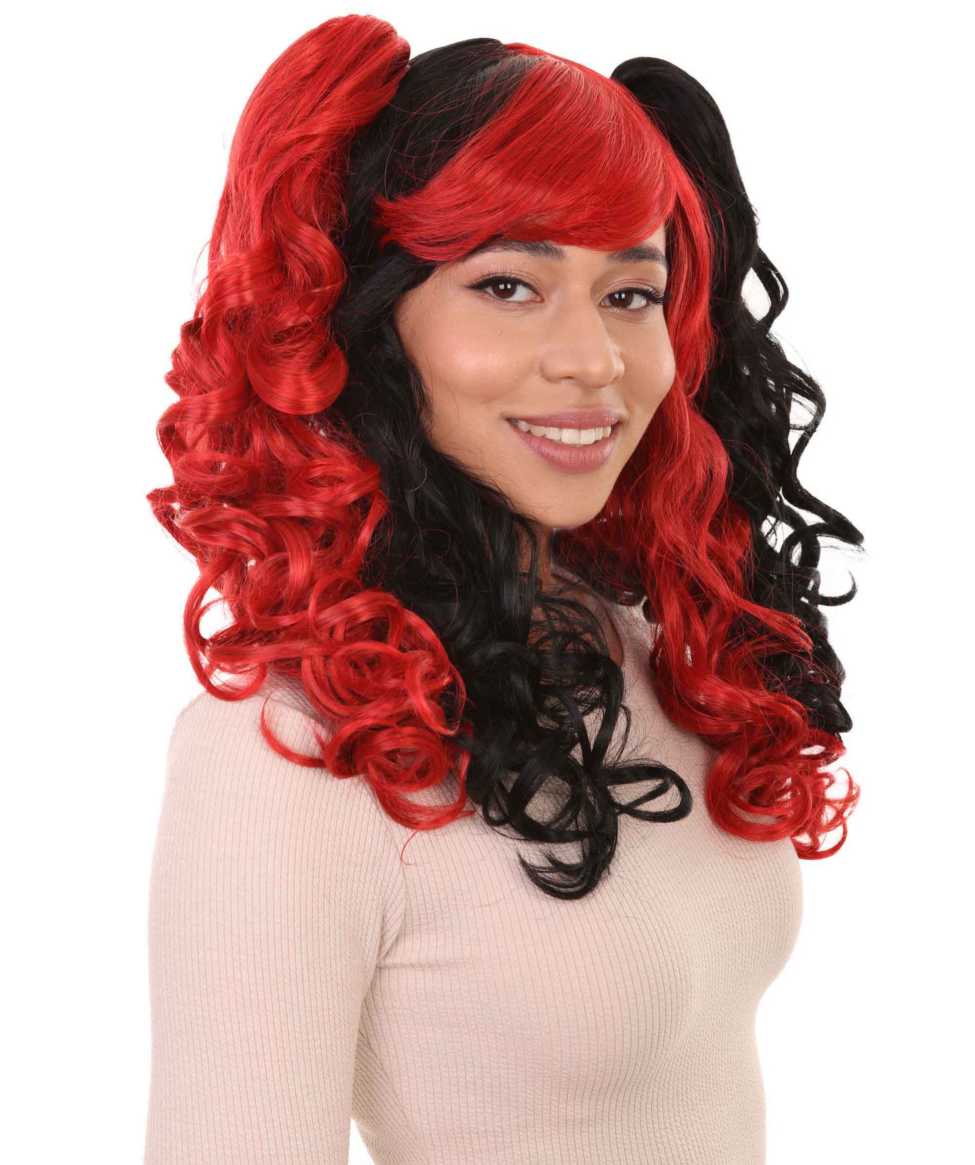 ハロウィンパーティー プレミアム 女性用 H-2832 ブラック アンド レッド ジェスターウィッグ