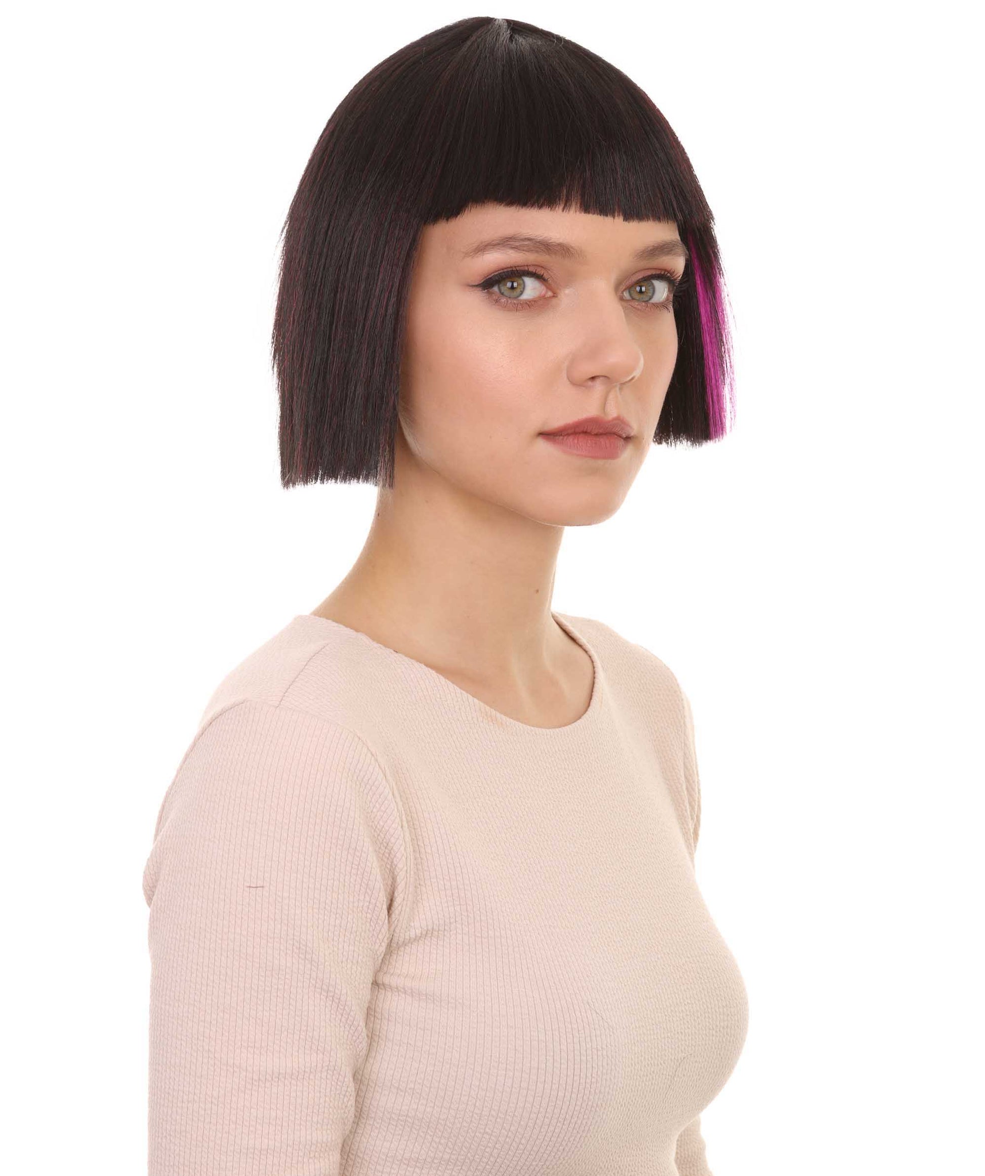 ハロウィンパーティー プレミアム 女性用 H-3020 スーパーモデル ブラック&パープル ボブ ウィッグ