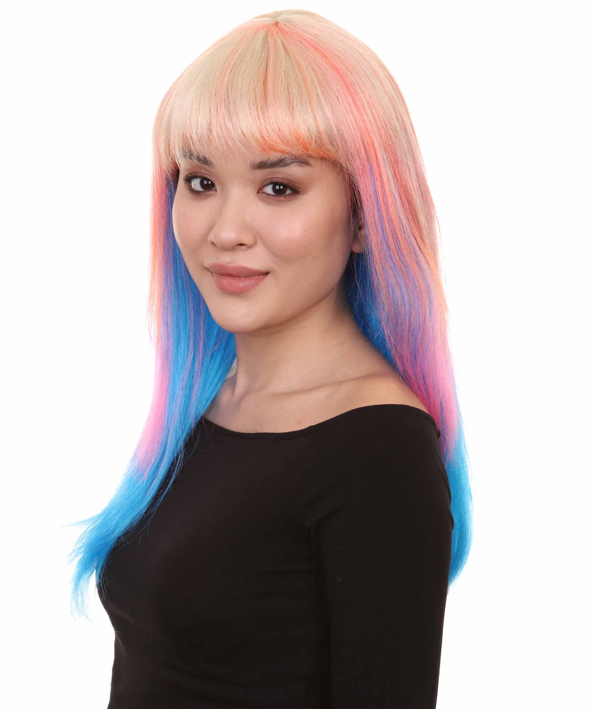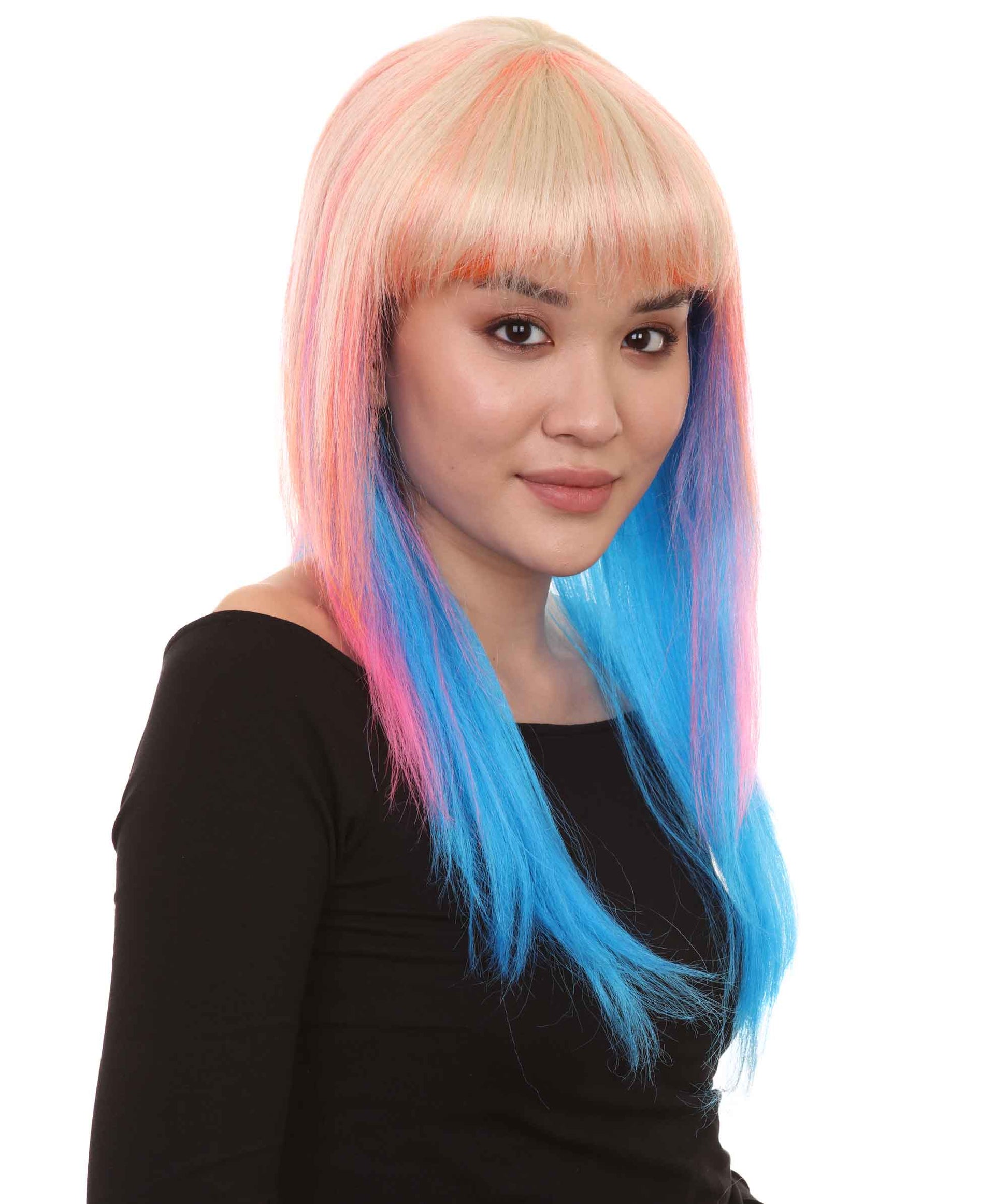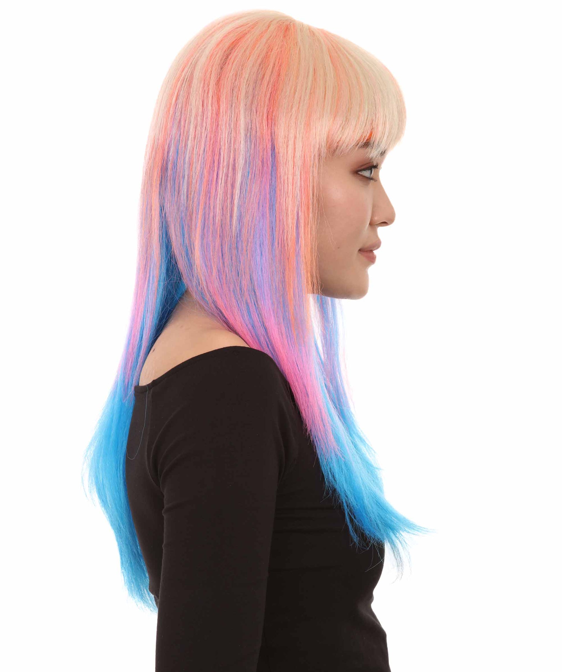 ハロウィンパーティープレミアムレディース H-3087 ロングボブマルチカラーコスプレウィッグ レディラグジュアリースタイルパーティーウィッグコレクション