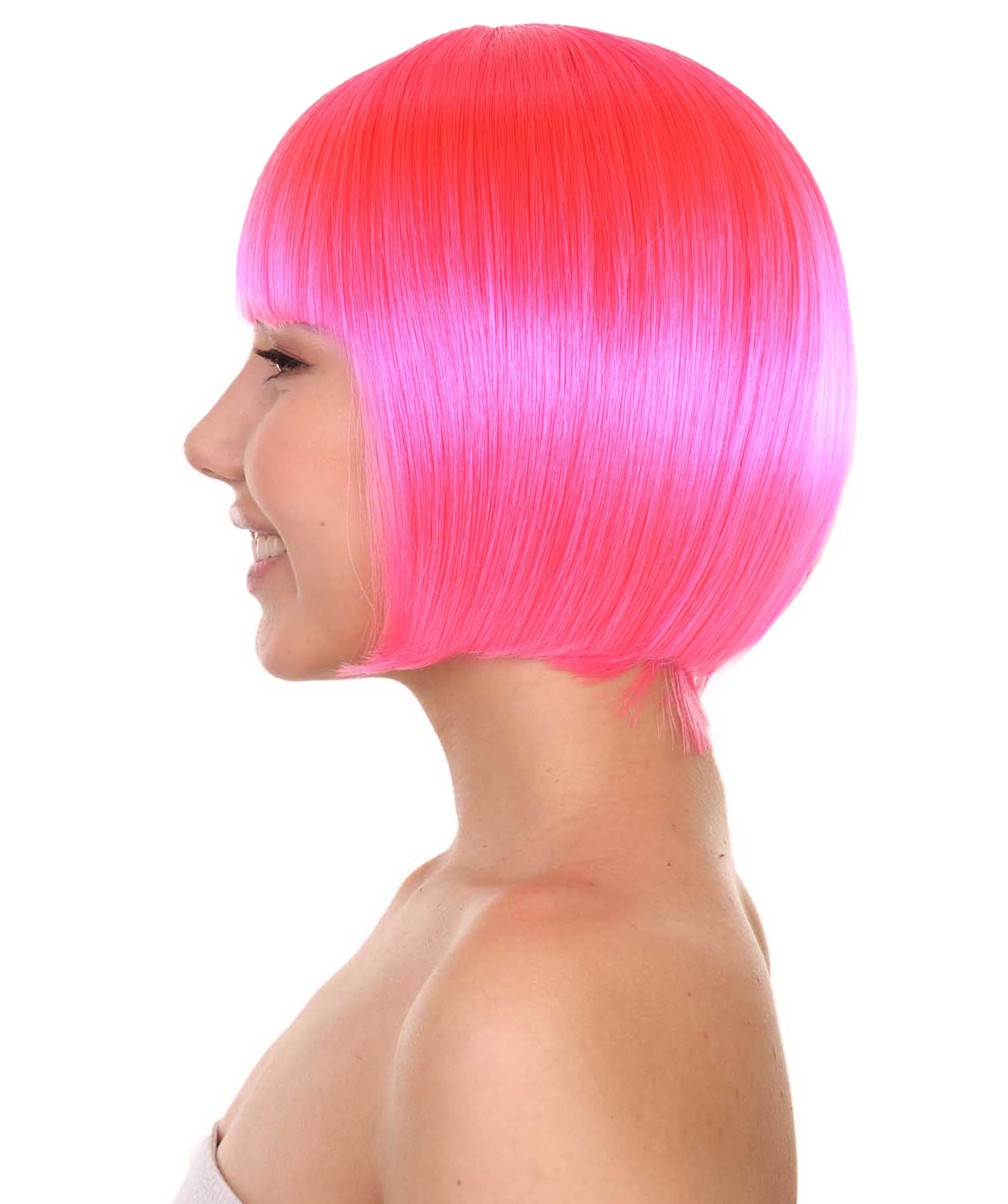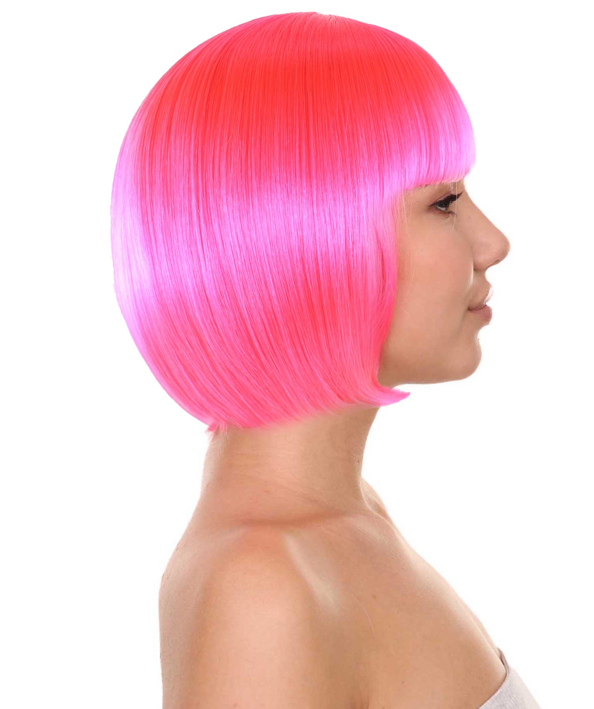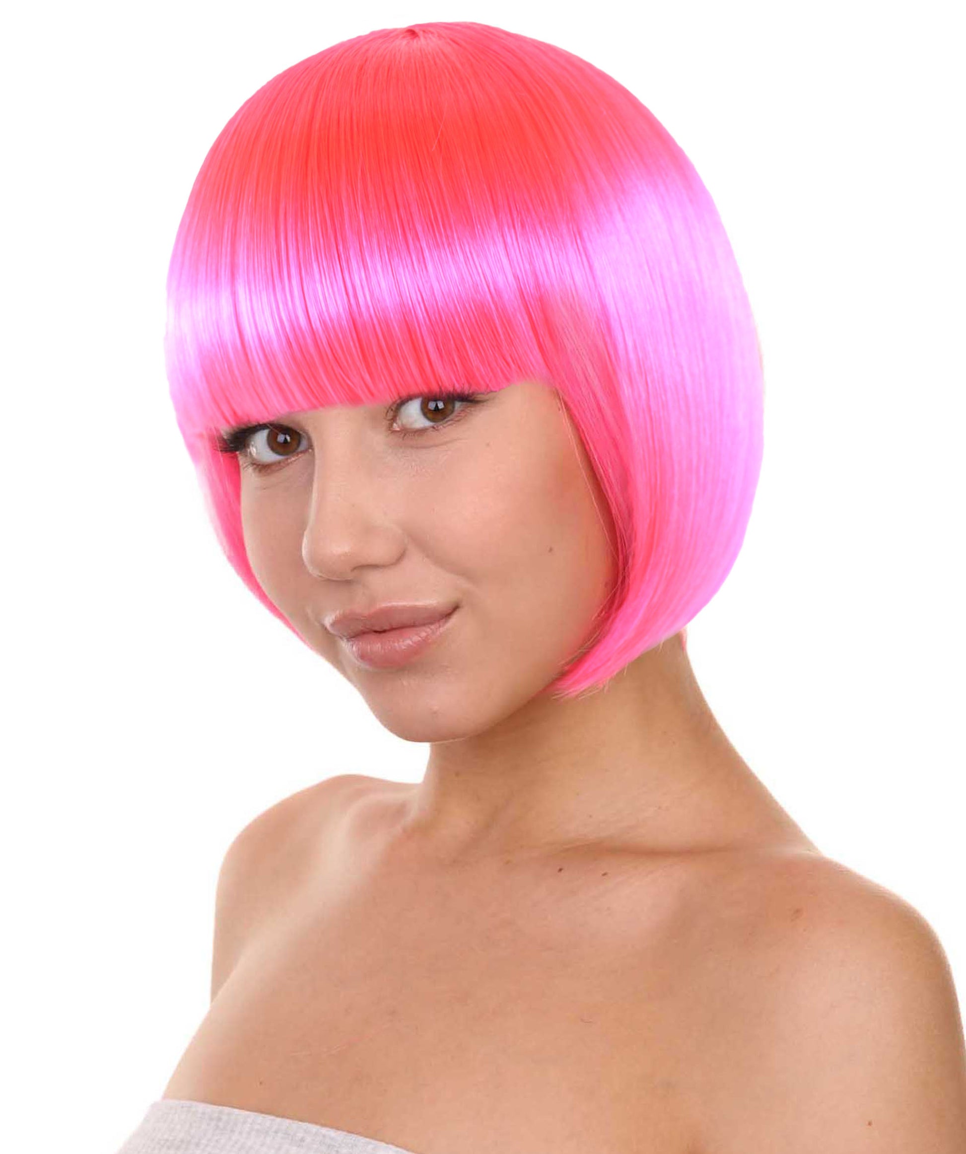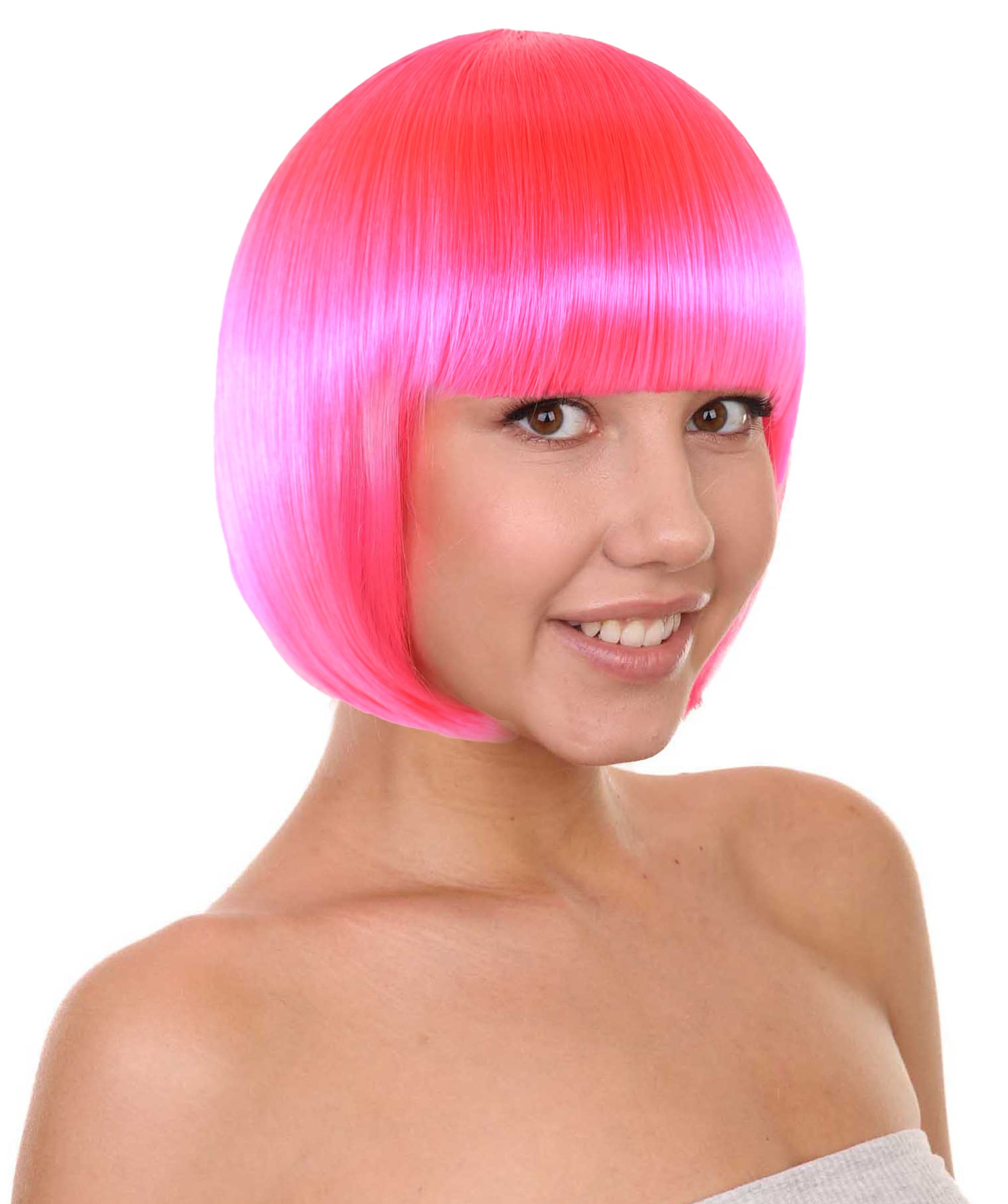 ハロウィンパーティープレミアムレディース H-3128 ネオンピンクボブウィッグショート ファンシーレディーパーティーウィッグコレクション 通気性キャップレスキャップ