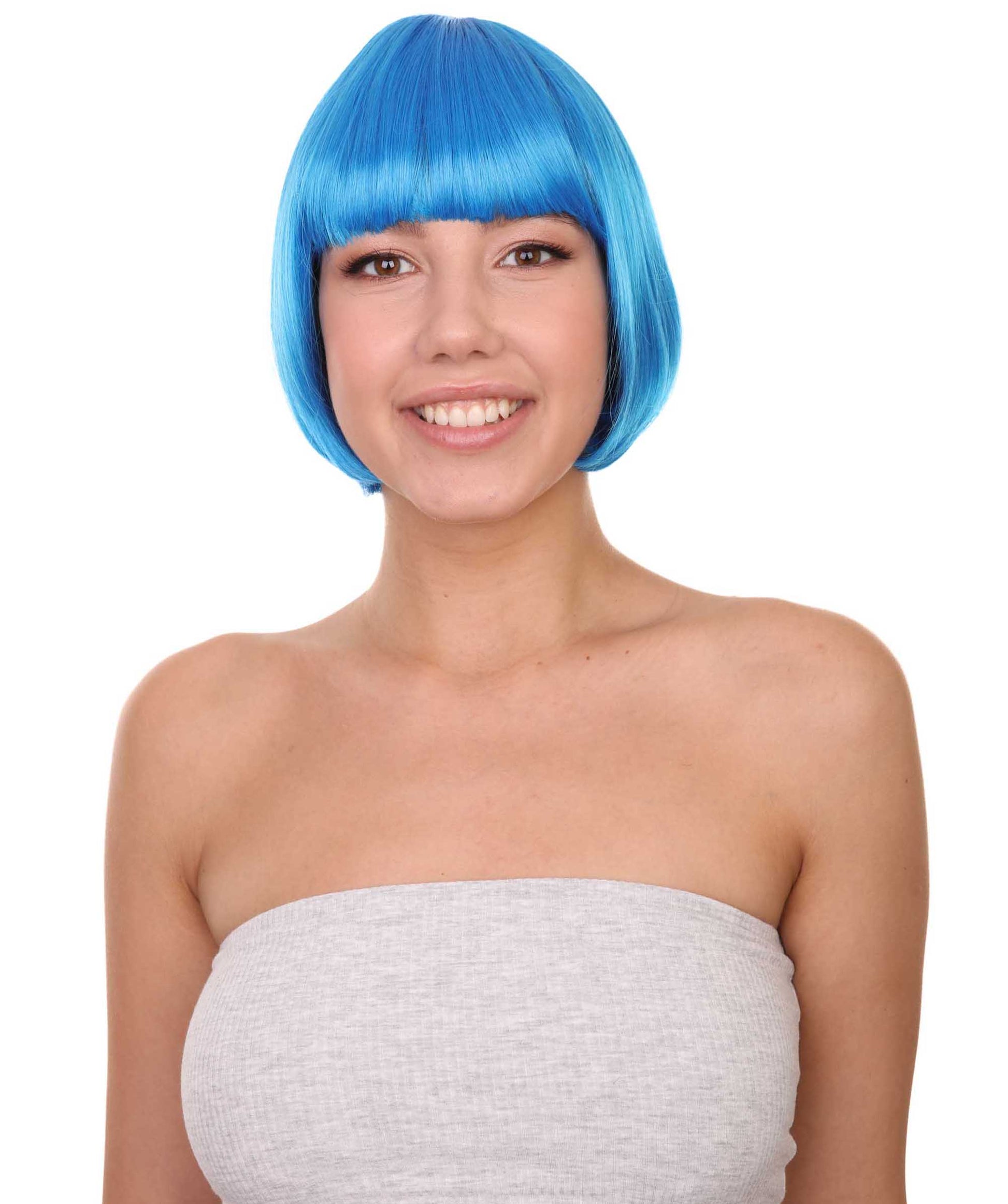 ハロウィンパーティープレミアムレディース H-3133 ブルーボブウィッグ ショート ファンシーレディーパーティーウィッグコレクション 通気性キャップレスキャップ