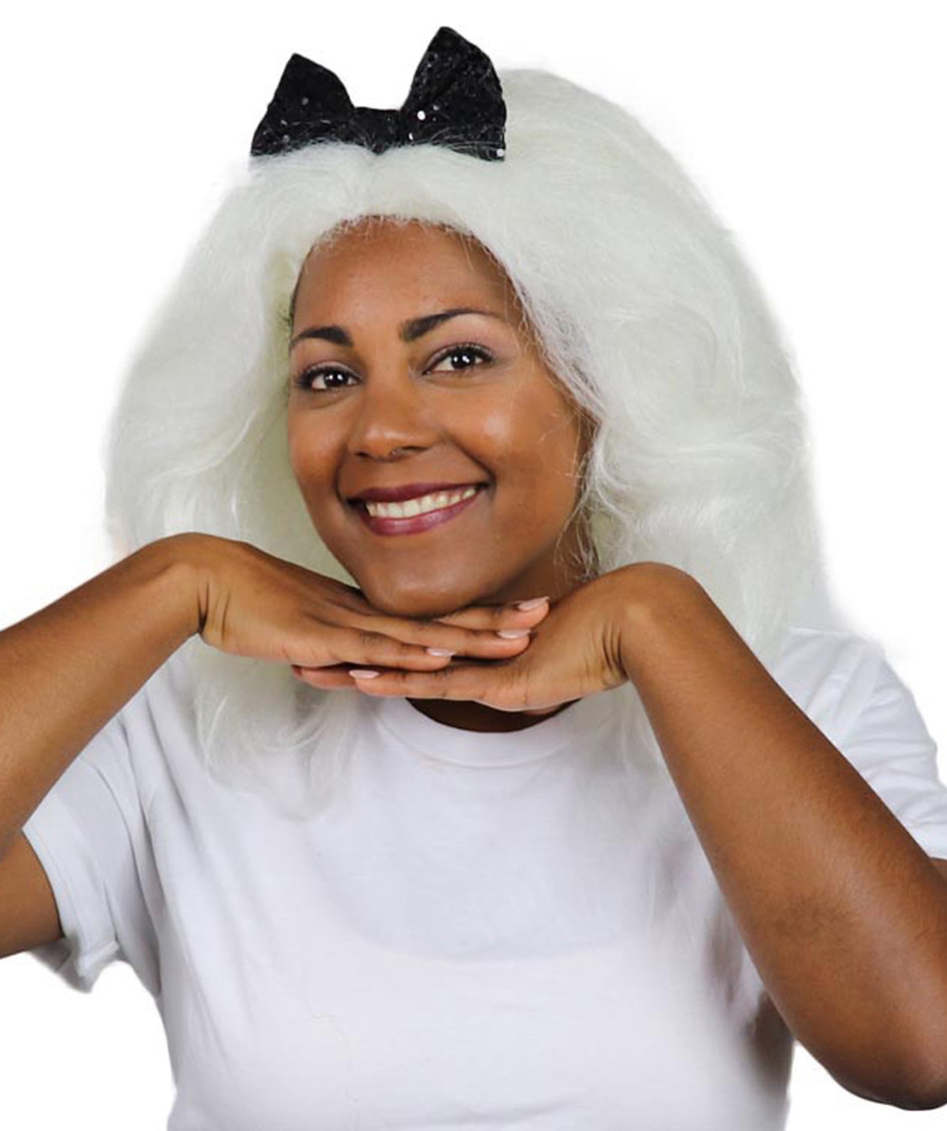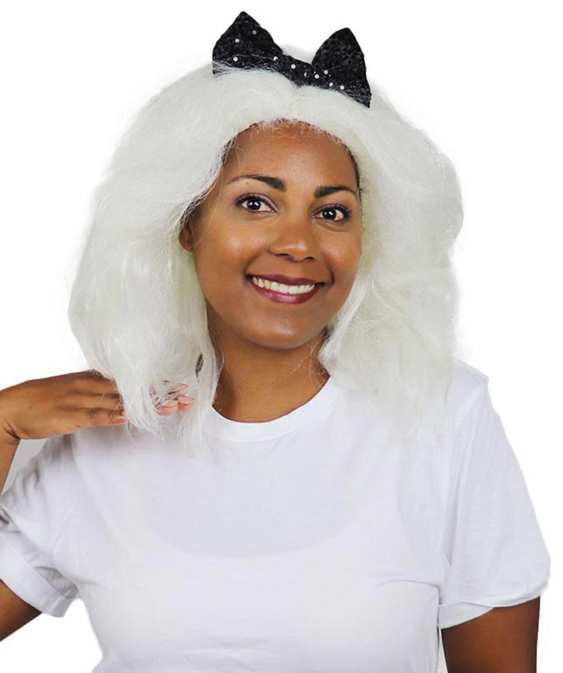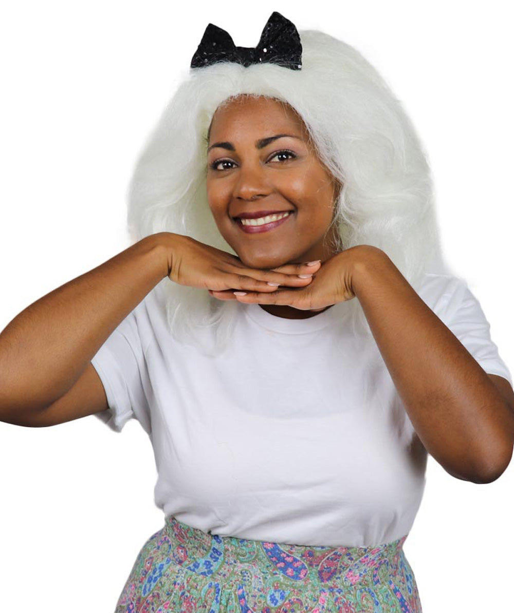 ハロウィーンパーティープレミアムレディースH-3645 メガホワイトアフロクラウンウィッグ リボン付き