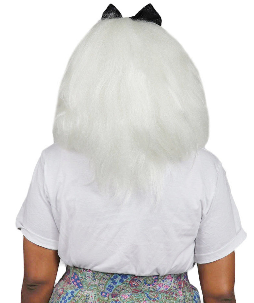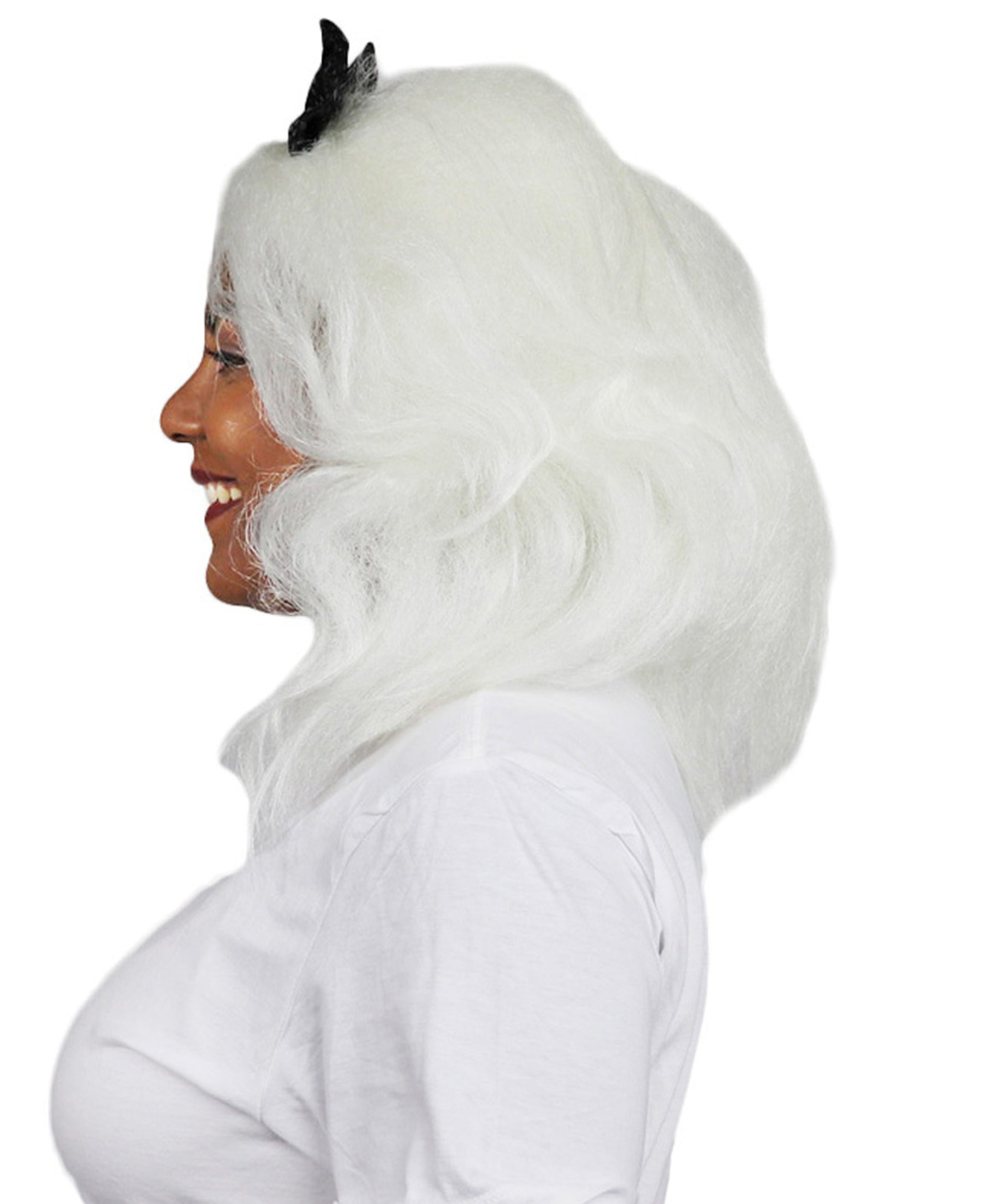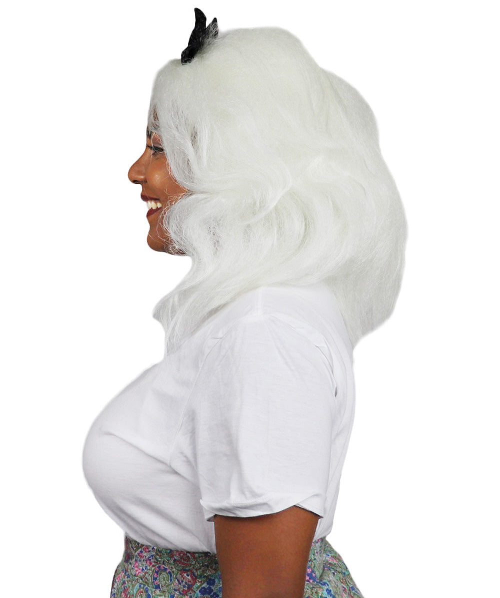 ハロウィーンパーティープレミアムレディースH-3645 メガホワイトアフロクラウンウィッグ リボン付き
