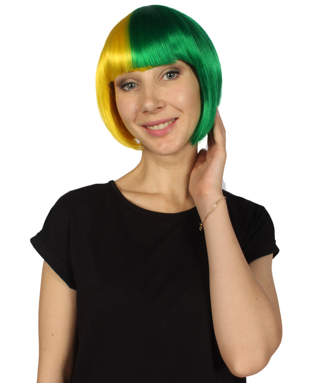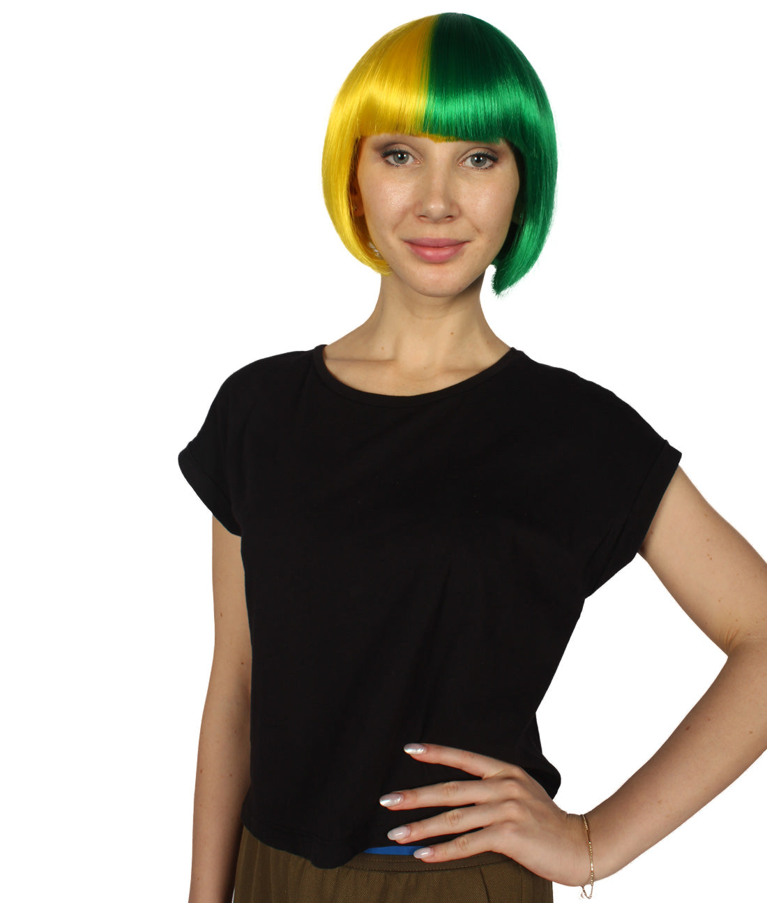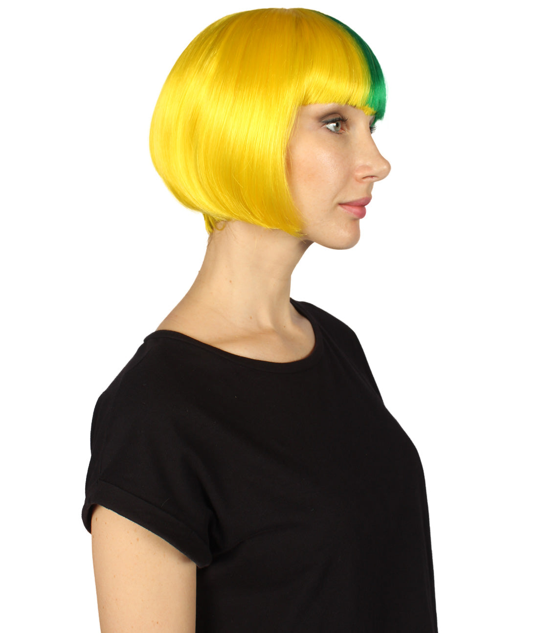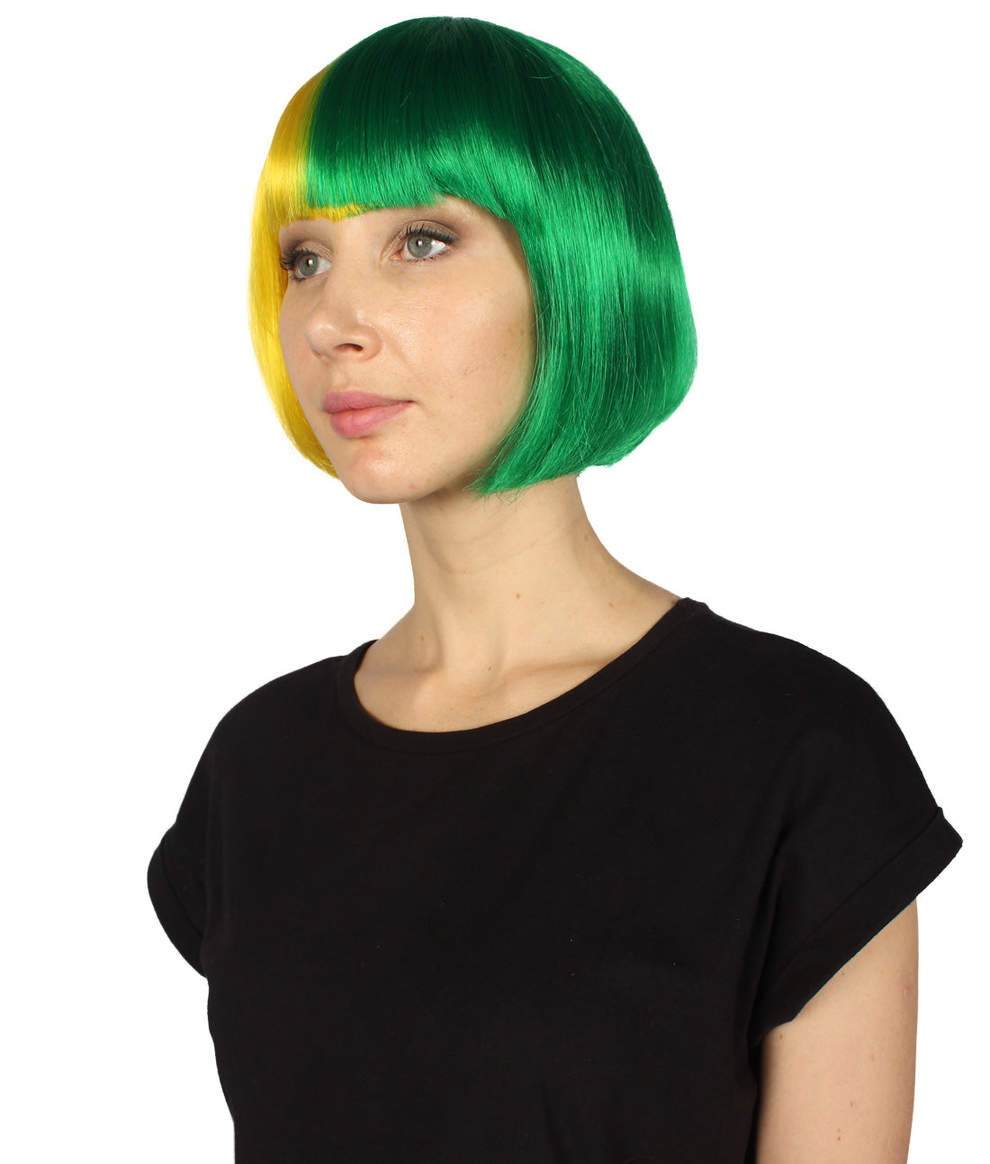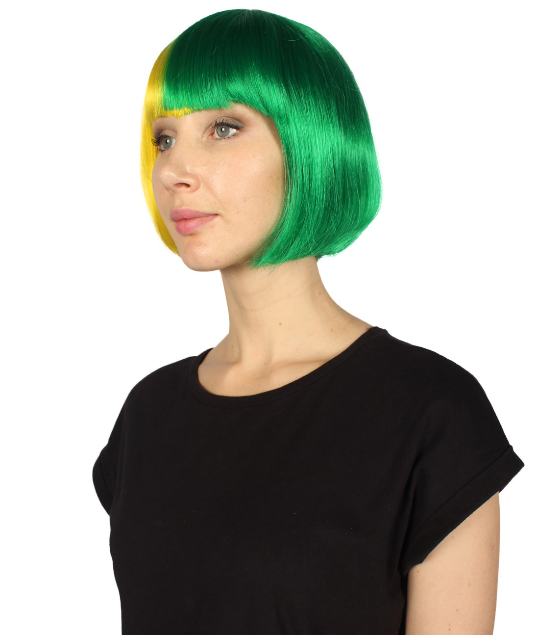 ハロウィンパーティープレミアムレディース H-4063 二色調イエロー&グリーンショートボブウィッグコレクション