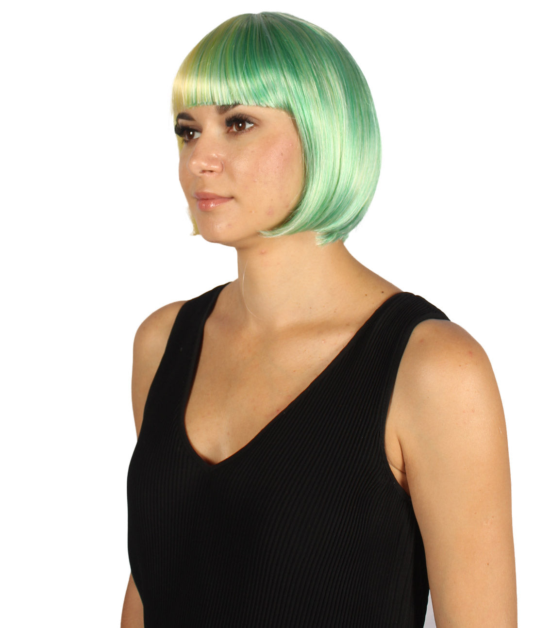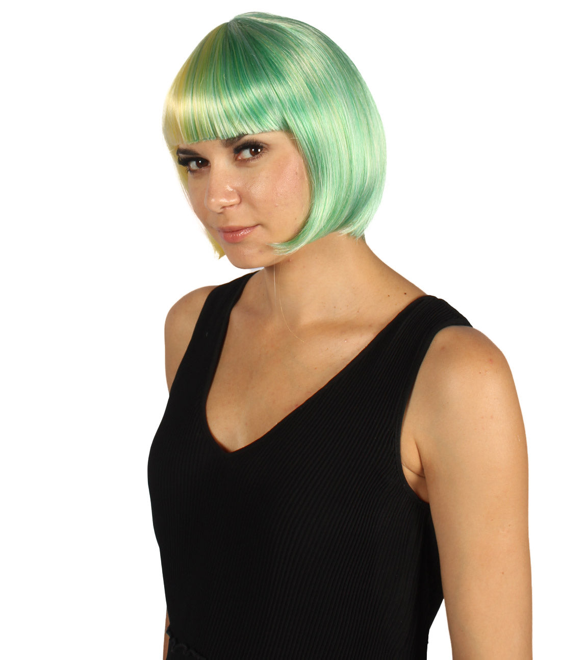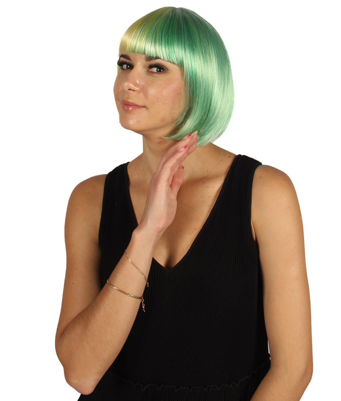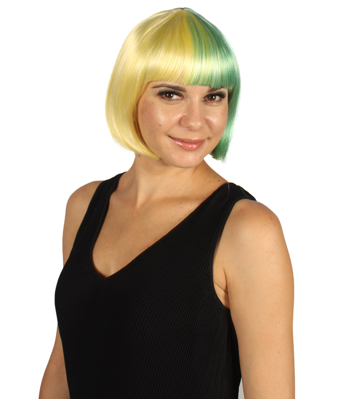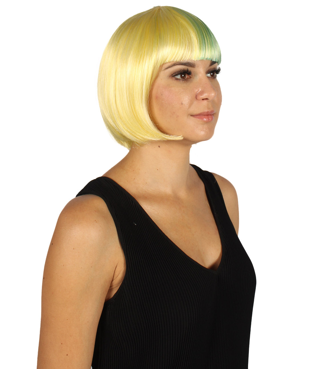 ハロウィンパーティープレミアムレディース H-4065 二色調ライトイエロー&ライトグリーンショートボブウィッグコレクション