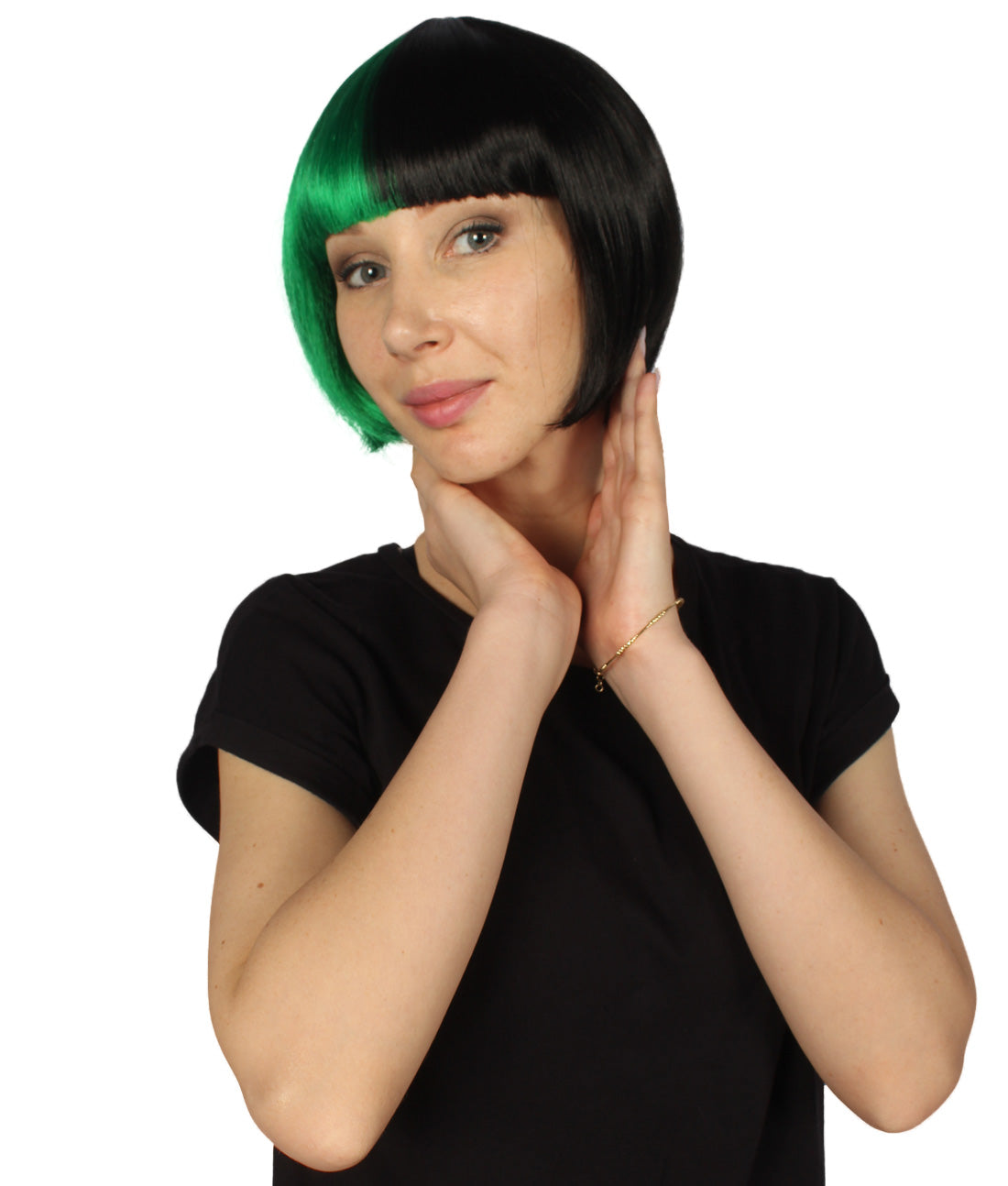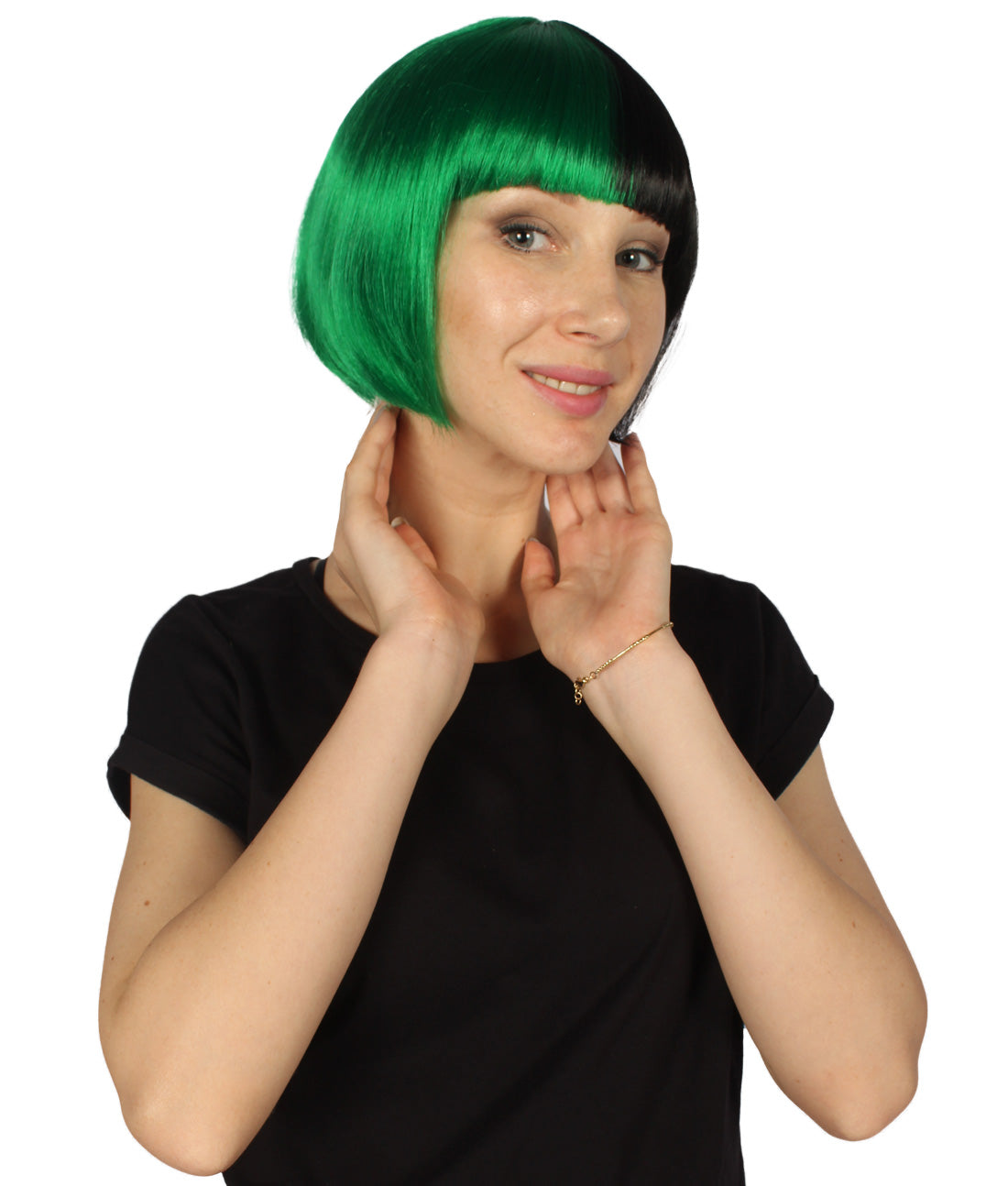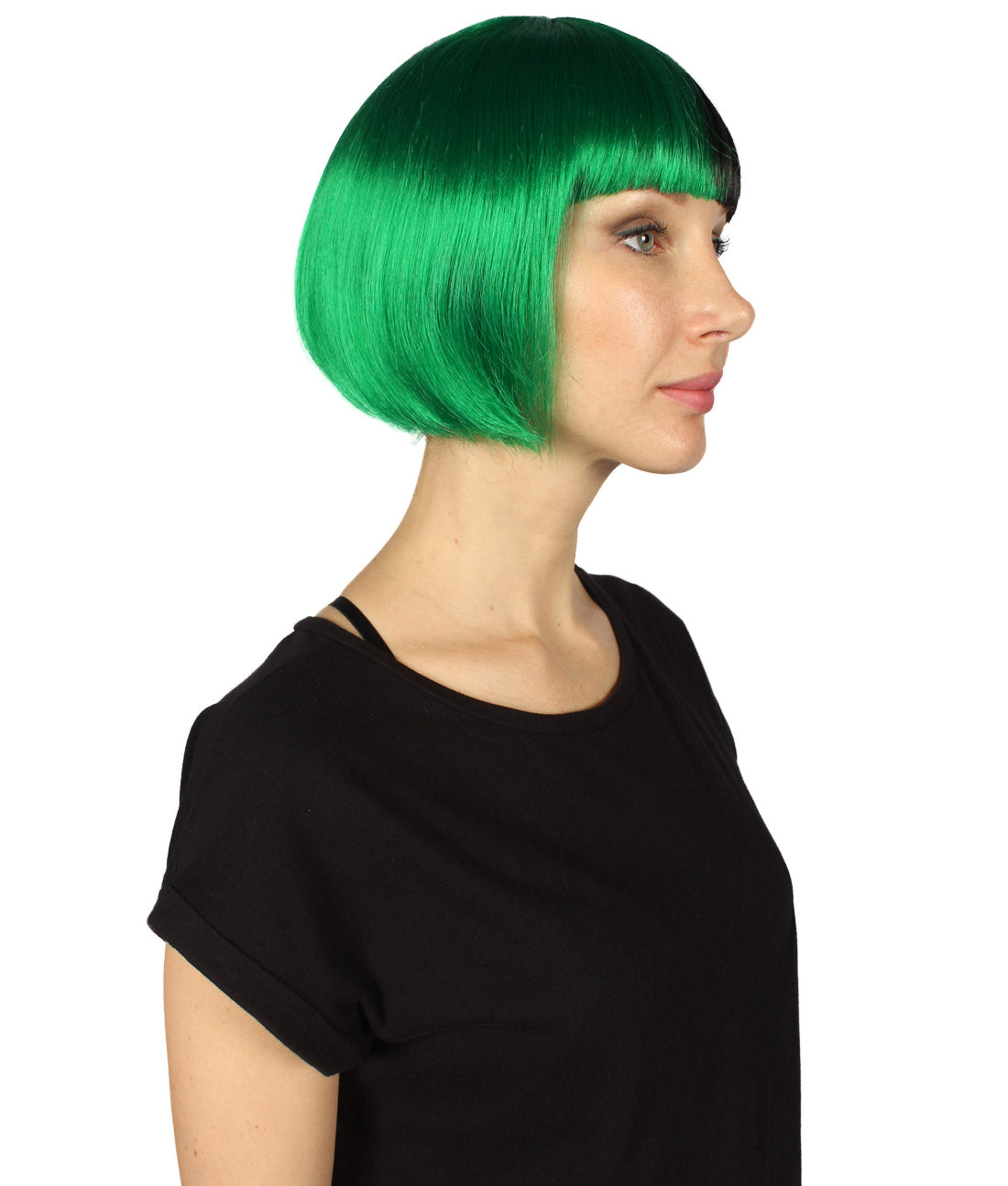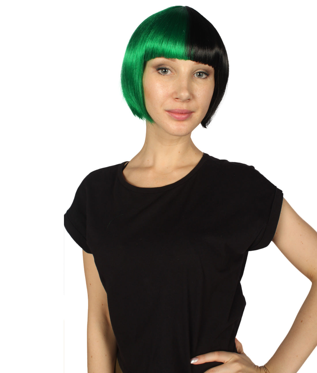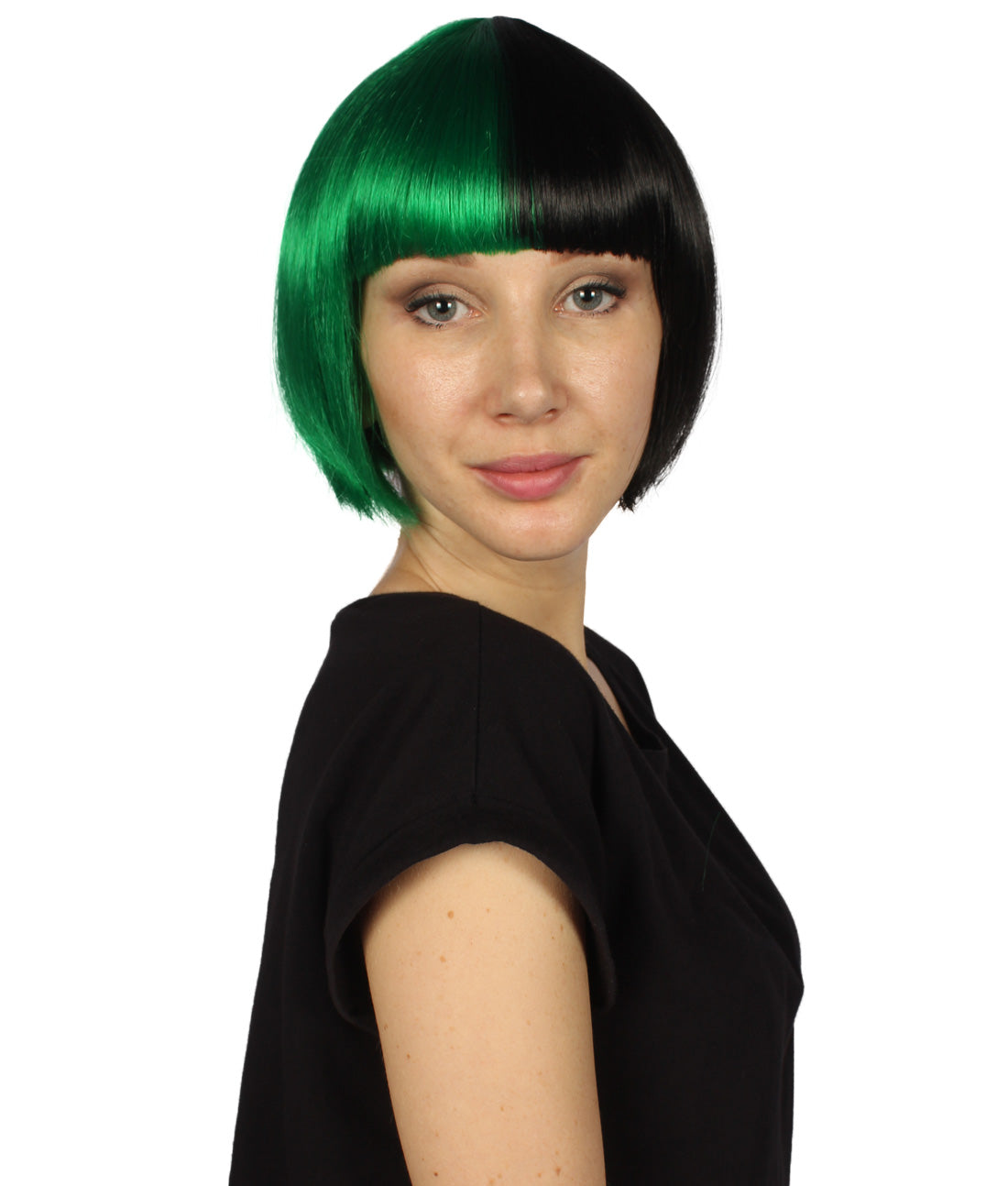 ハロウィンパーティープレミアムレディース H-4072 二色調グリーン&ブラックショートボブウィッグ