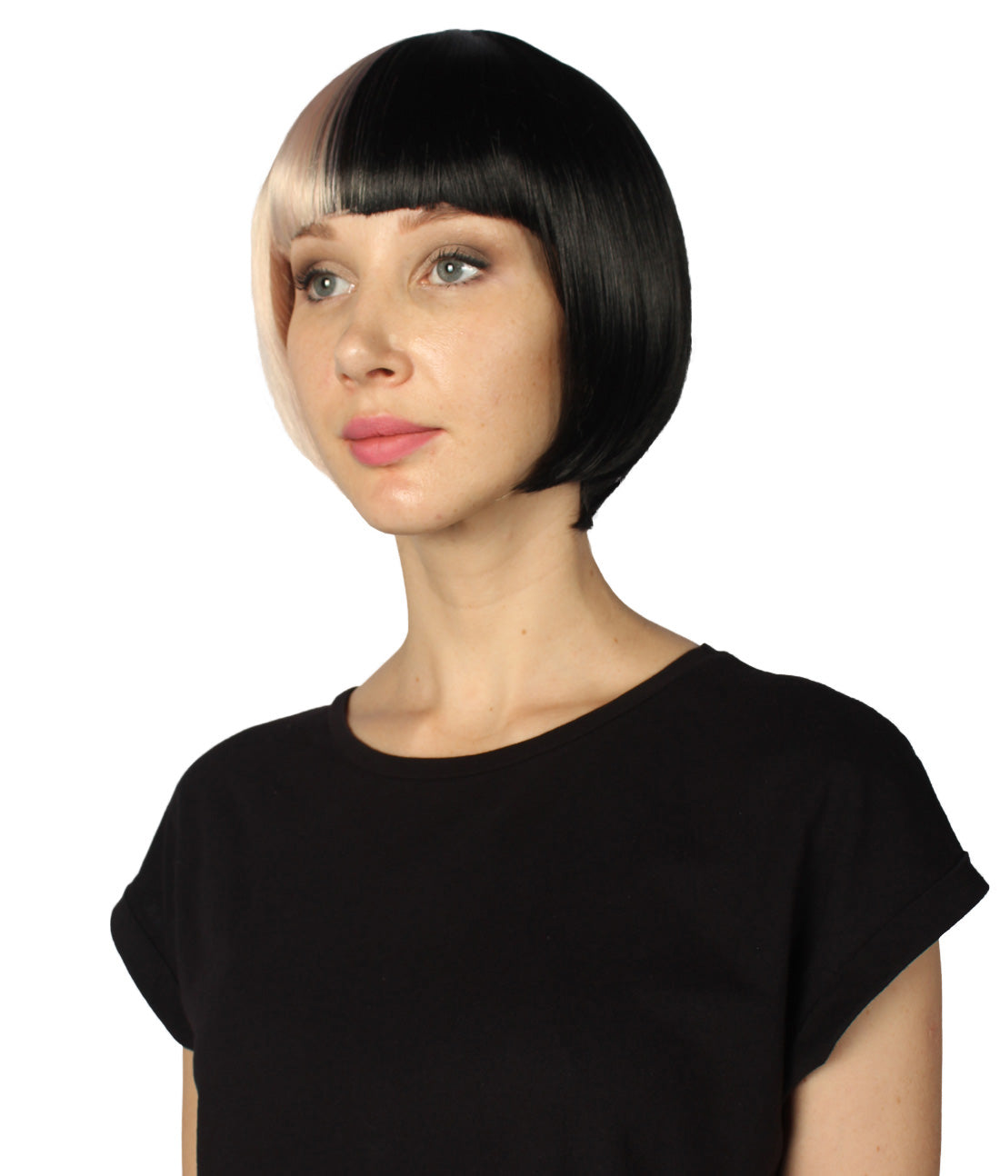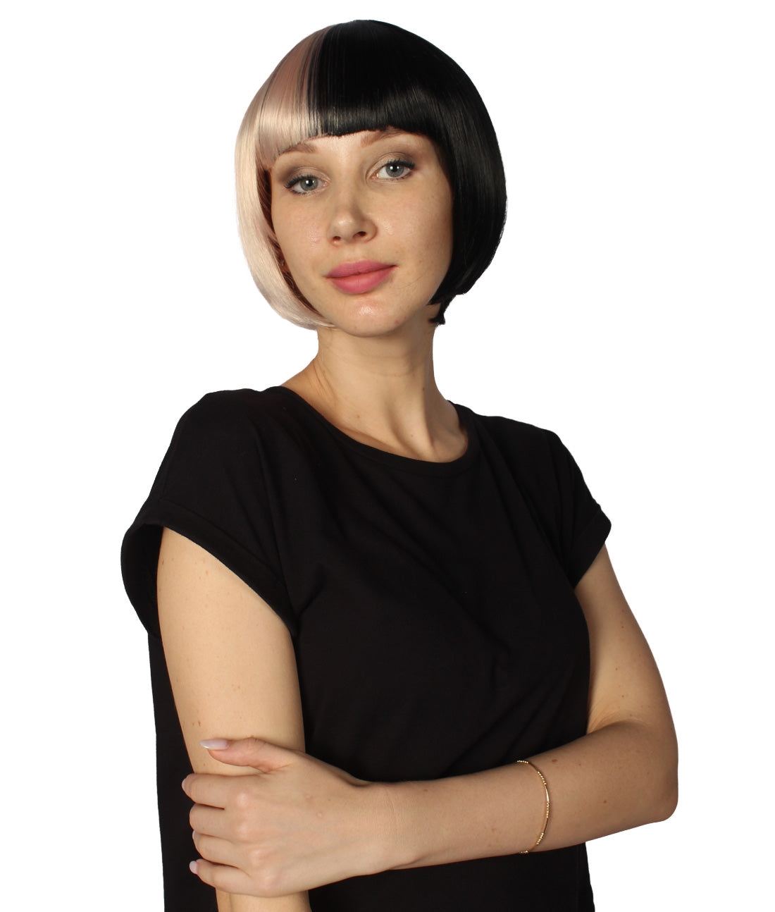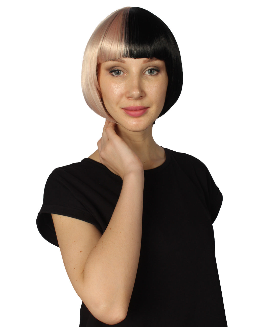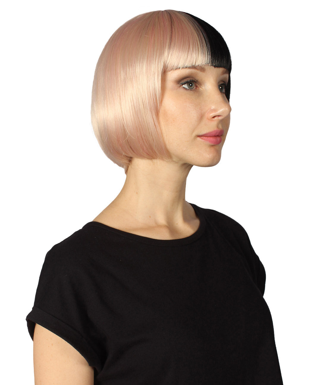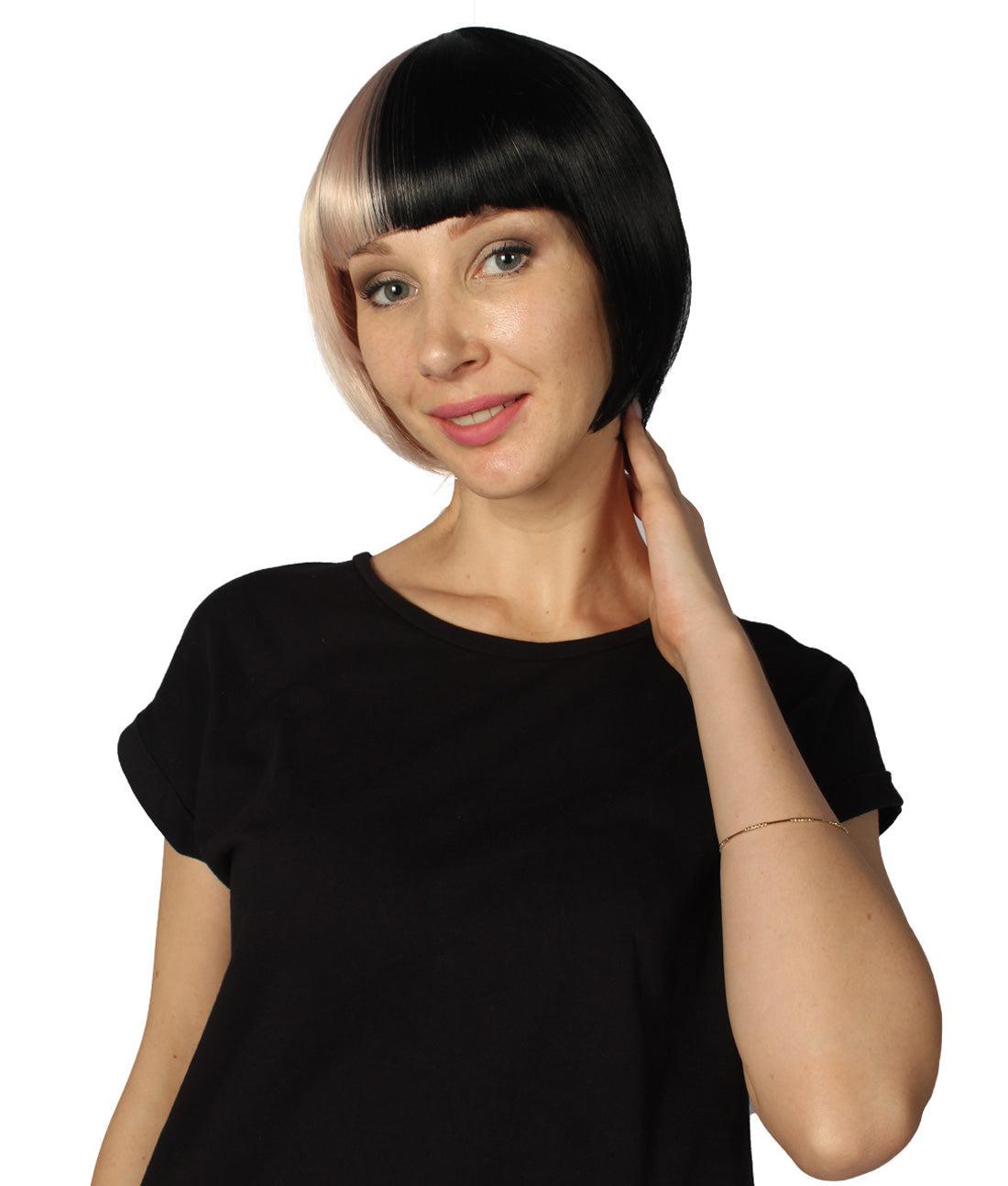 ハロウィンパーティープレミアムレディース H-4074 二色調ブロンド&ブラックショートボブウィッグ