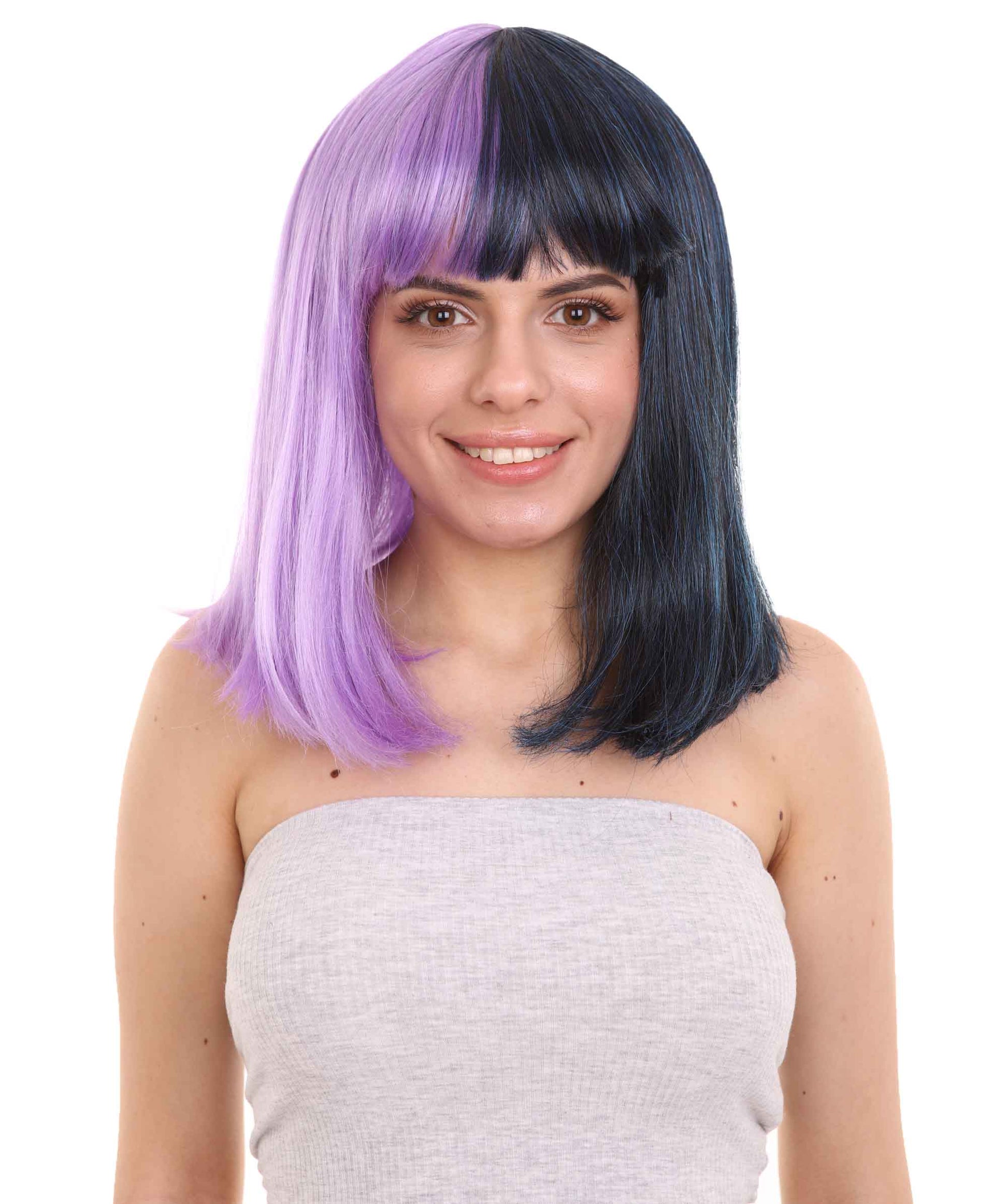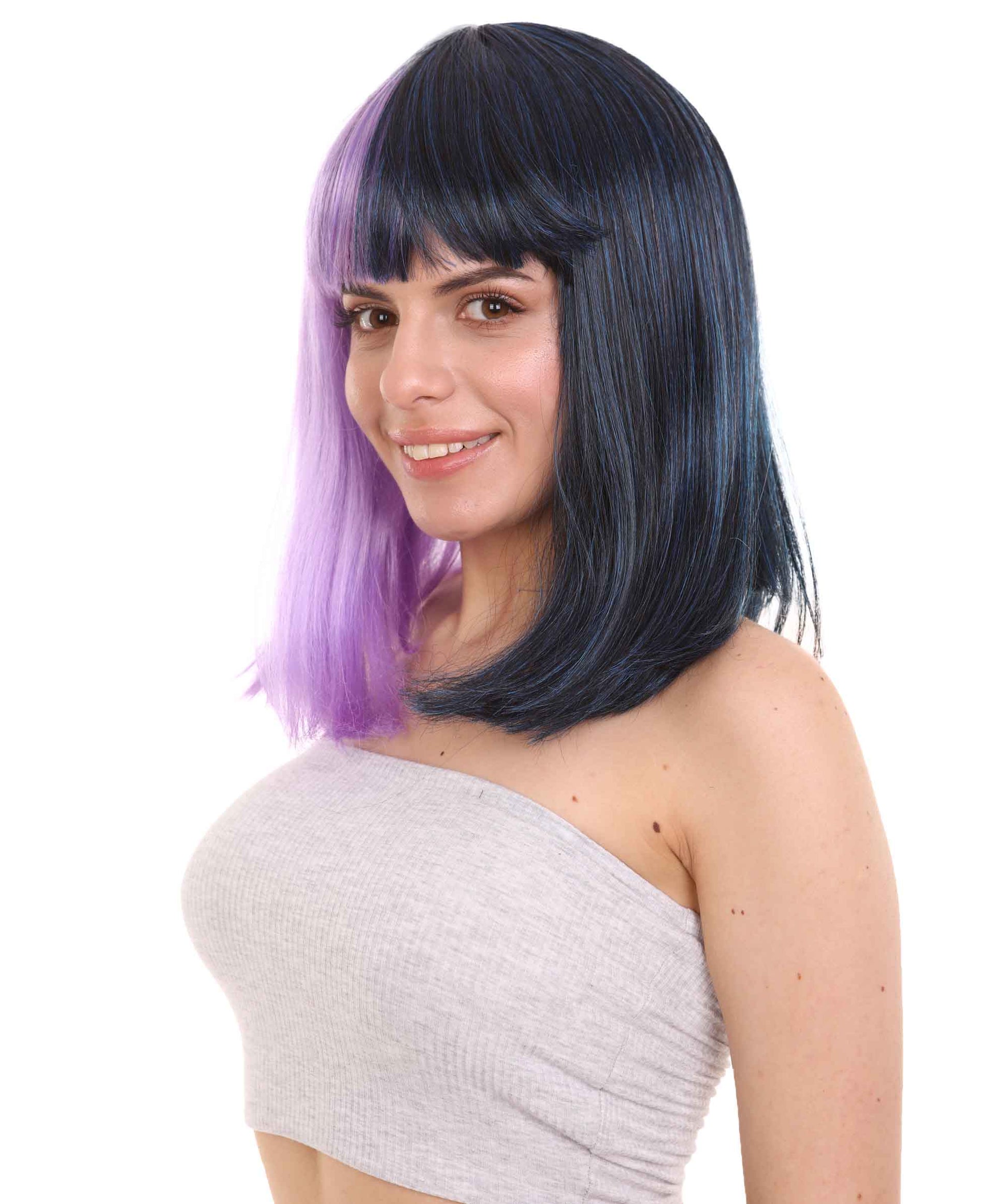 ハロウィンパーティープレミアムレディース H-4076 二色調パープル&ダークネイビーミディアムボブウィッグ