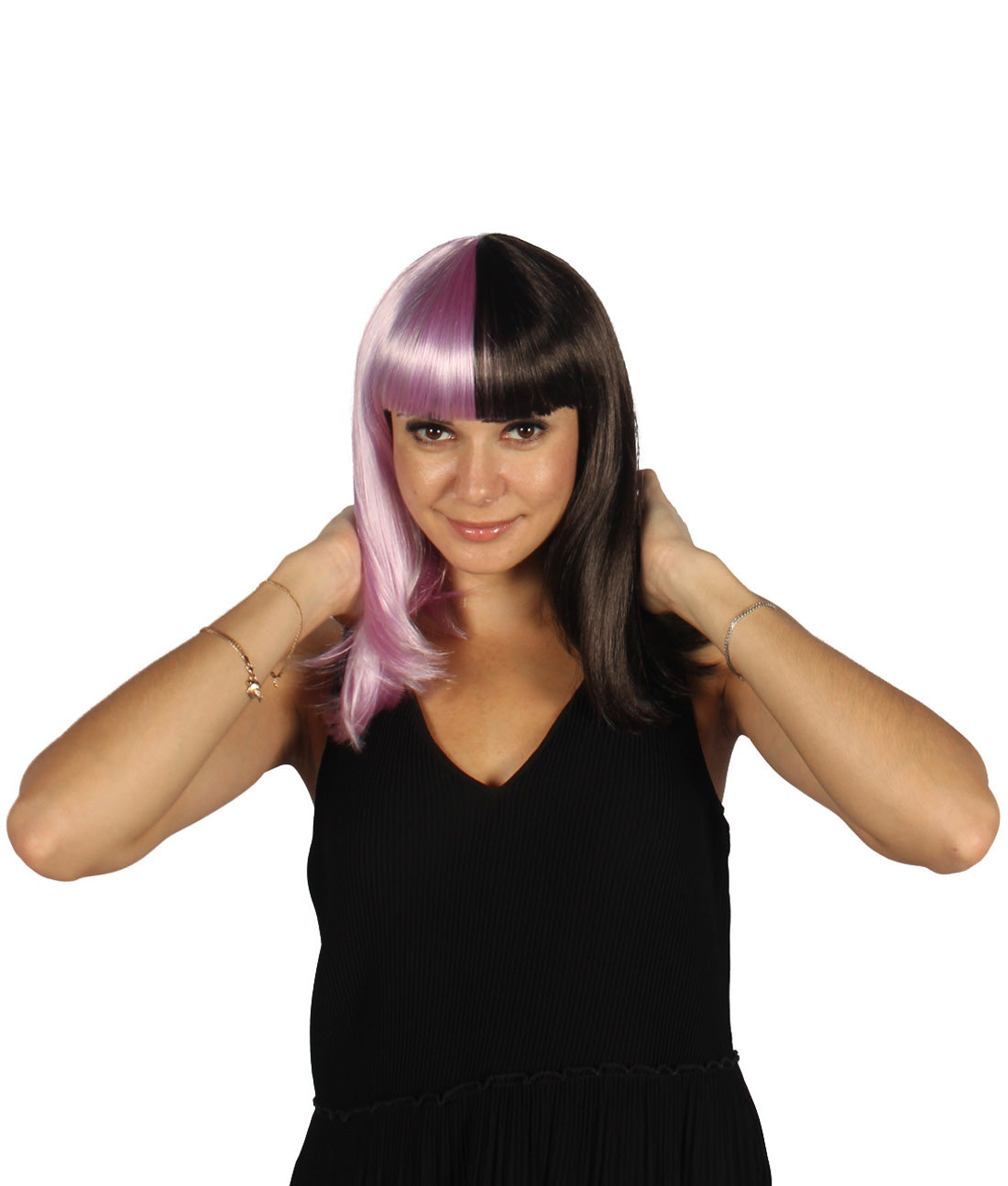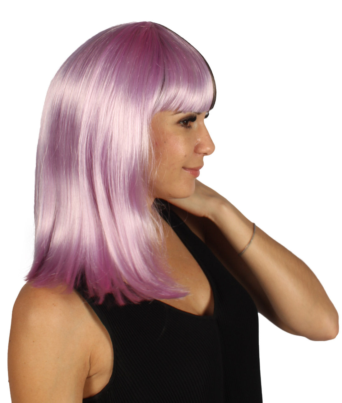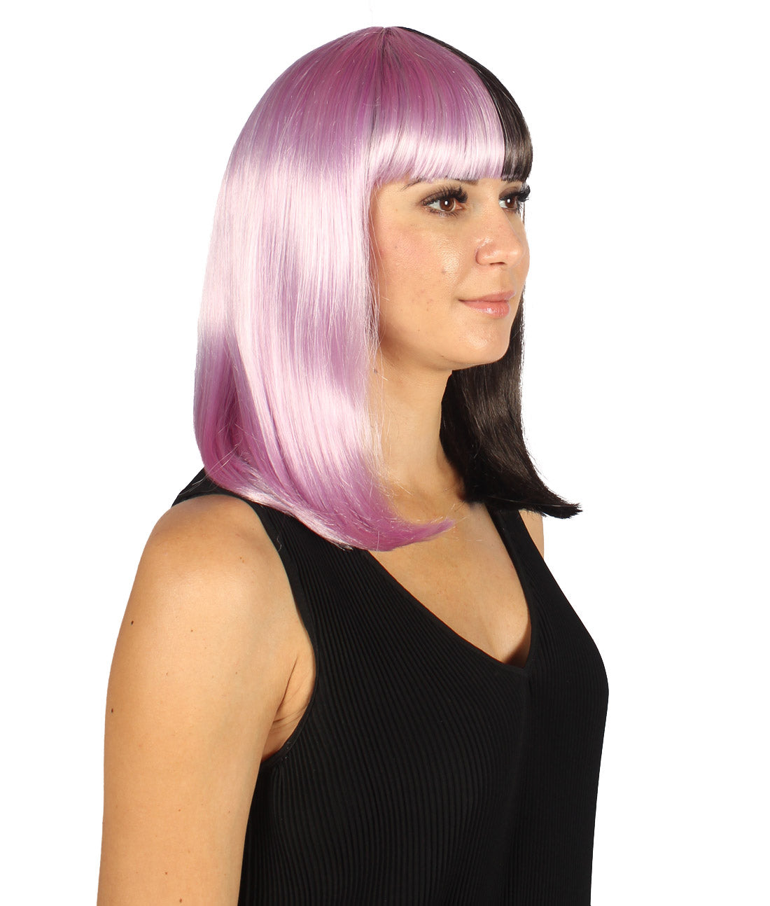 ハロウィンパーティープレミアムレディース H-4078 二色調ライトパープル&ブラックミディアムボブウィッグ