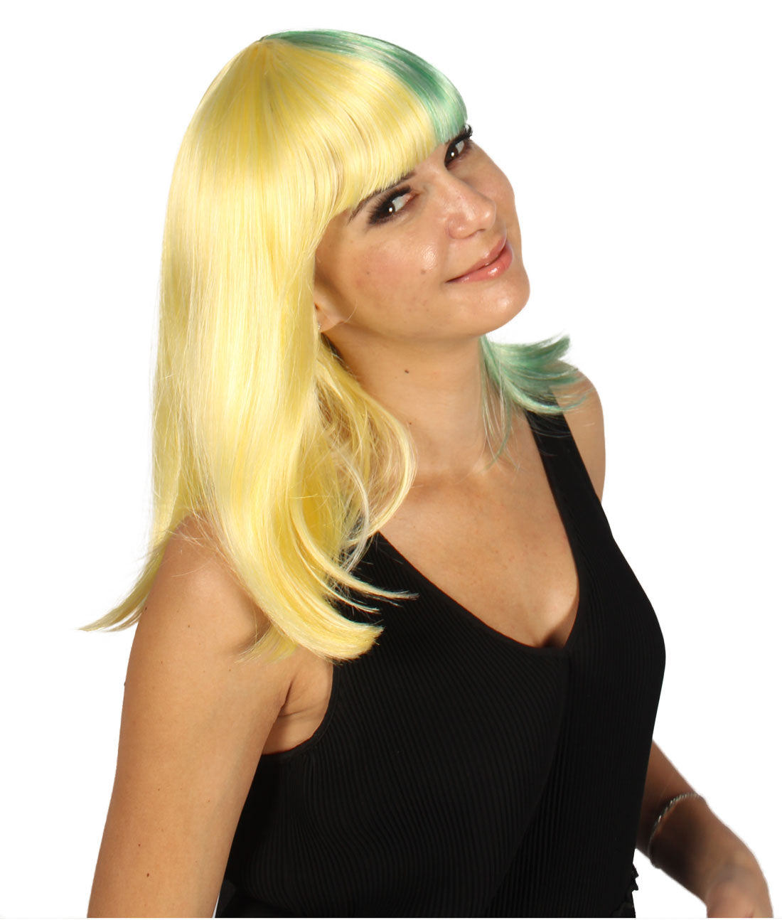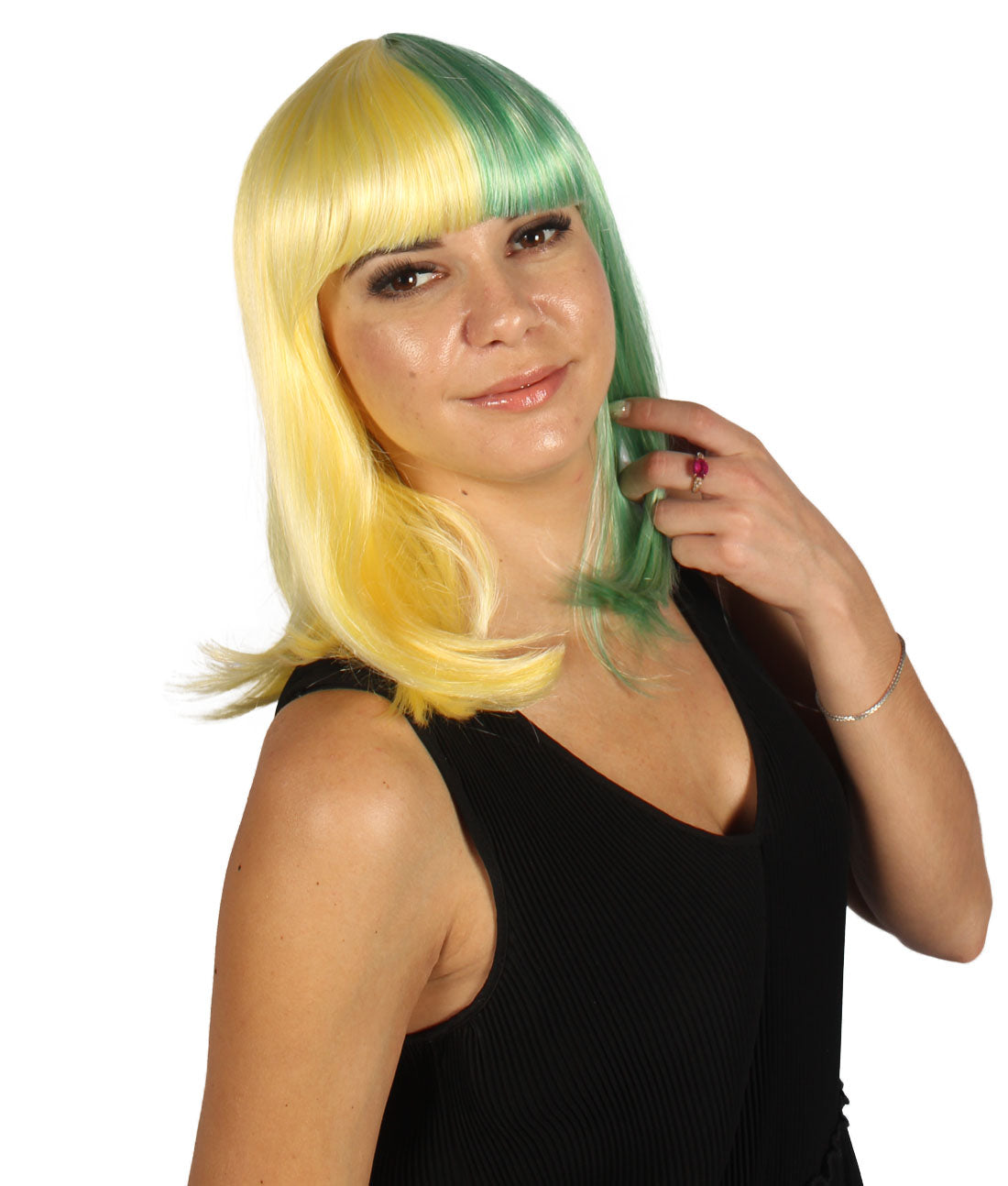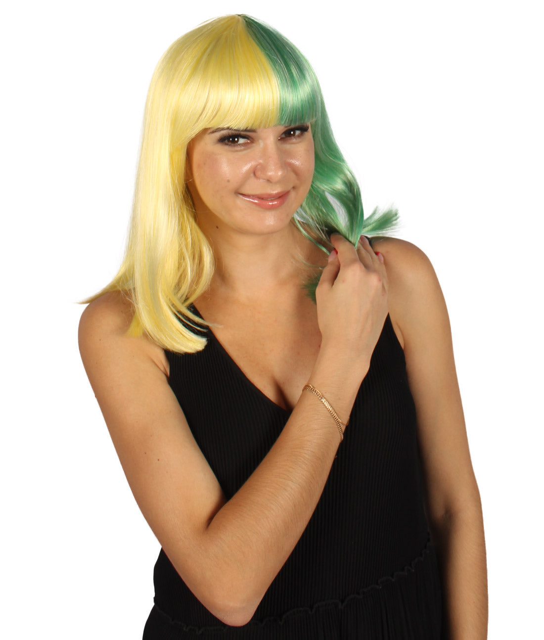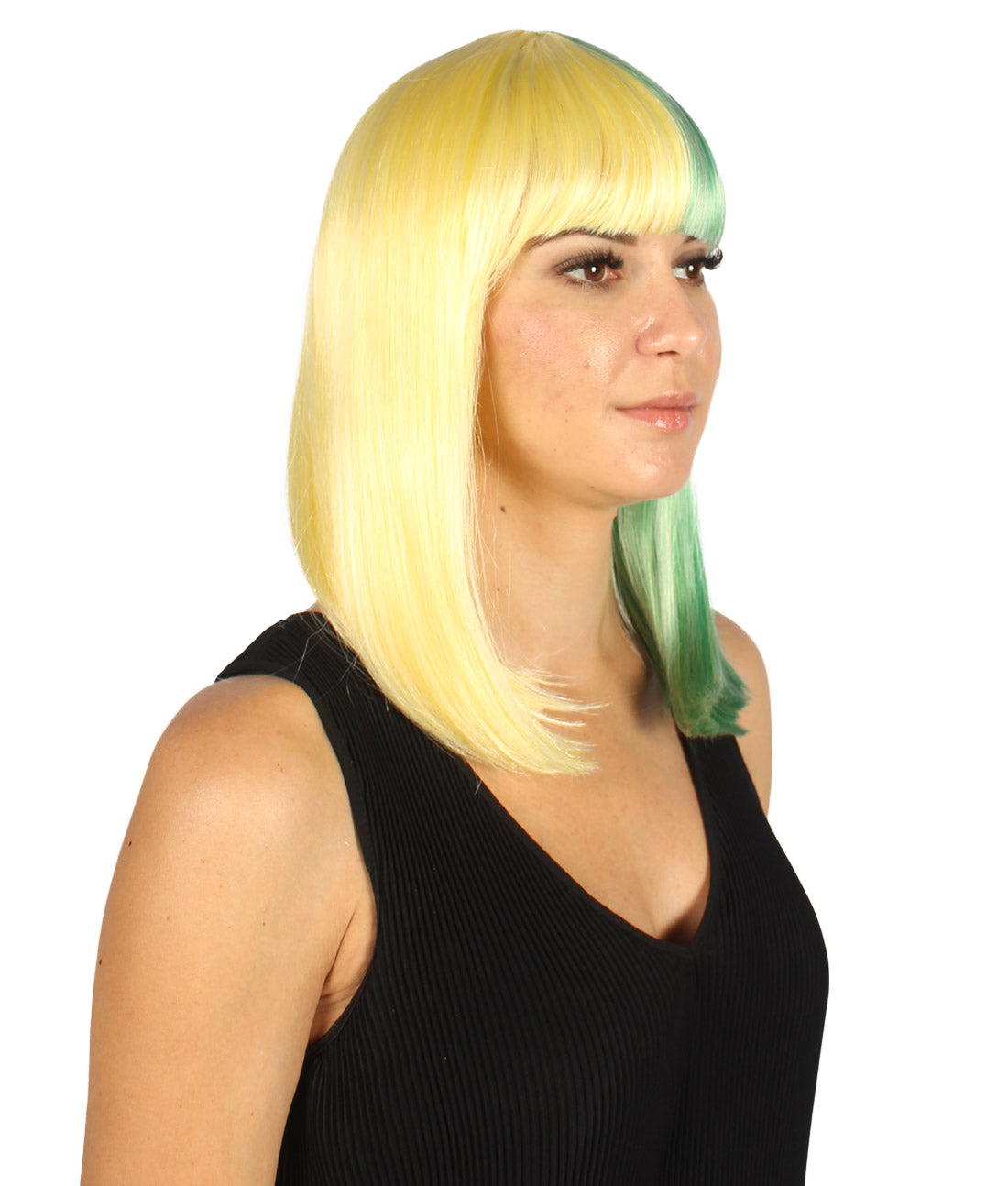 ハロウィンパーティープレミアムレディース H-4085 二色調ライトイエロー&ライトグリーンミディアムボブウィッグ