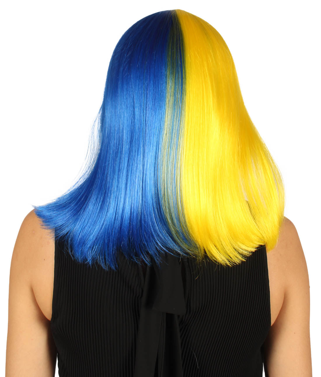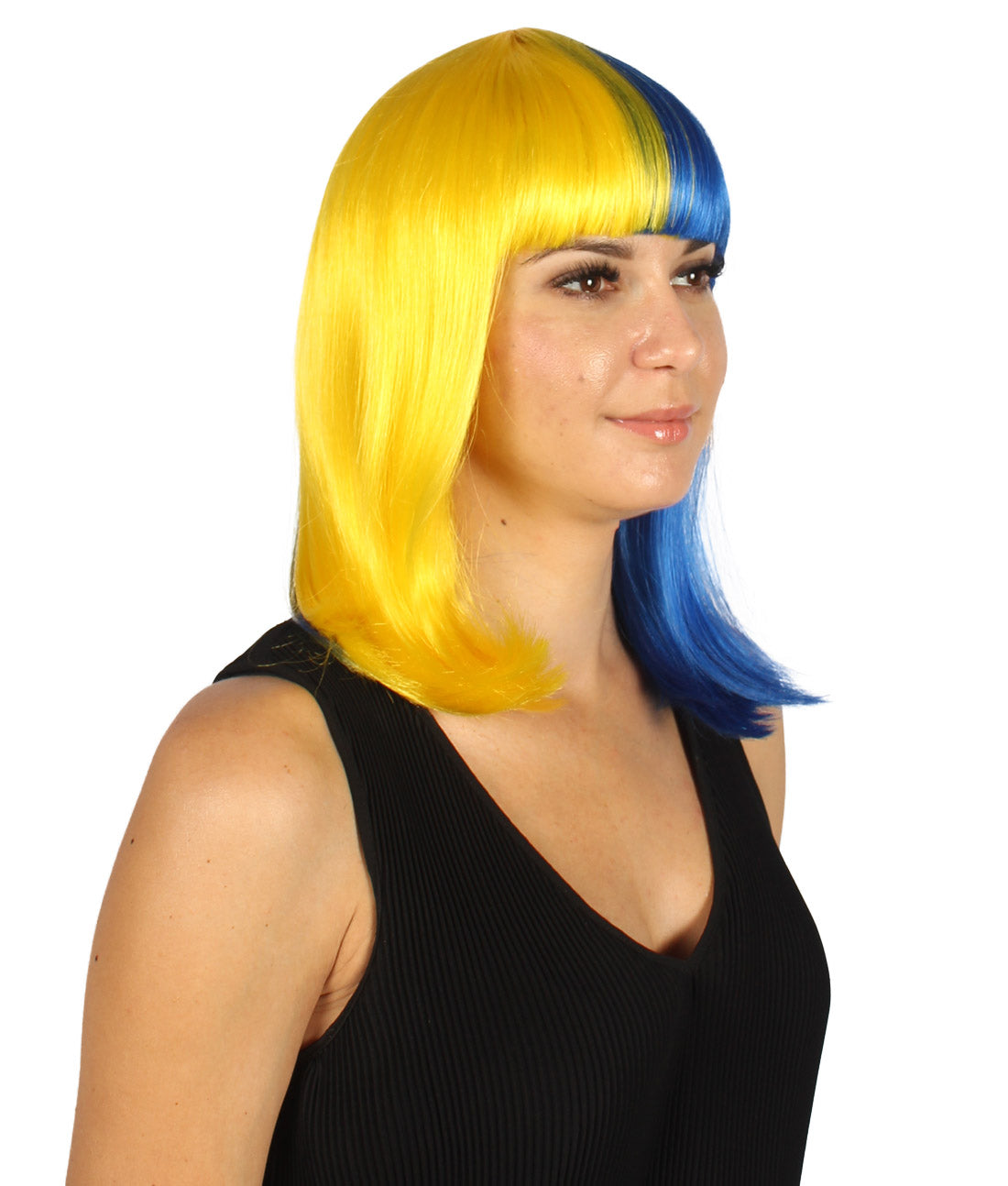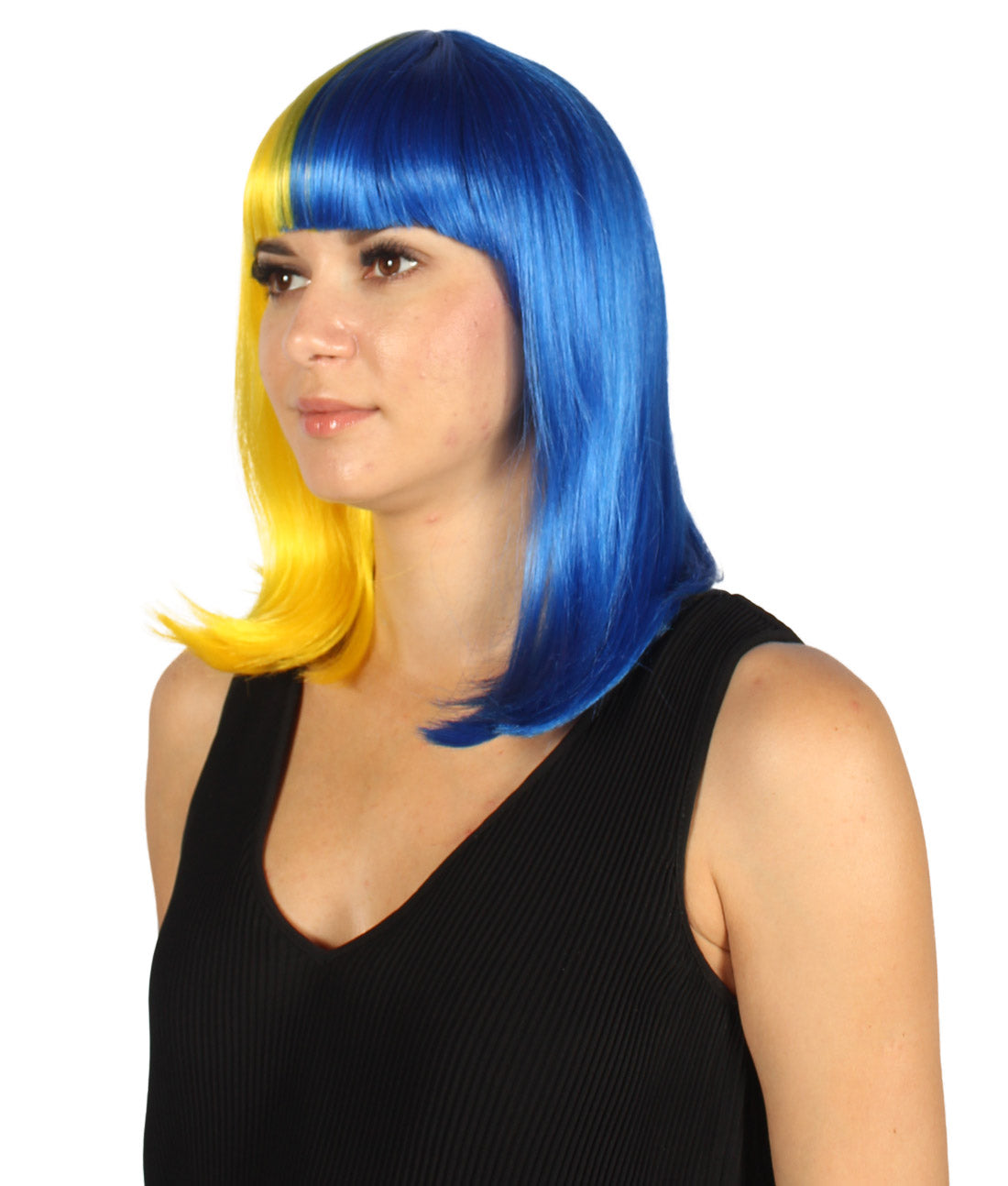 ハロウィンパーティープレミアムレディース H-4087 二色調イエロー&ブルーミディアムボブウィッグコレクション