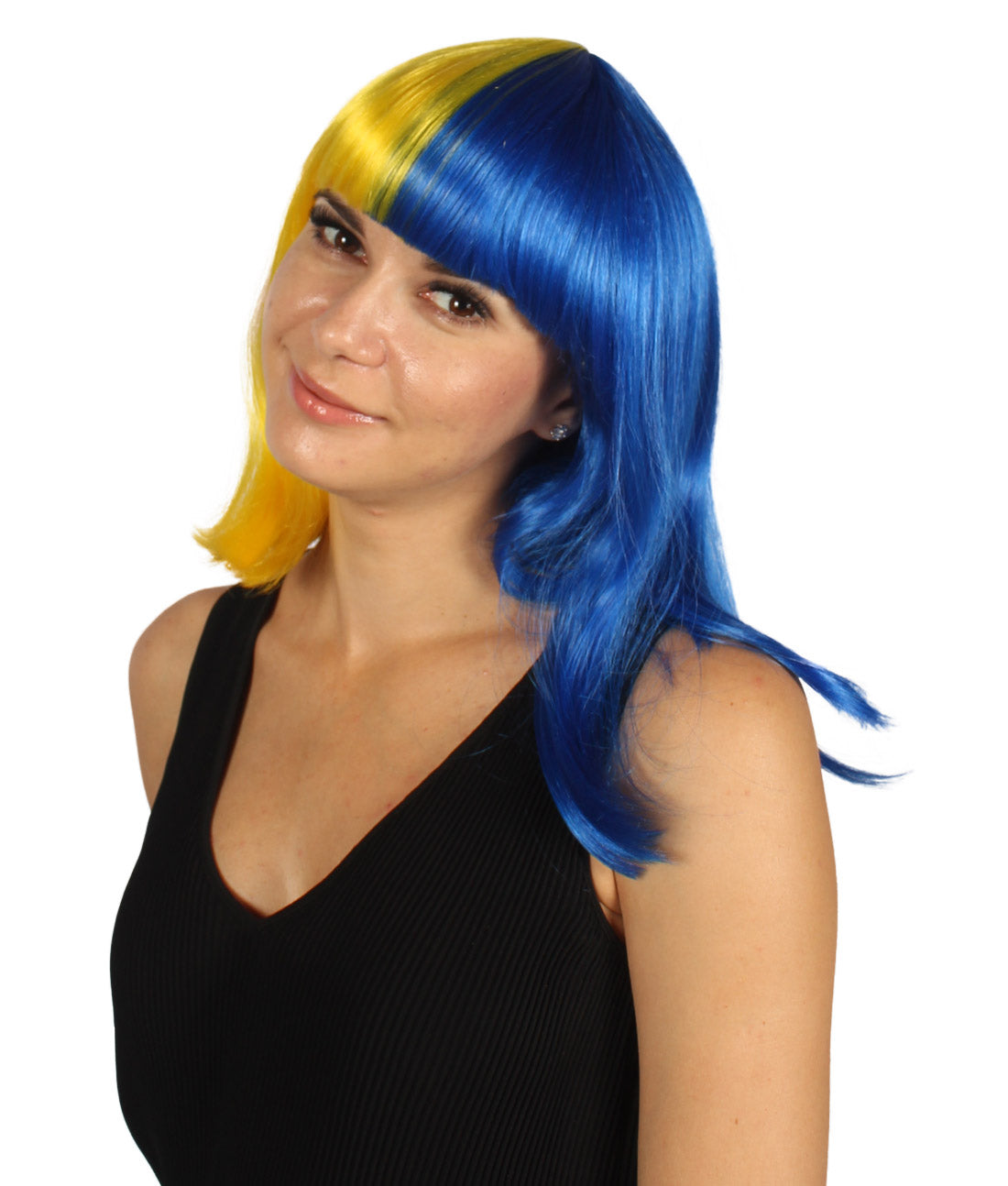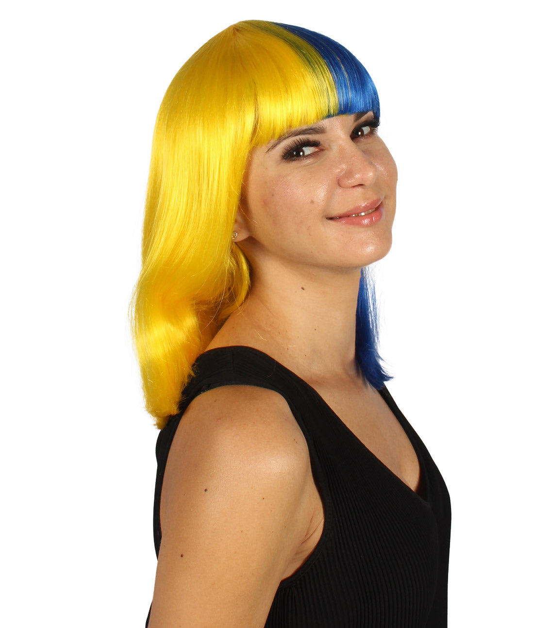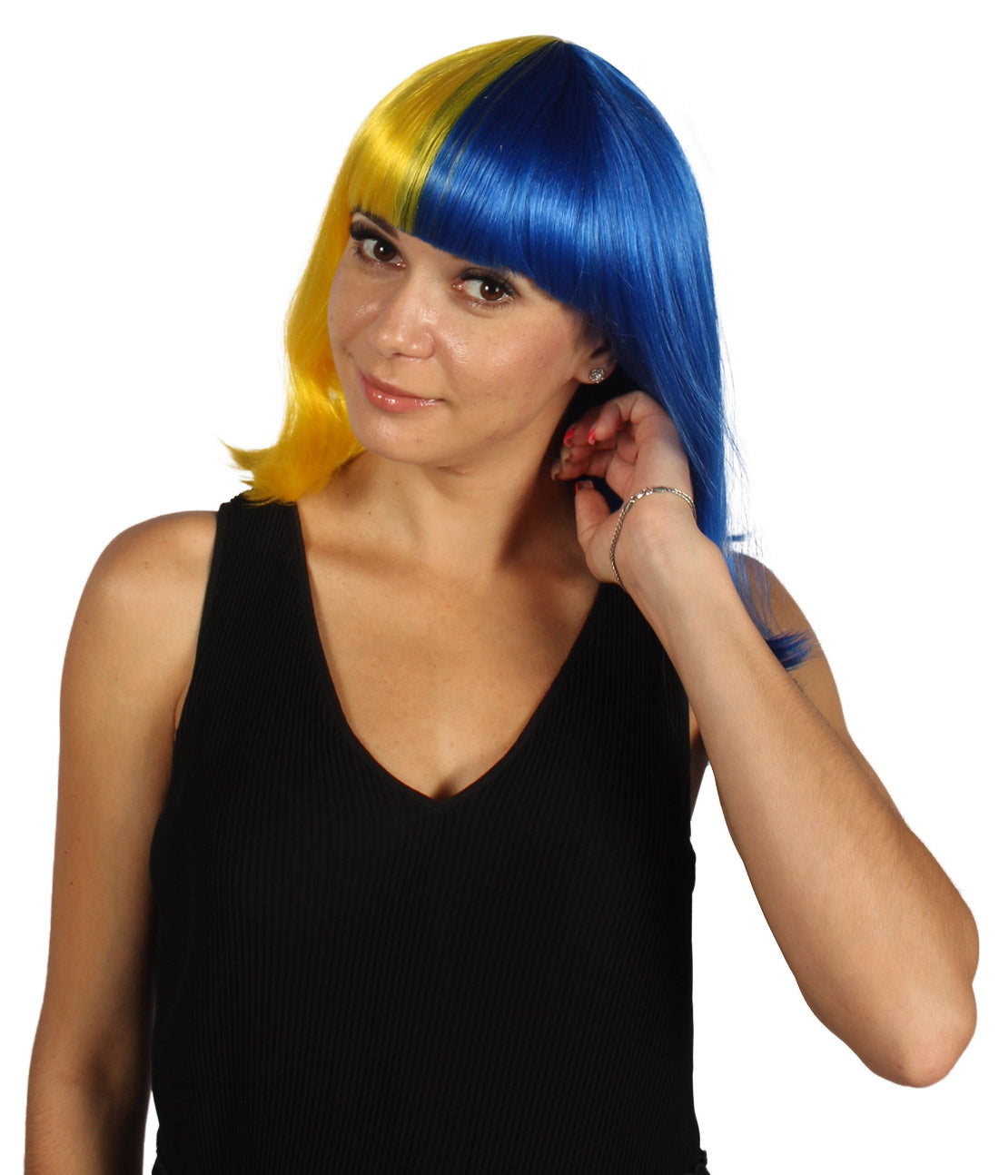 ハロウィンパーティープレミアムレディース H-4087 二色調イエロー&ブルーミディアムボブウィッグコレクション