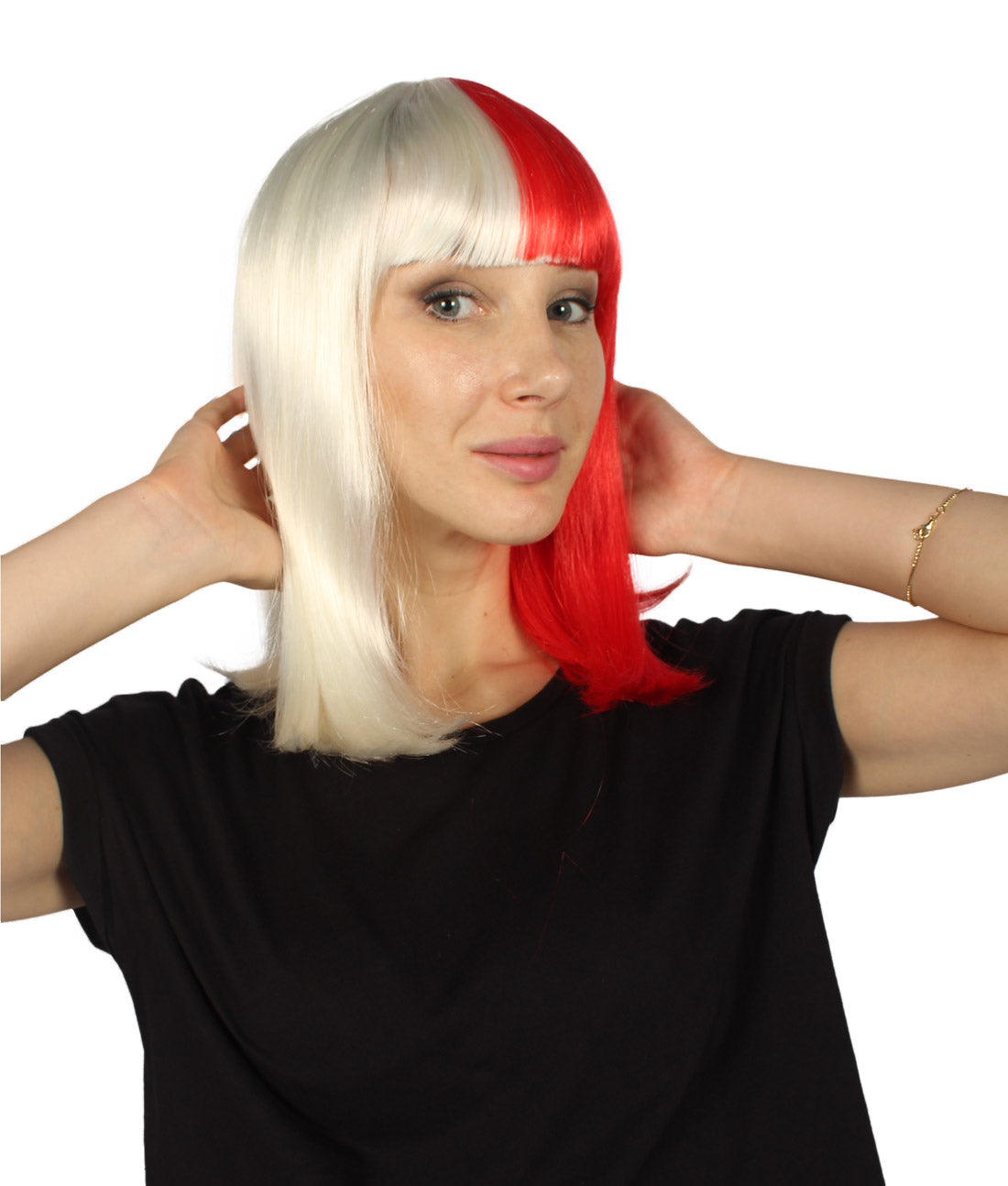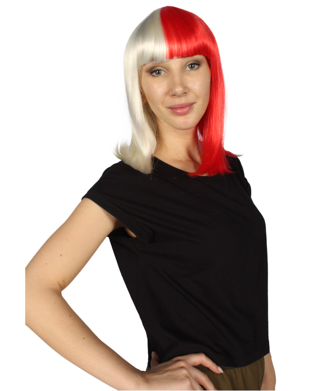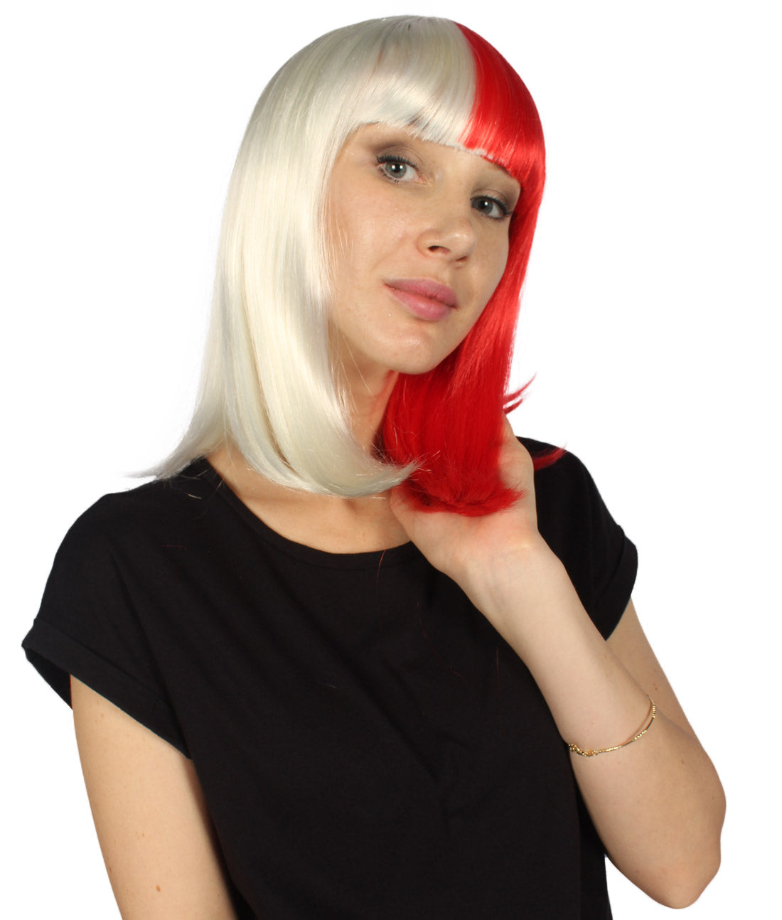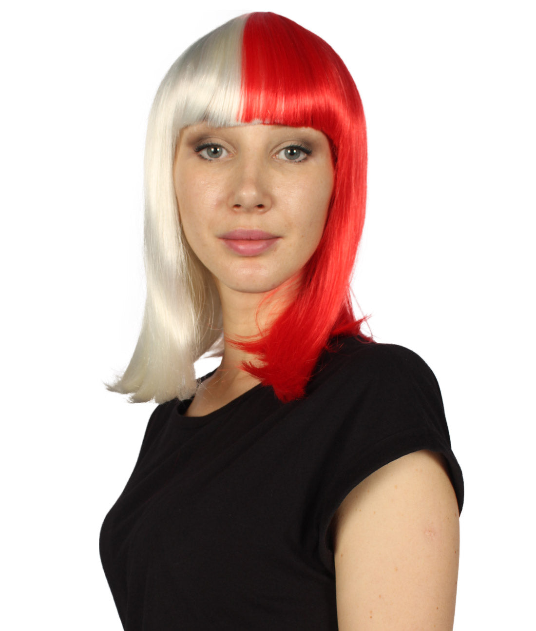ハロウィンパーティープレミアムレディース H-4088 二色調ホワイト&レッドミディアムボブウィッグコレクション