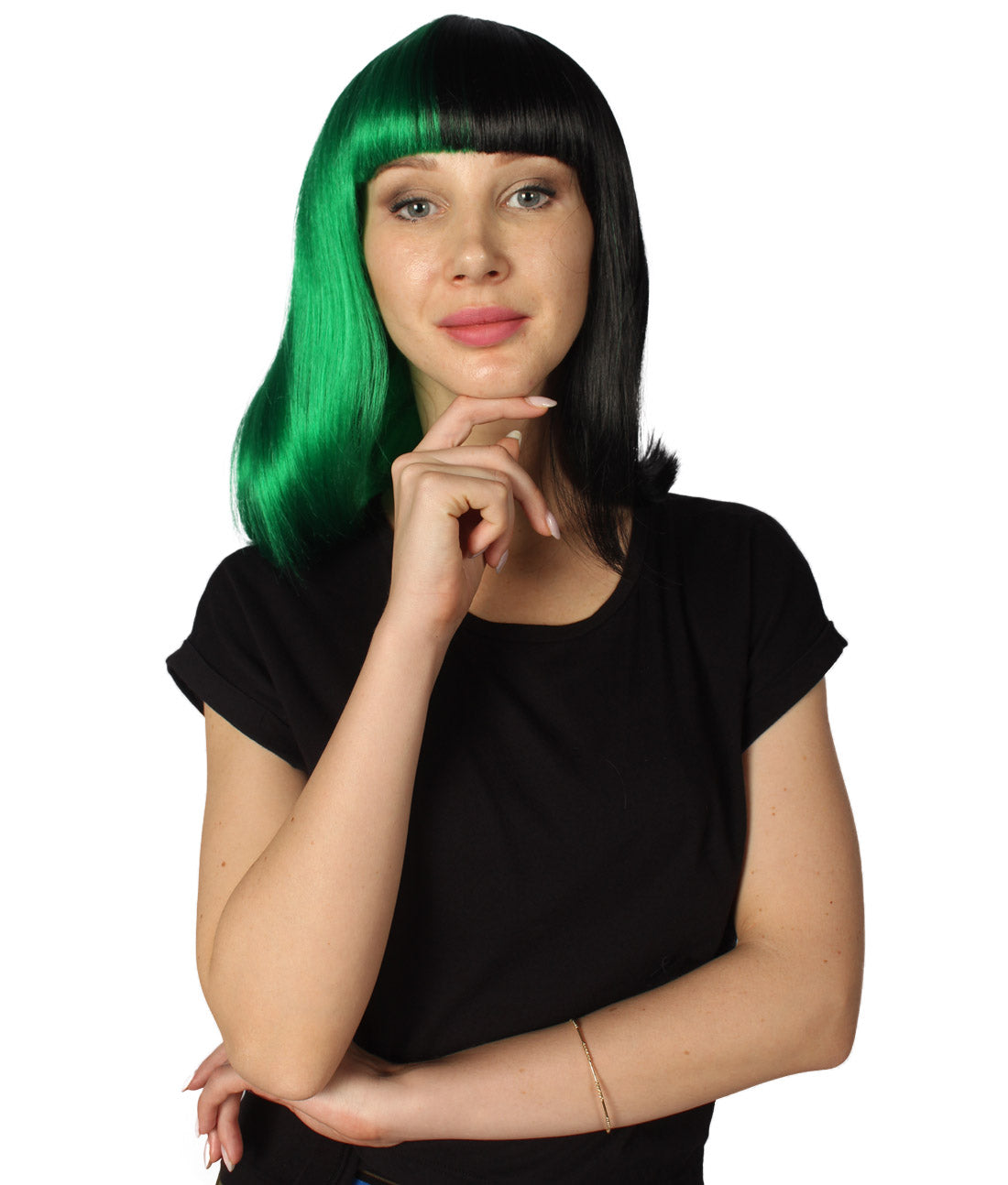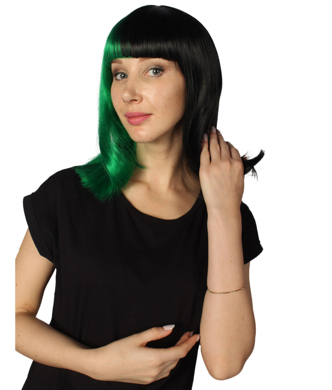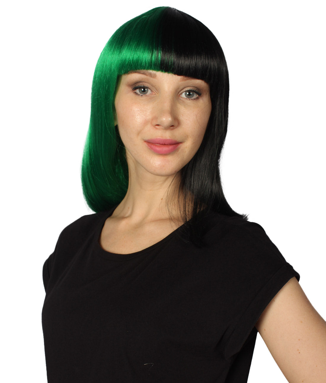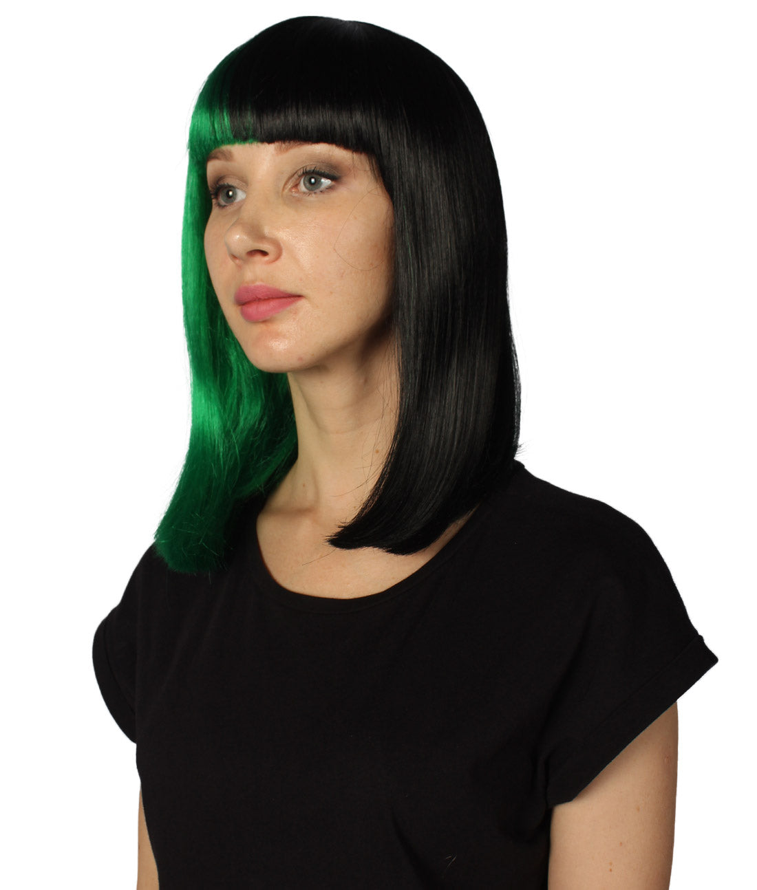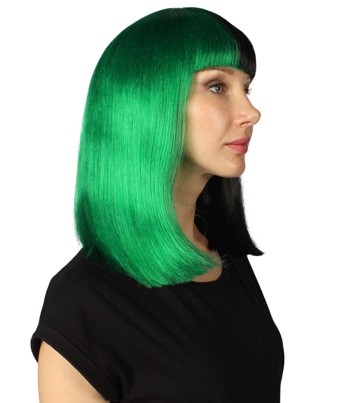 ハロウィンパーティープレミアムレディース H-4092 二色調グリーン&ブラックミディアムボブウィッグコレクション