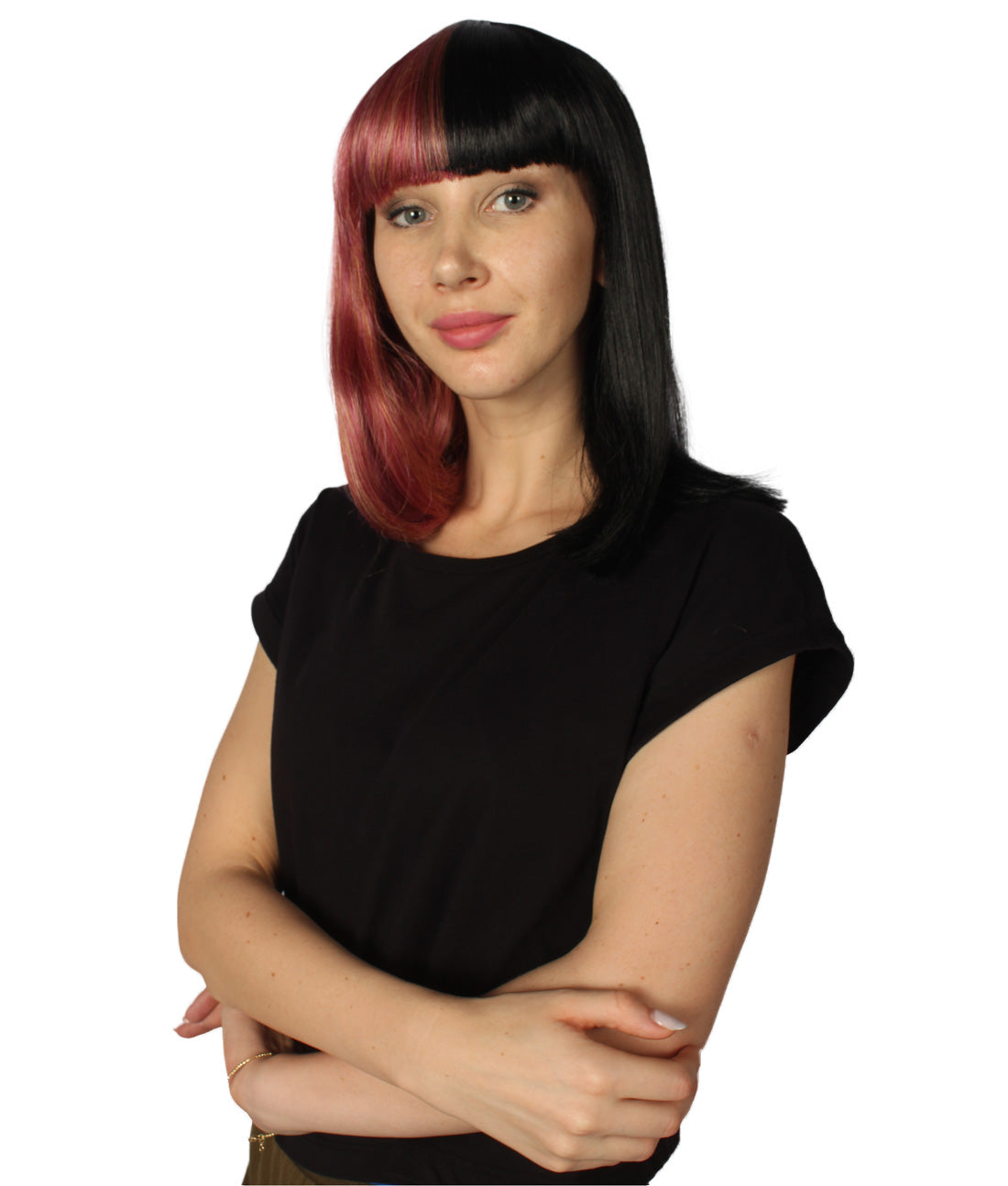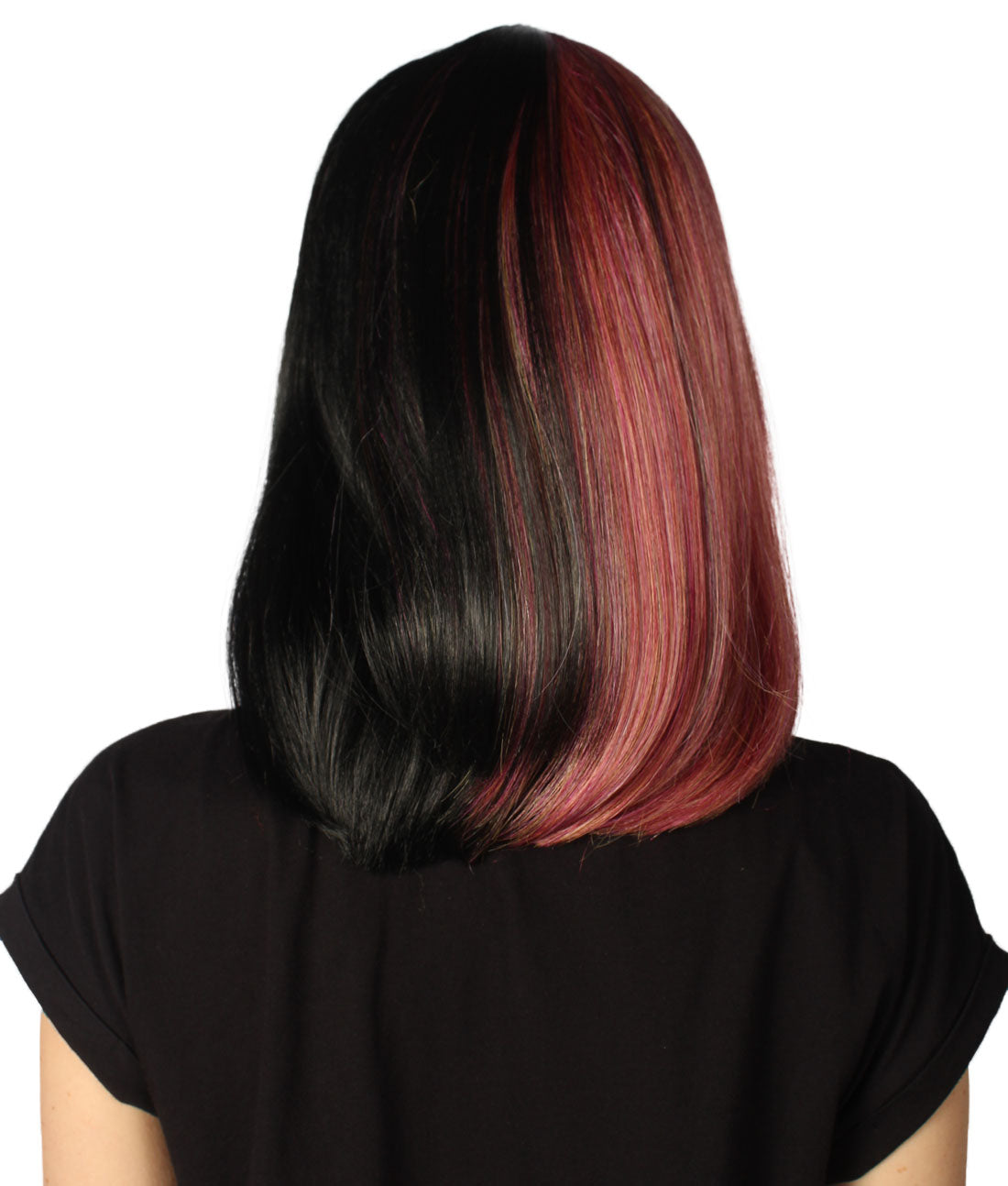 ハロウィンパーティープレミアムレディース H-4093 二色調レインボー&ブラックミディアムボブウィッグコレクション