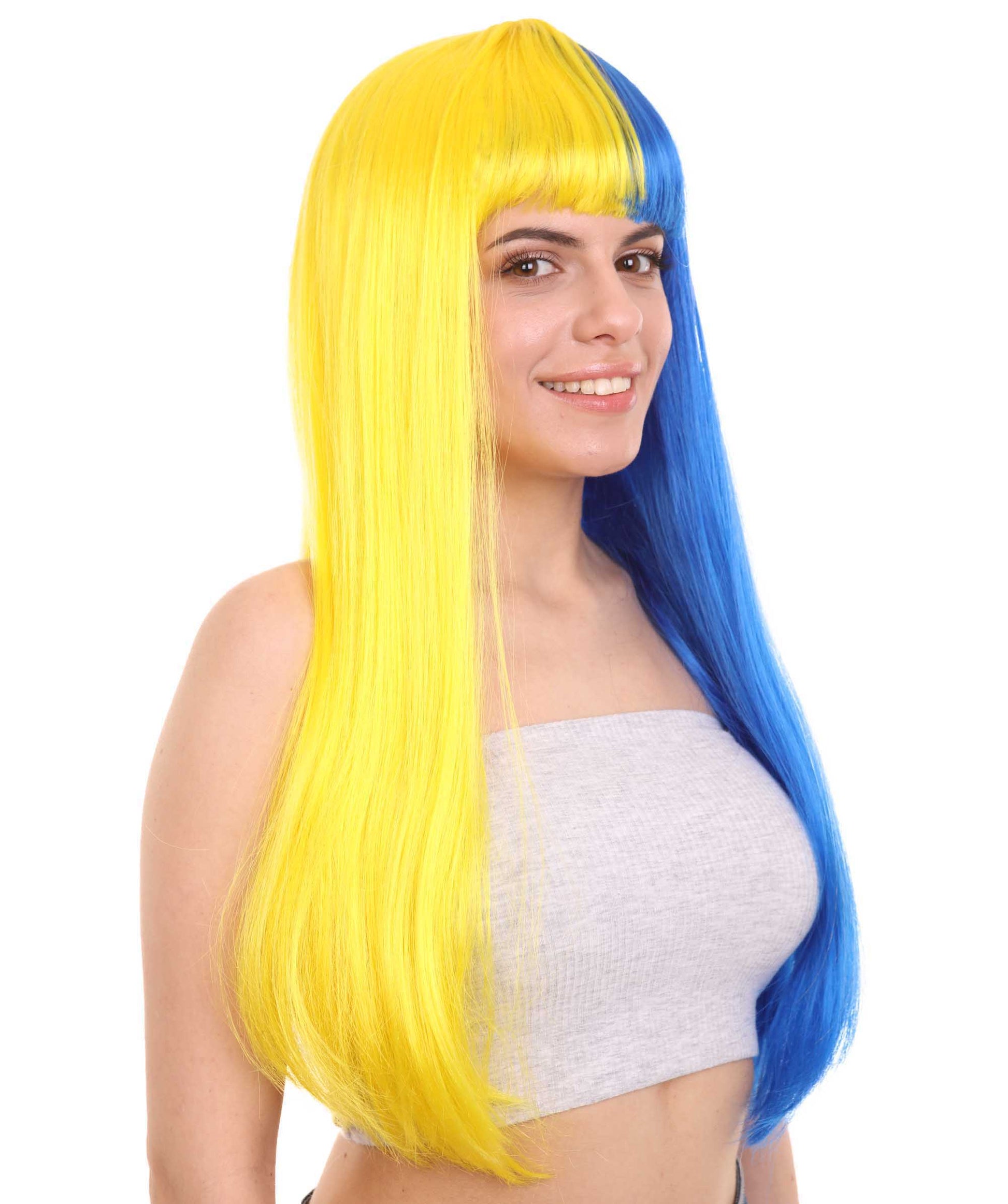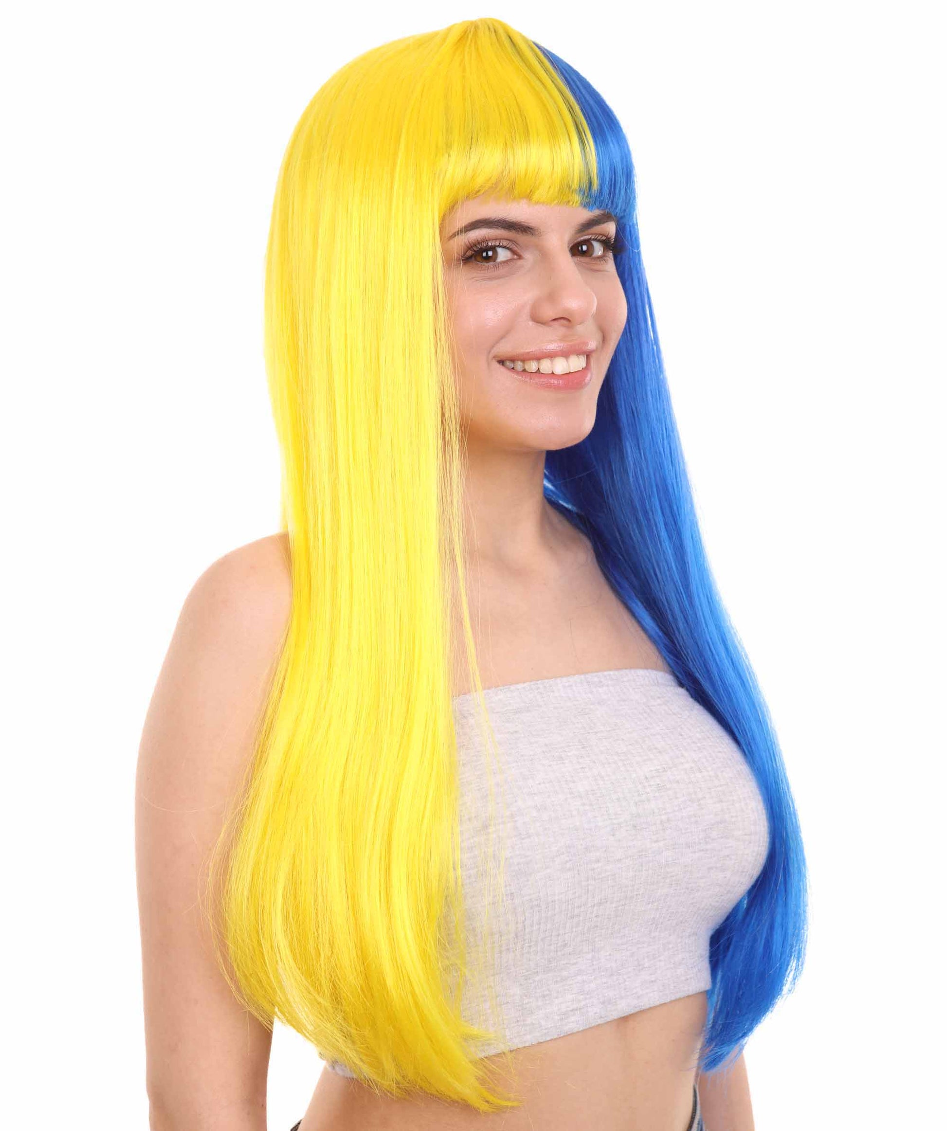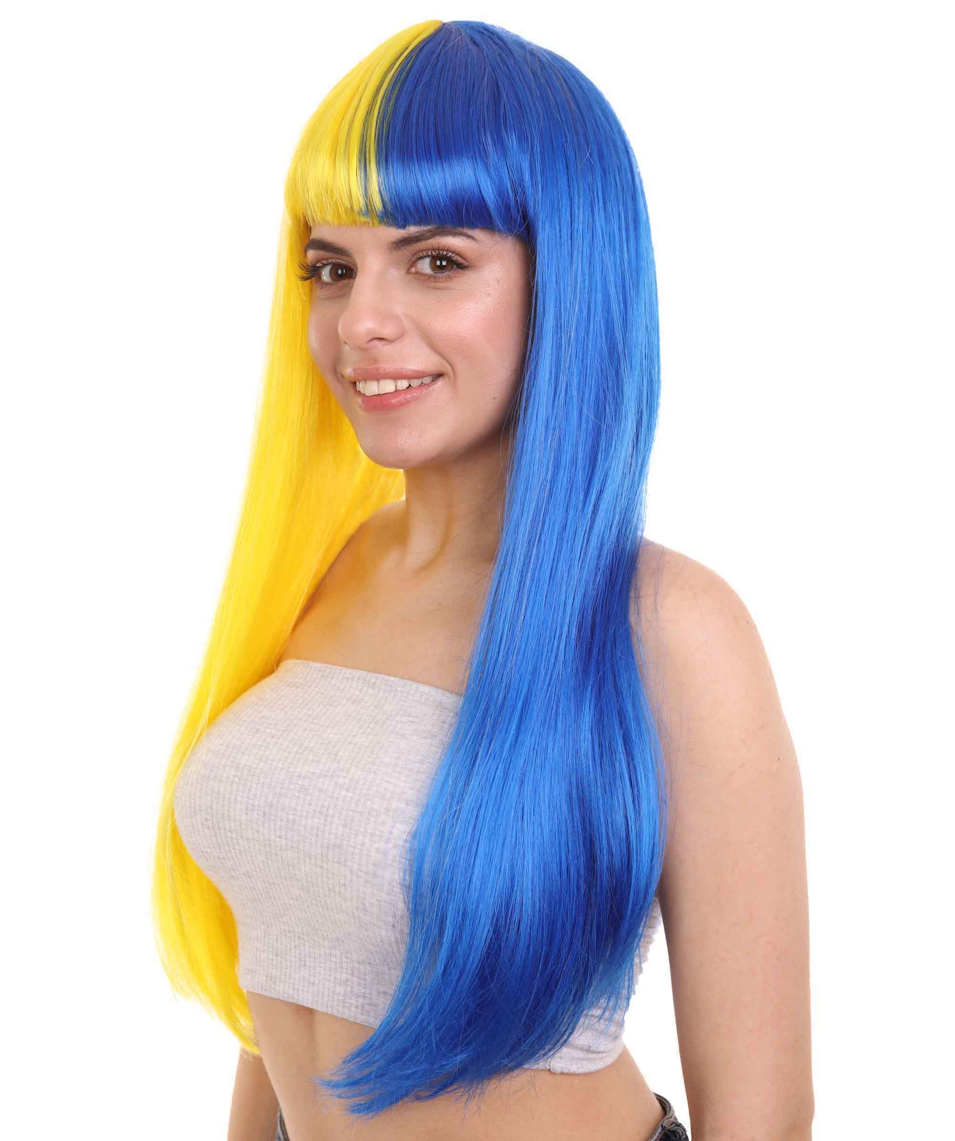 ハロウィンパーティープレミアムレディース H-4107 トーントーンイエロー&ブルーロングボブウィッグコレクション