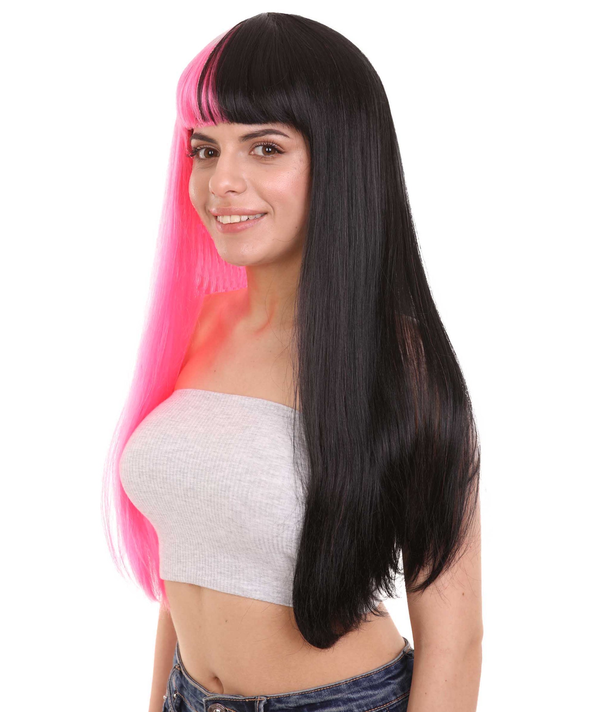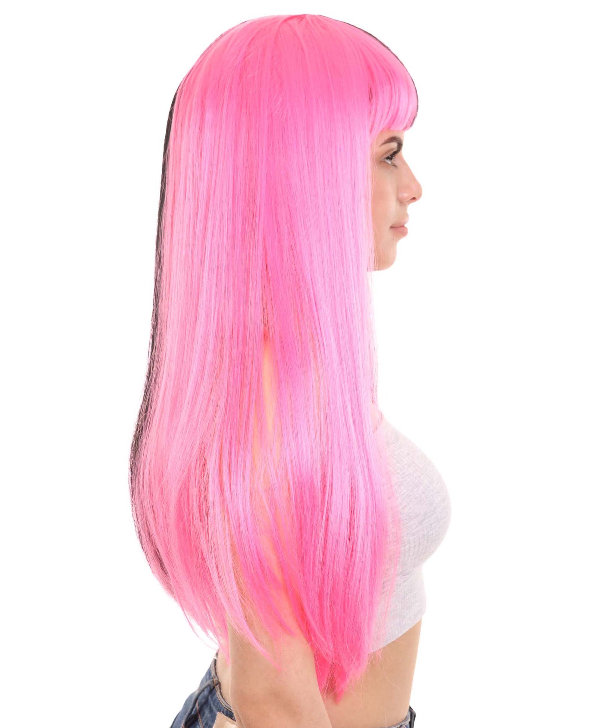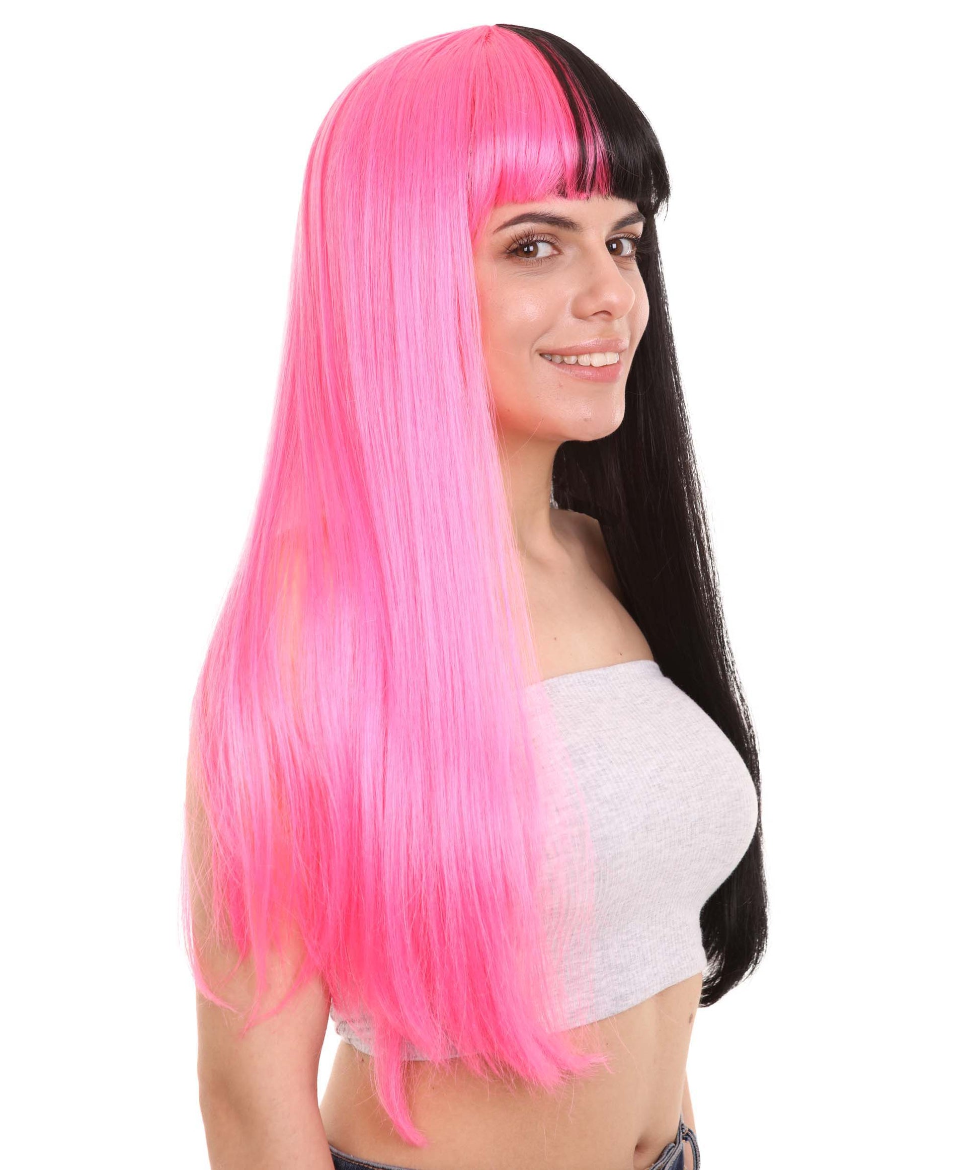 ハロウィンパーティープレミアムレディース H-4111 トーントーンピンク&ブラックロングボブウィッグコレクション