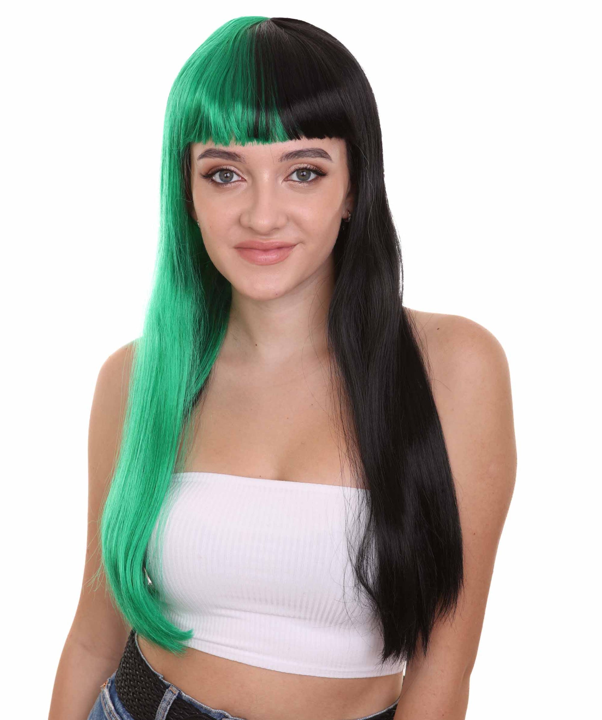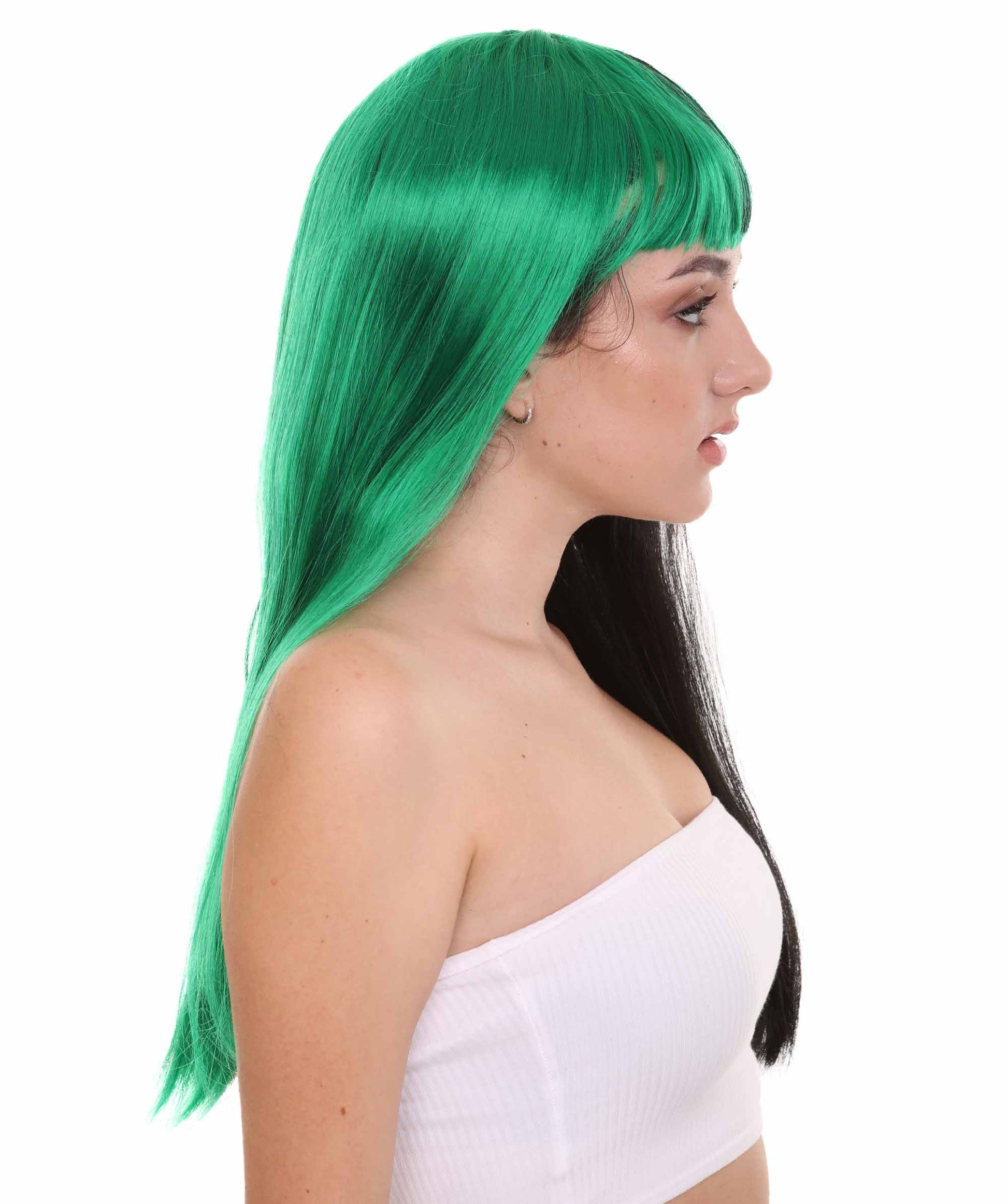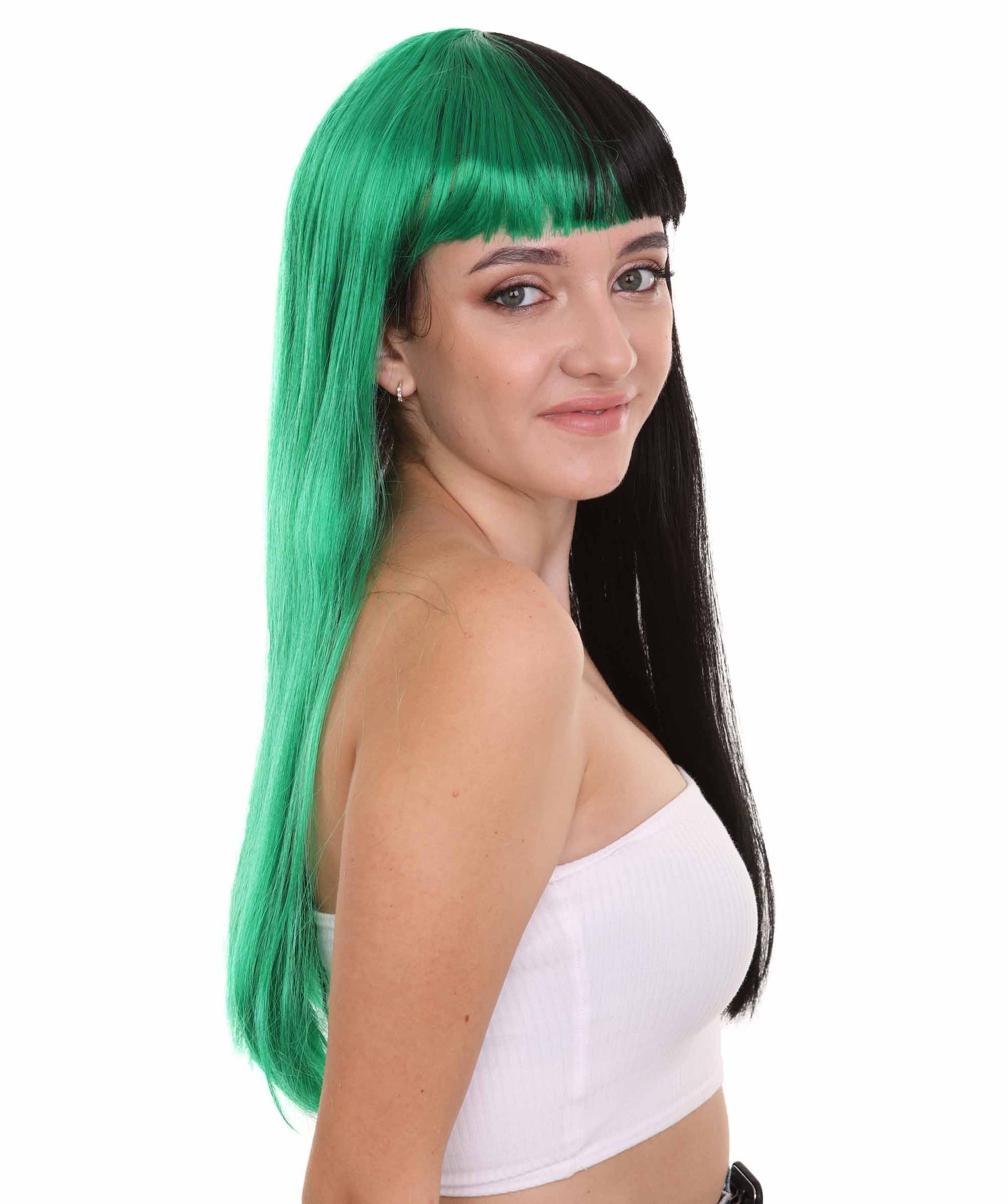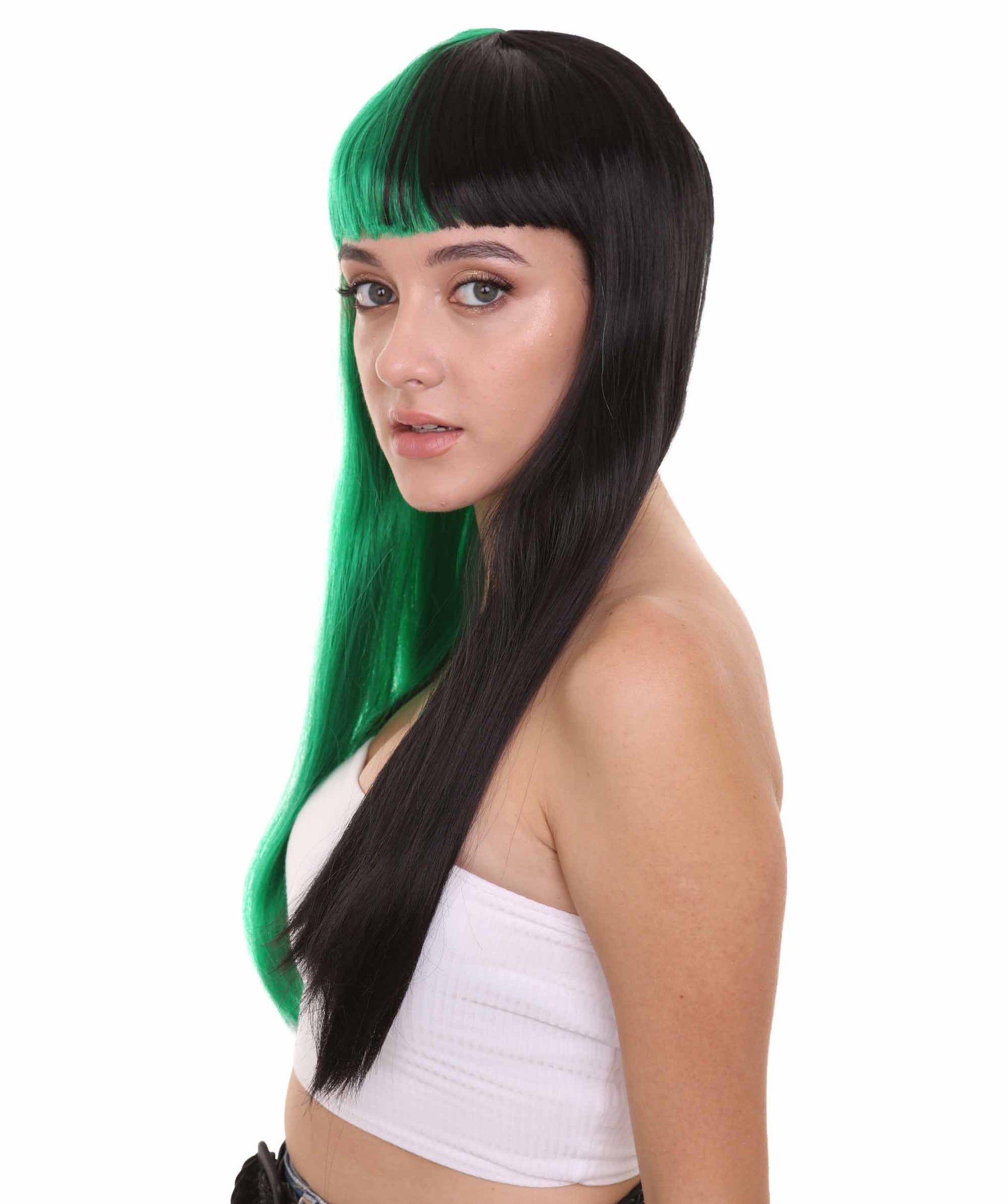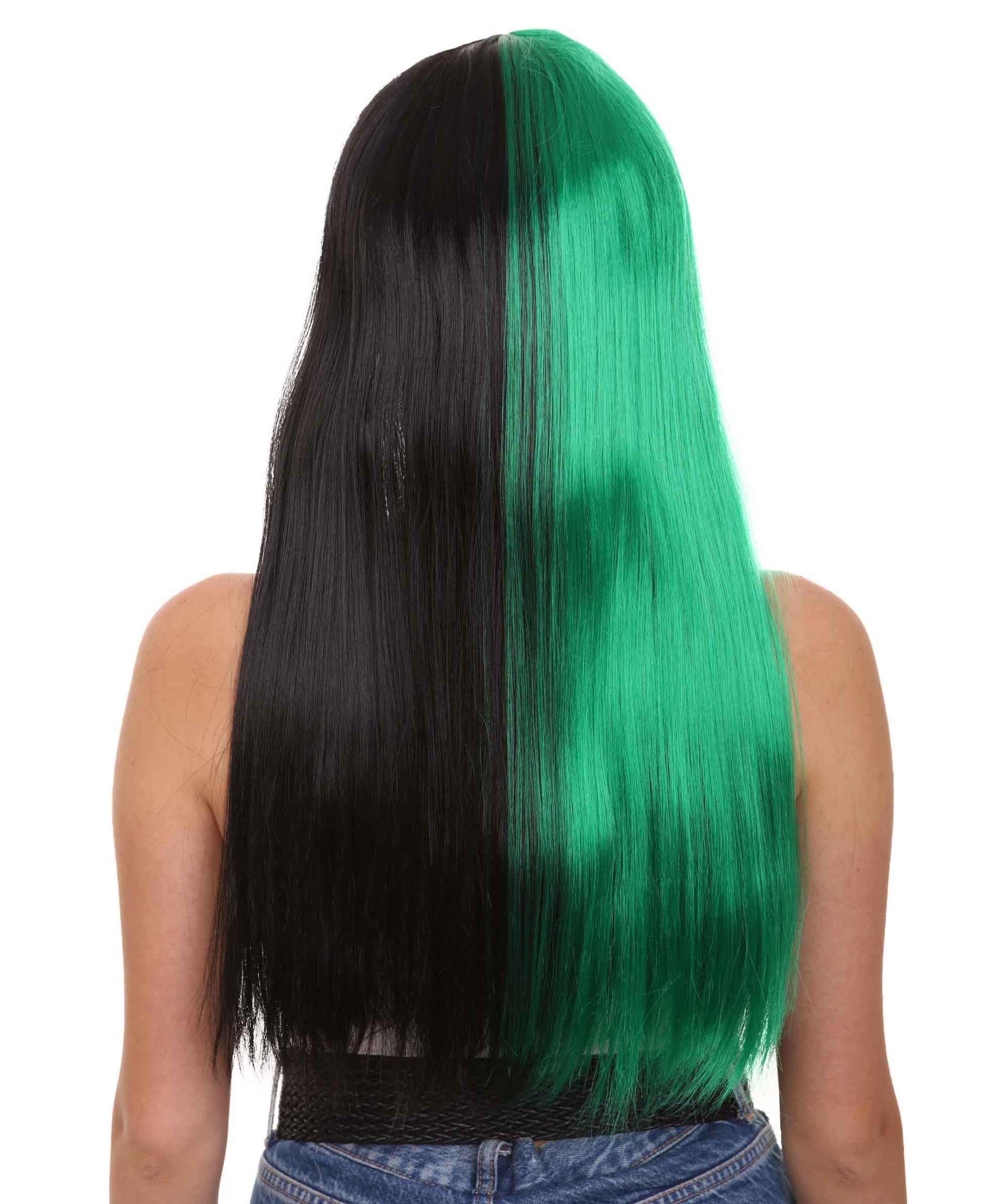 ハロウィンパーティープレミアムレディース H-4112 トーントーングリーン&ブラックロングボブウィッグコレクション