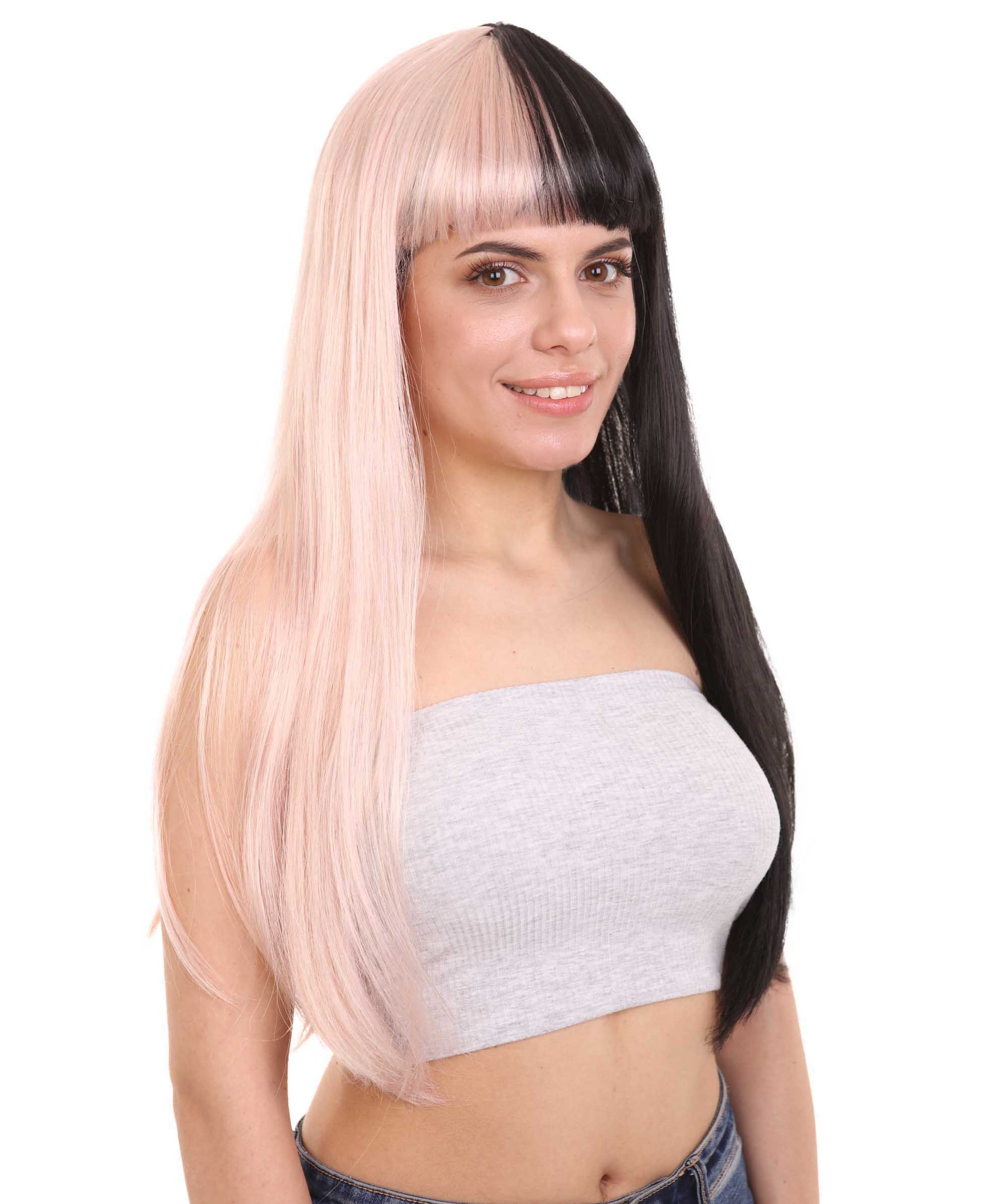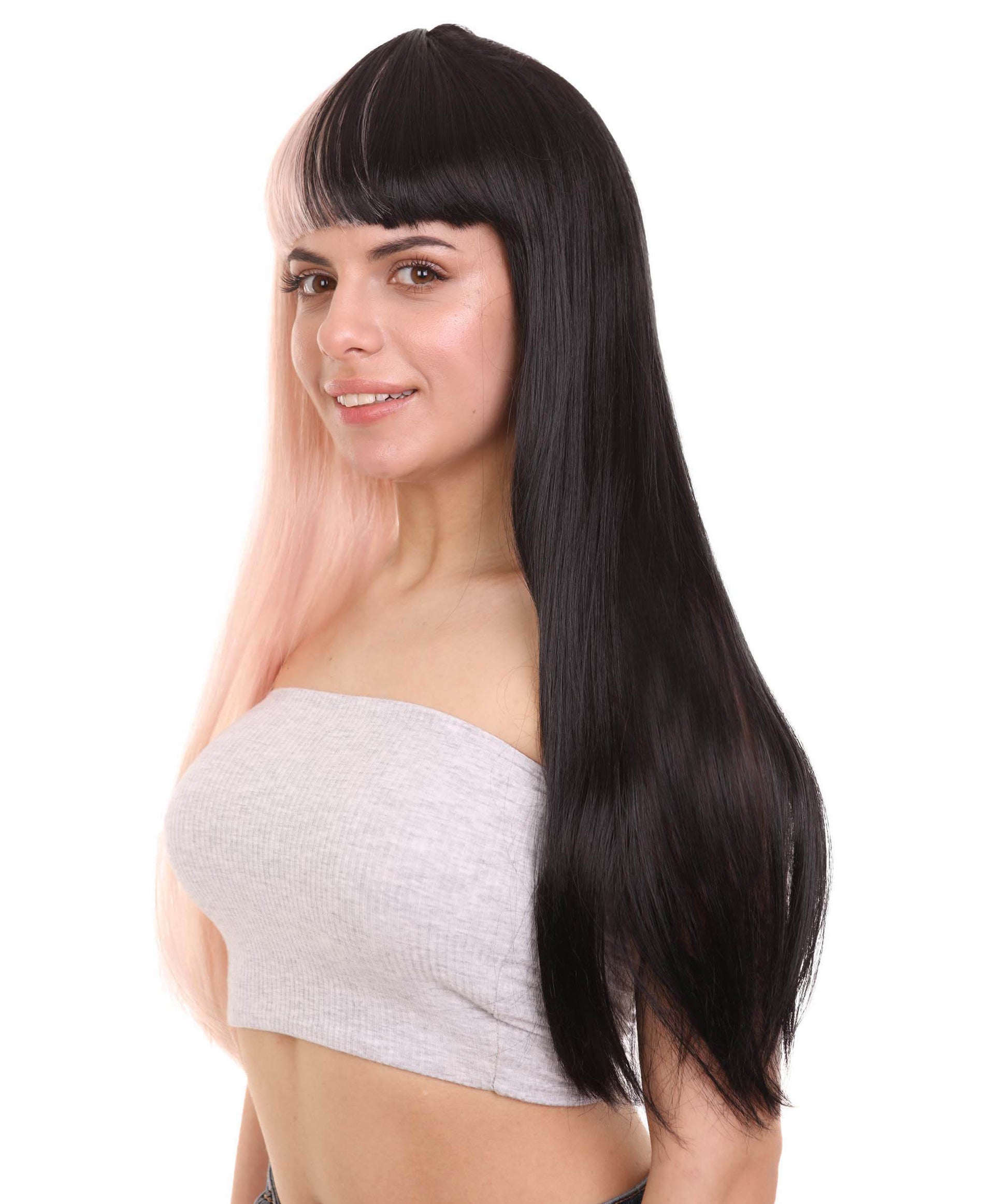ハロウィンパーティープレミアムレディース H-4114 トーントーンミックスブロンドピンク&ブラックロングボブウィッグコレクション
