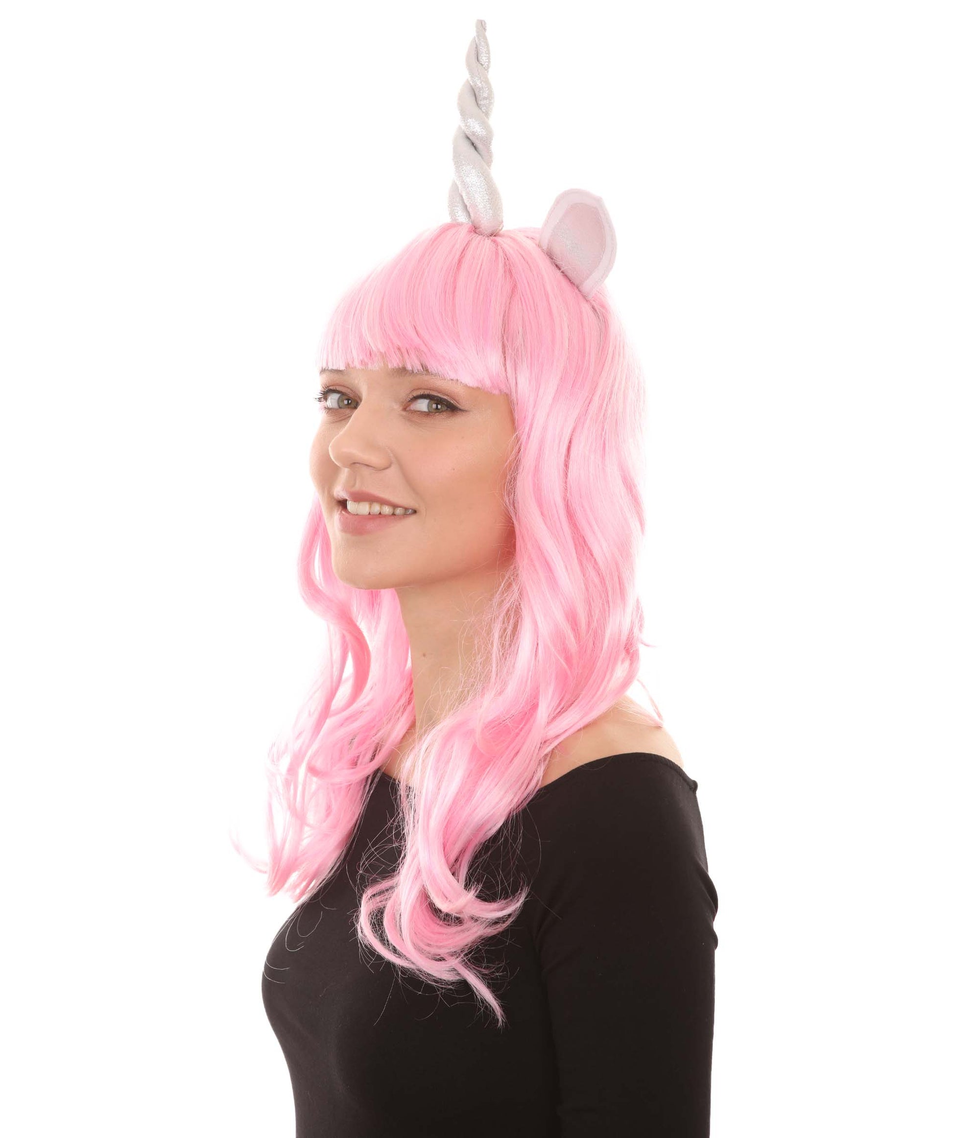 ハロウィンパーティ プレミアムレディース H-4757 ユニコーンの角と耳 ピンクウィッグ