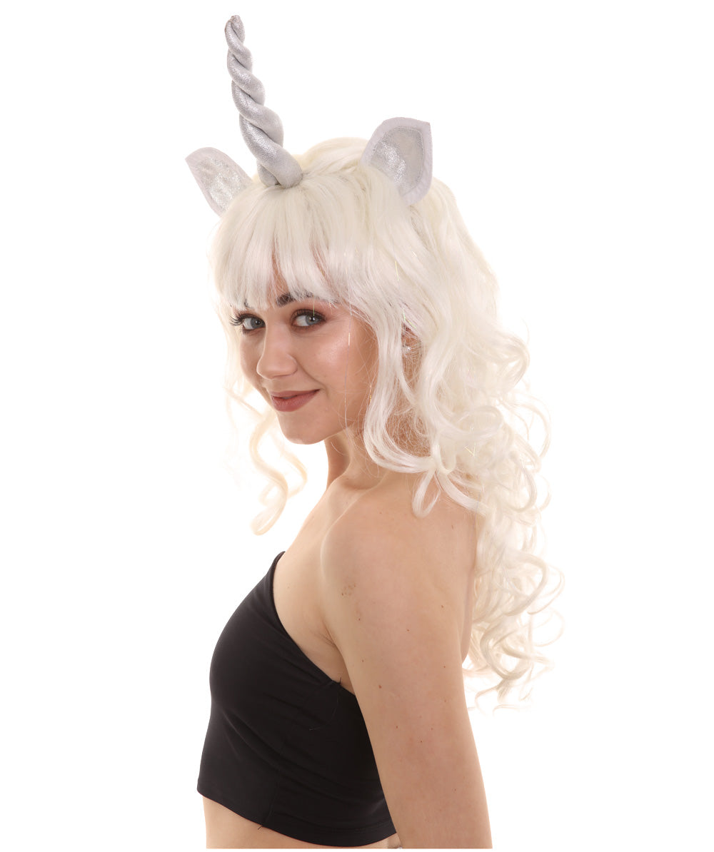 ハロウィンパーティ プレミアムレディース H-4760 ユニコーンの角と耳 ホワイトウィッグ