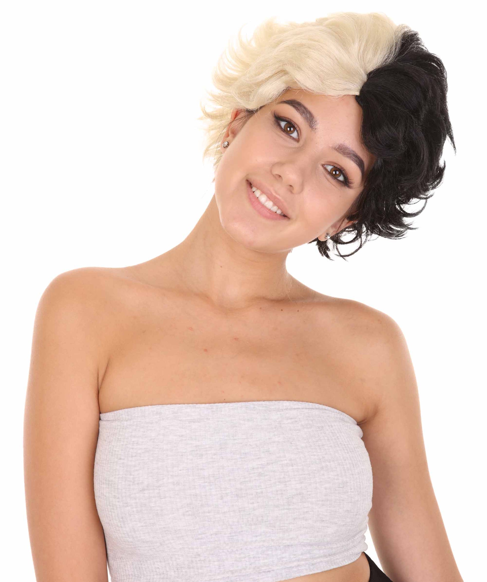ハロウィンパーティ プレミアムレディース H-5110 ショート ツートーン ブラック&ホワイト ピクシー ハートバング付き