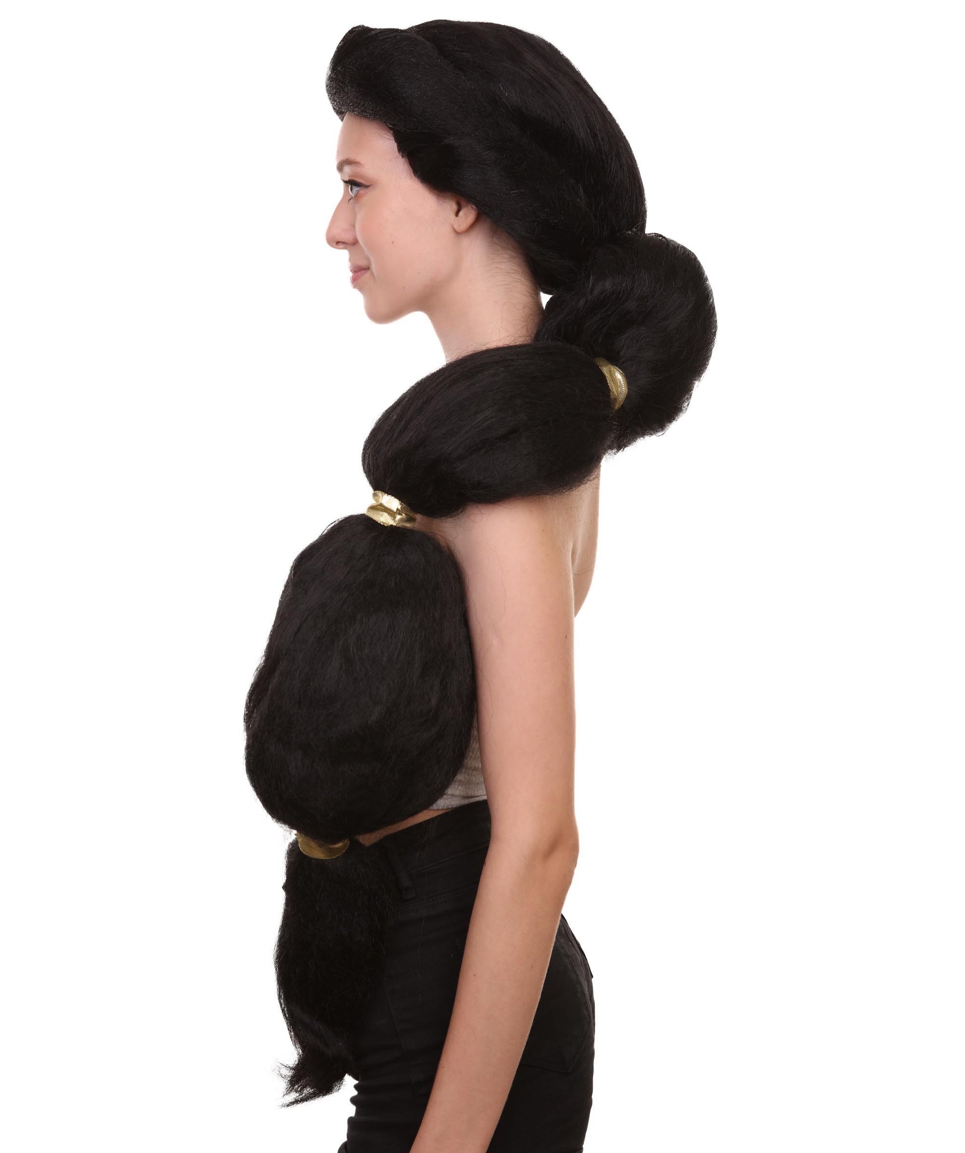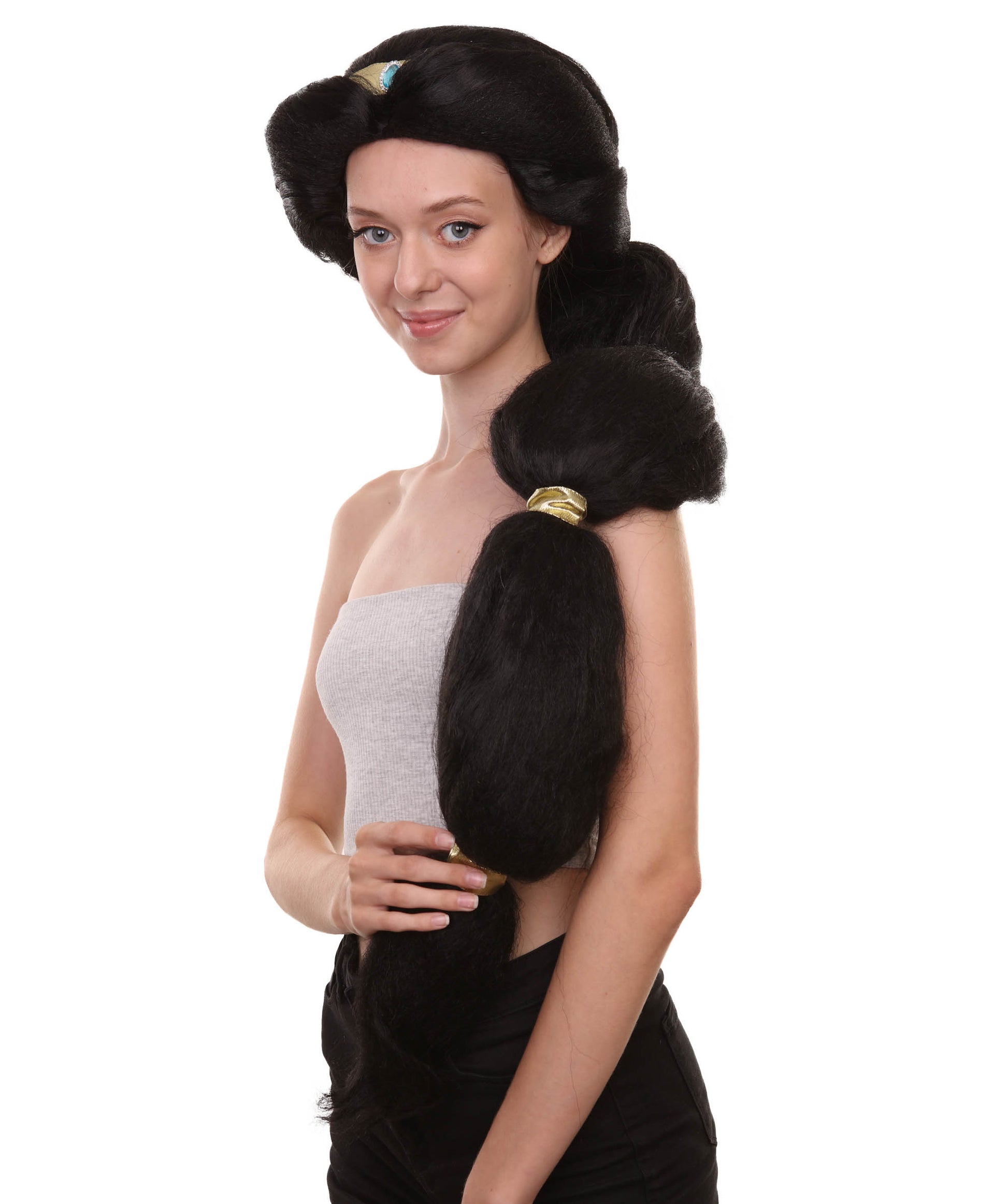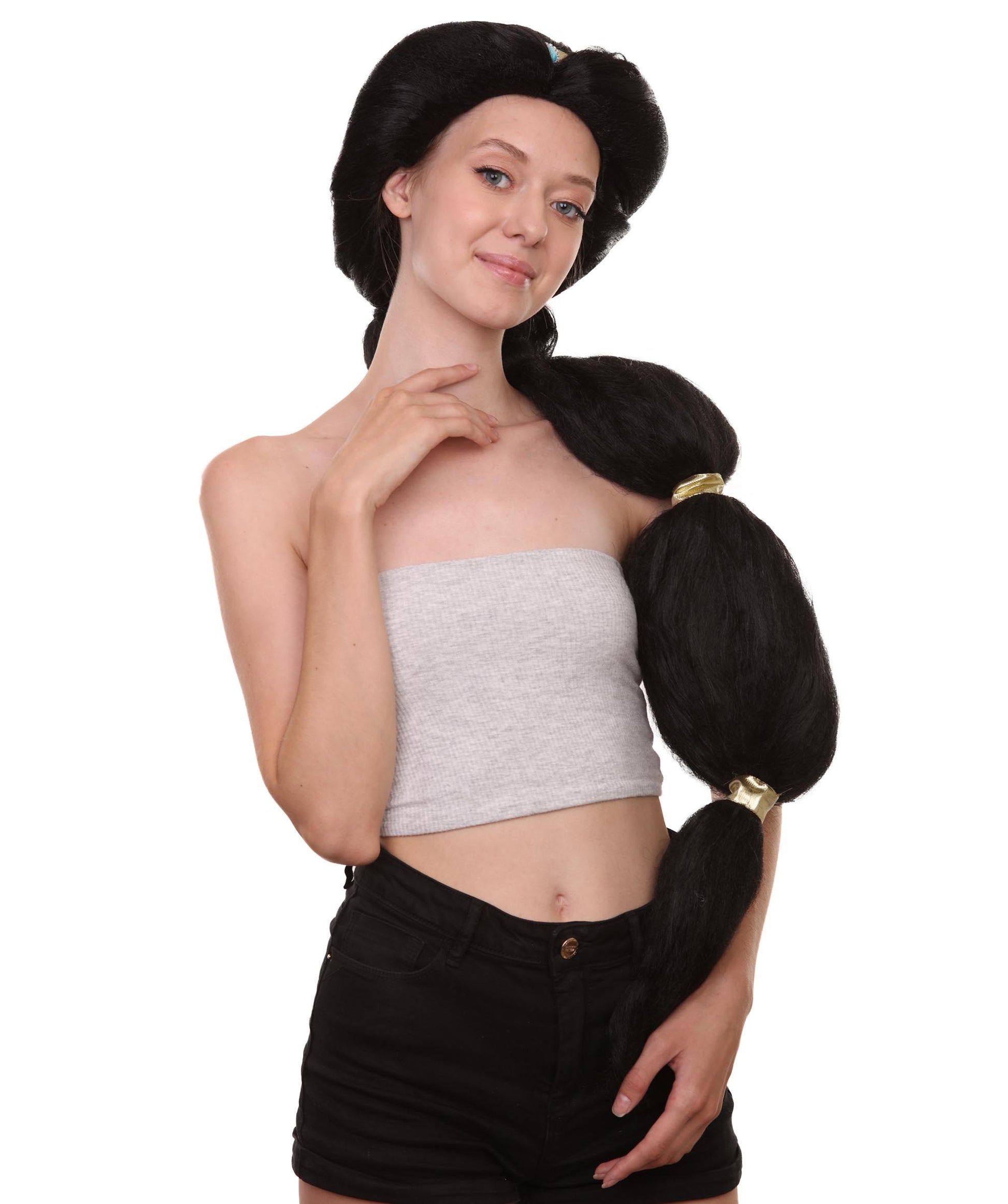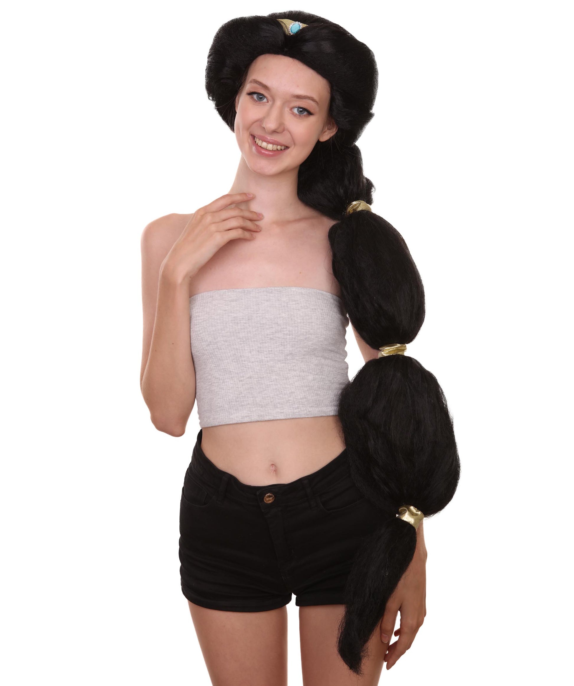 ハロウィンパーティ プレミアムレディース H-5181 プリンセスジャスミン 大きな編み込みブラックウィッグ
