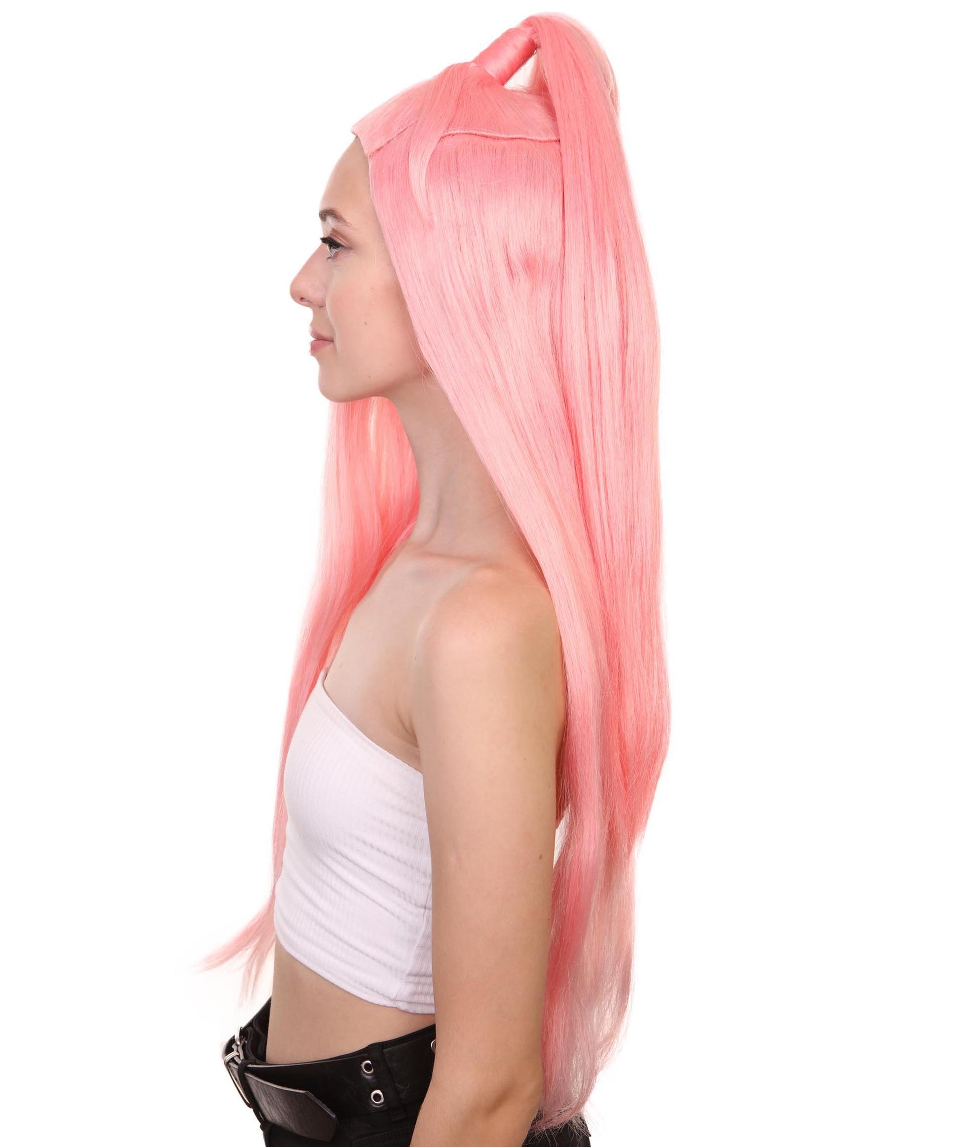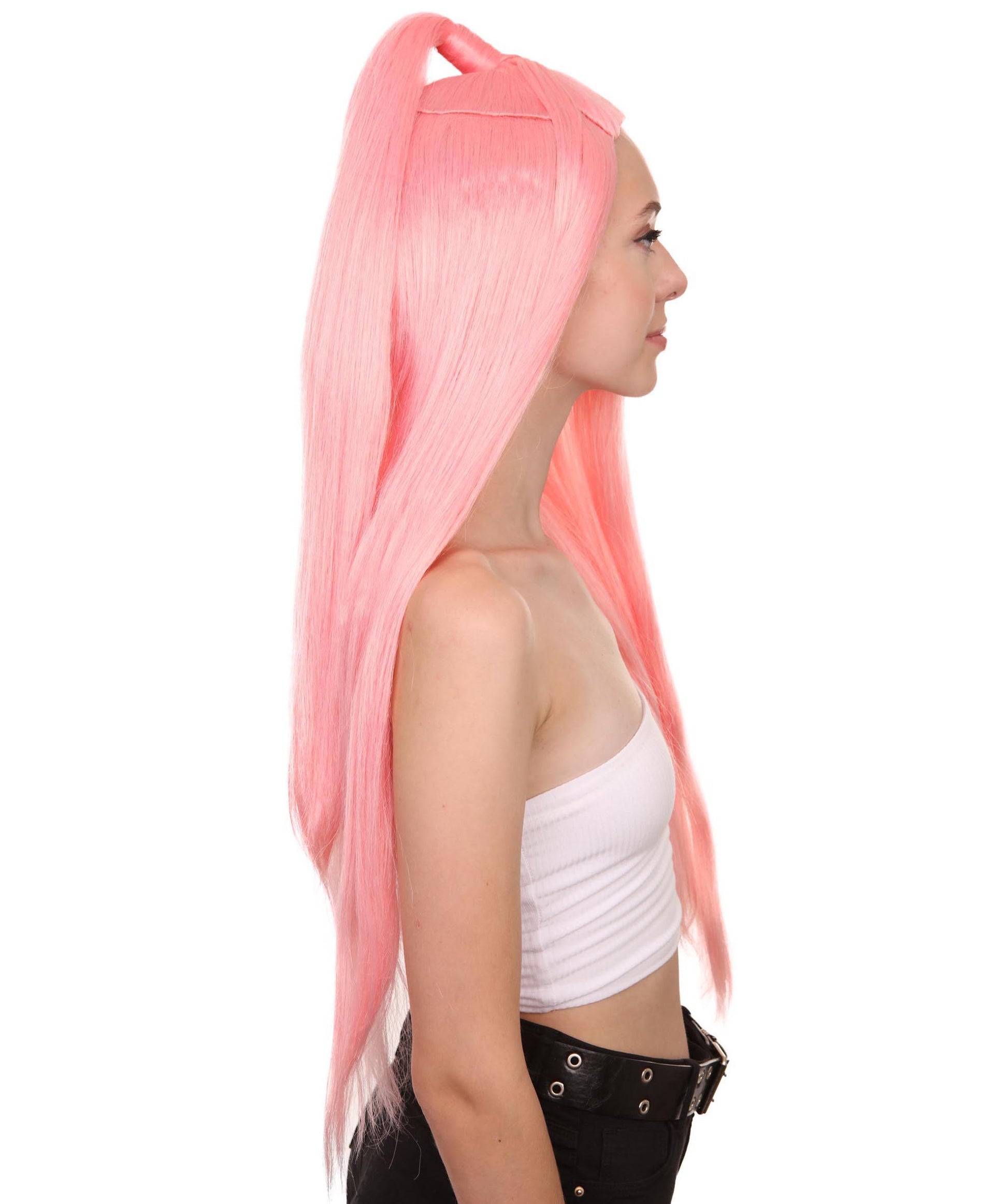 ハロウィンパーティプレミアム H-5239 レディース ガガクロマチックアイコンの半アップ半ダウンの長いウィッグ ピンク