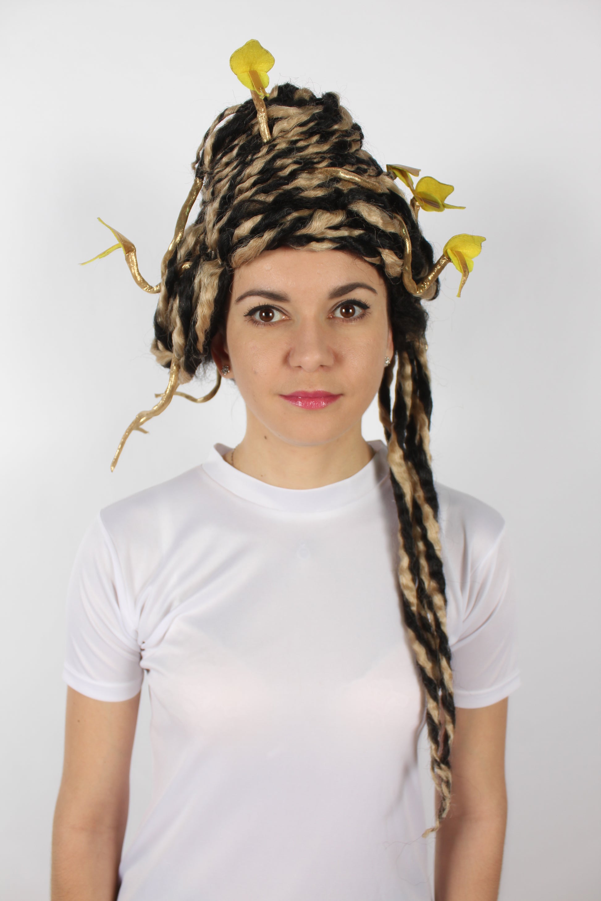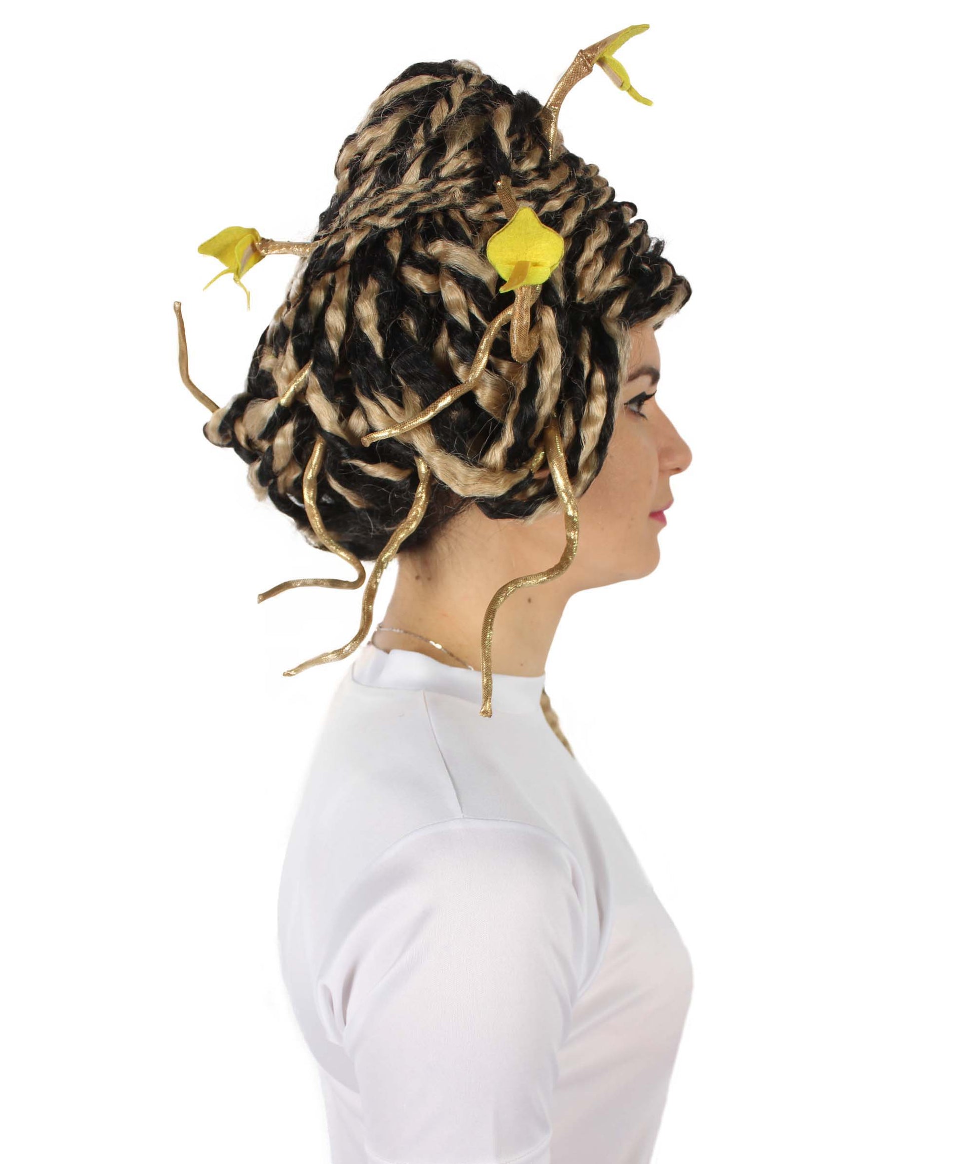 ハロウィンパーティープレミアムレディース H-5663-MBKBLD モダンメデューサスネークウィッグ 黒&ブロンド色