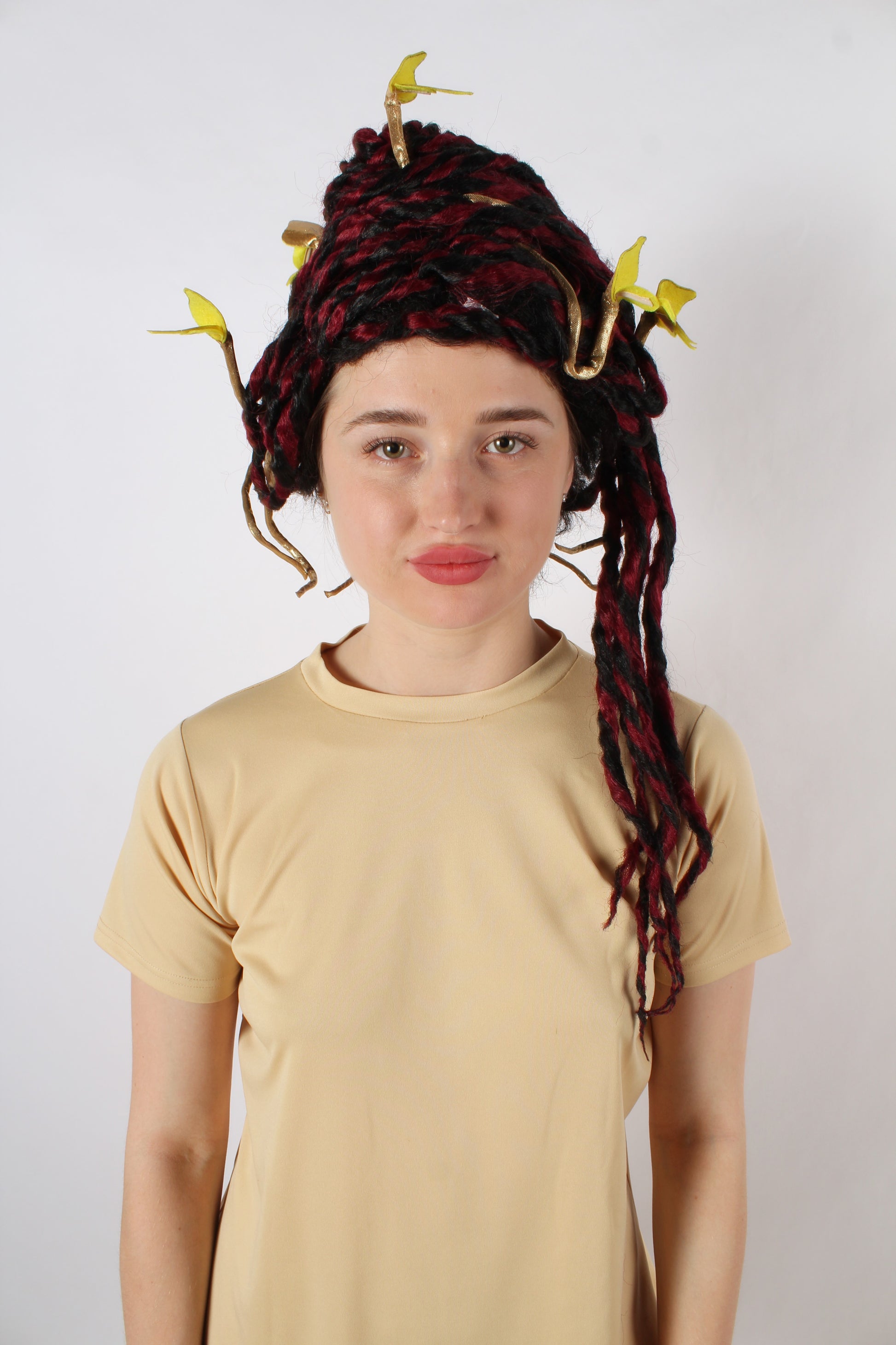 ハロウィンパーティープレミアムレディース H-5663-MBKRD モダンメデューサスネークウィッグ 黒&赤色
