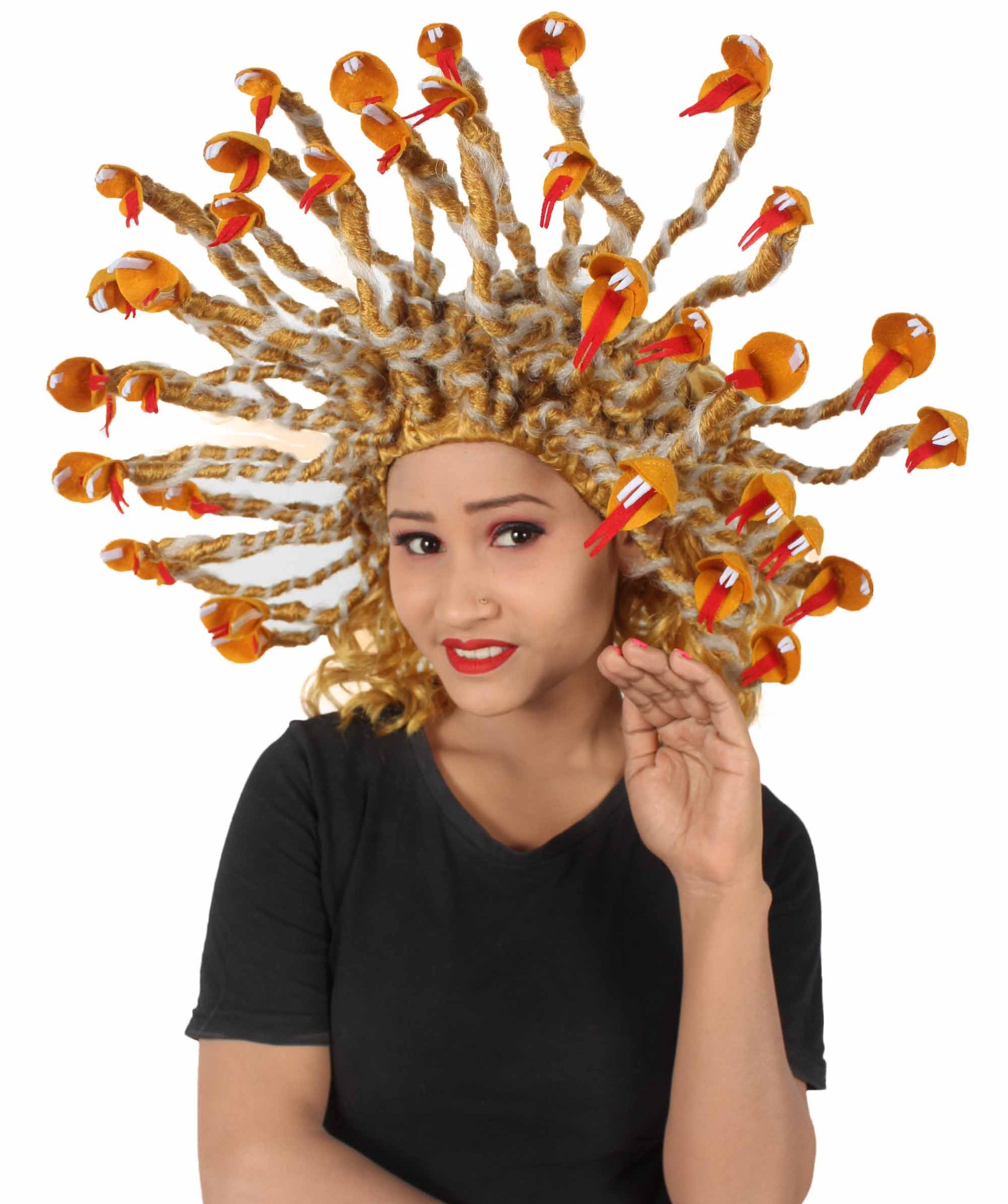 ハロウィンパーティープレミアムレディース H-5664-GD ギリシャ神話メデューサスネークウィッグ 金色