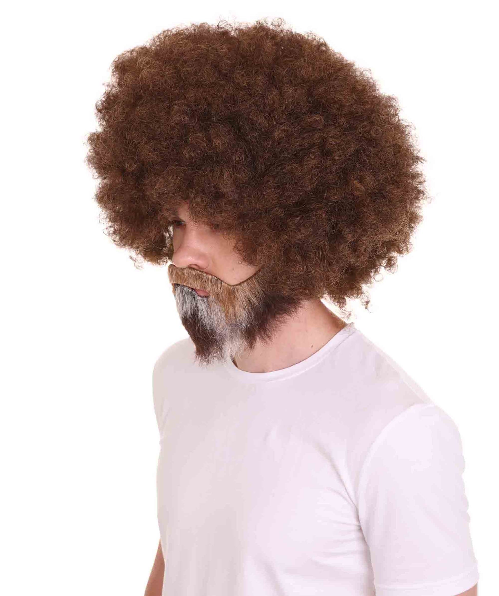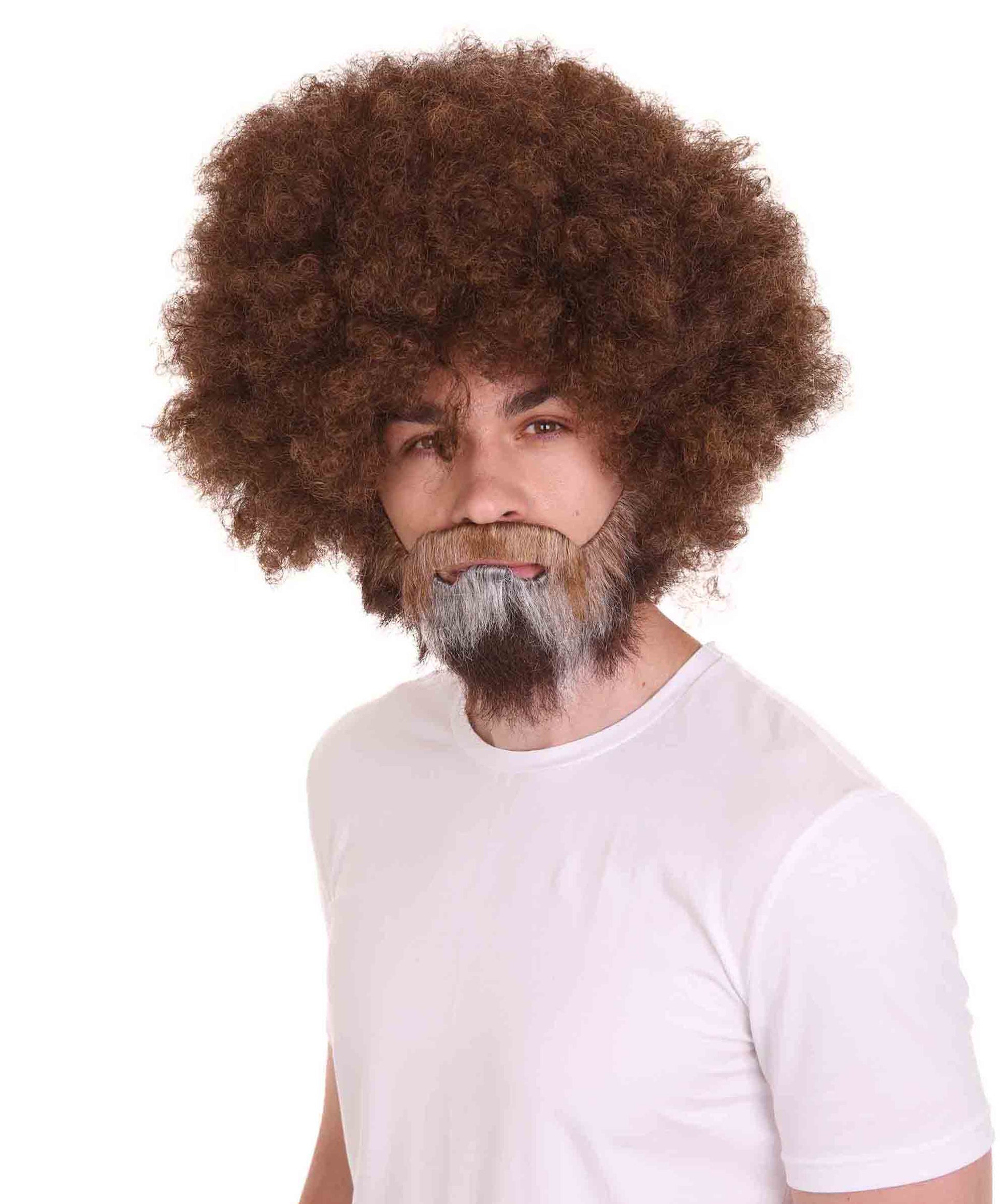 ハロウィンパーティ プレミアム男性用 H-4270 ボブ・ロス アフロウィッグ 顔ひげセット付き