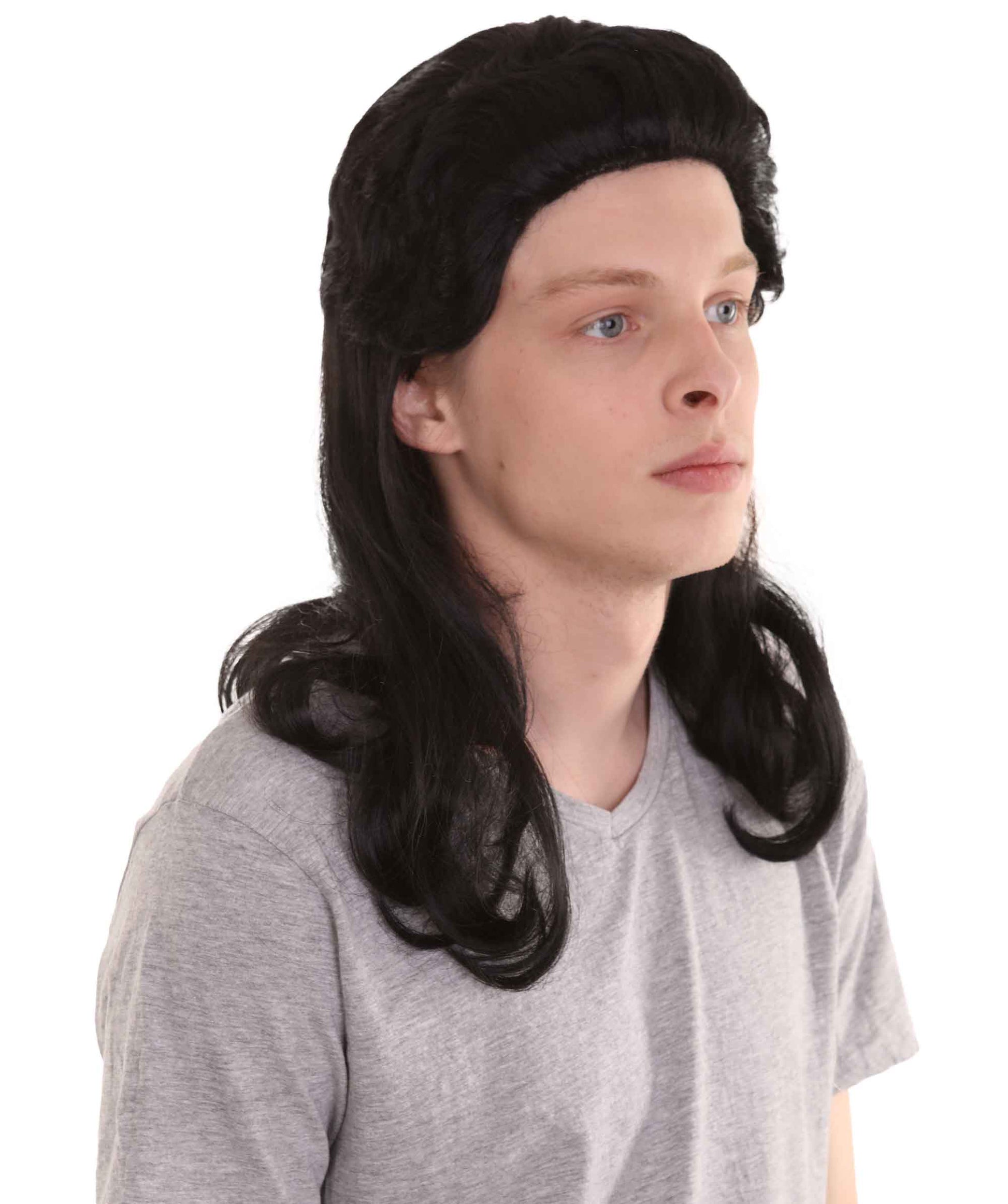 ハロウィンパーティー プレミアム 男性用 H-2260 80年代 マレット ブラック ウィッグ