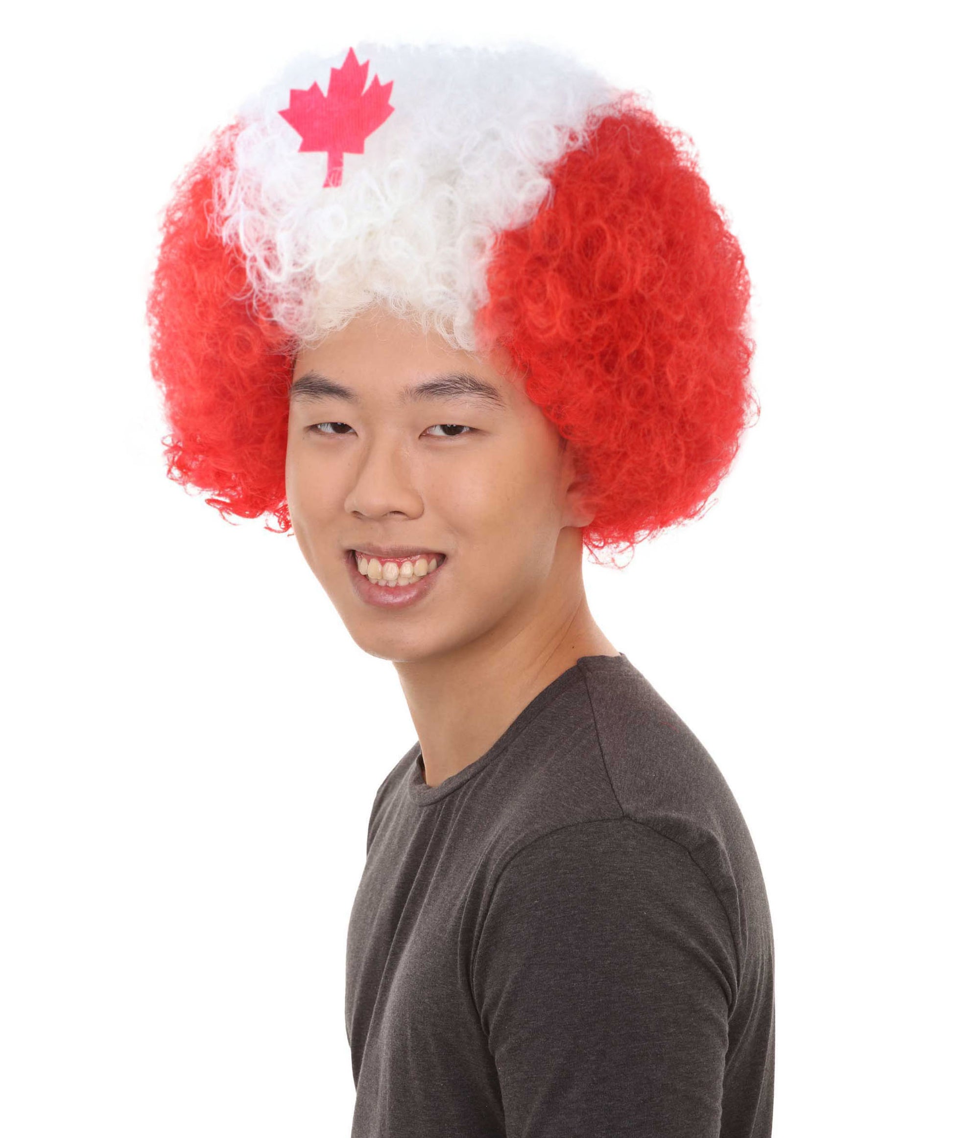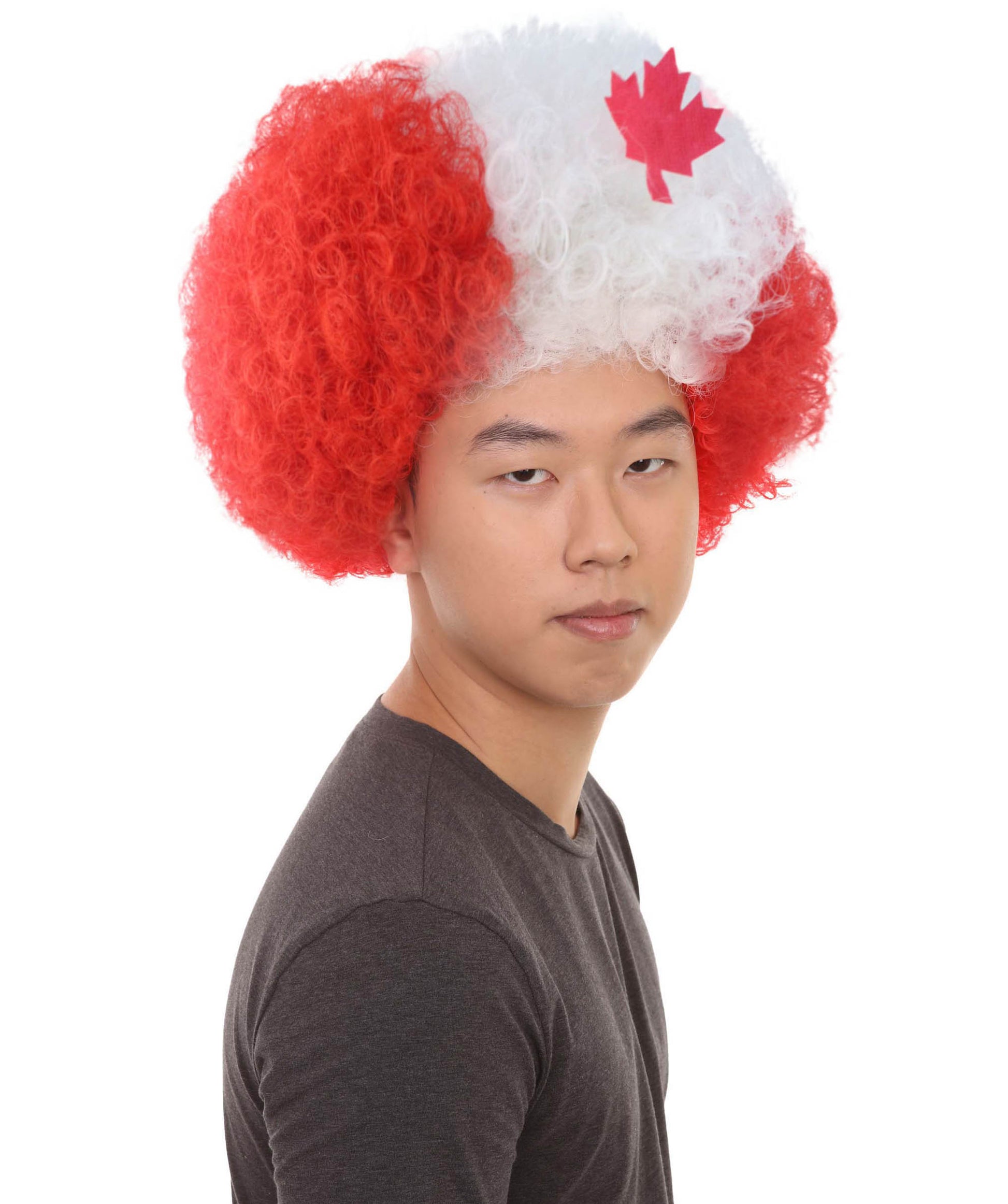 次のハロウィーンやコスプレイベントに最適なカナダ国旗アフロウィッグ
