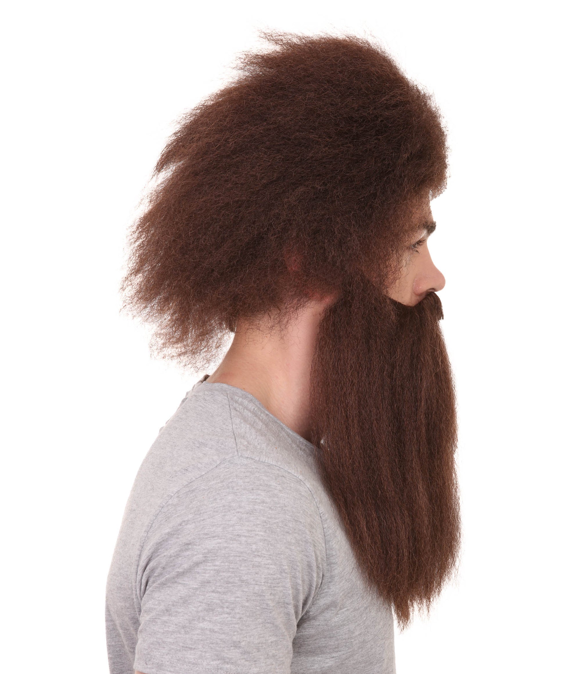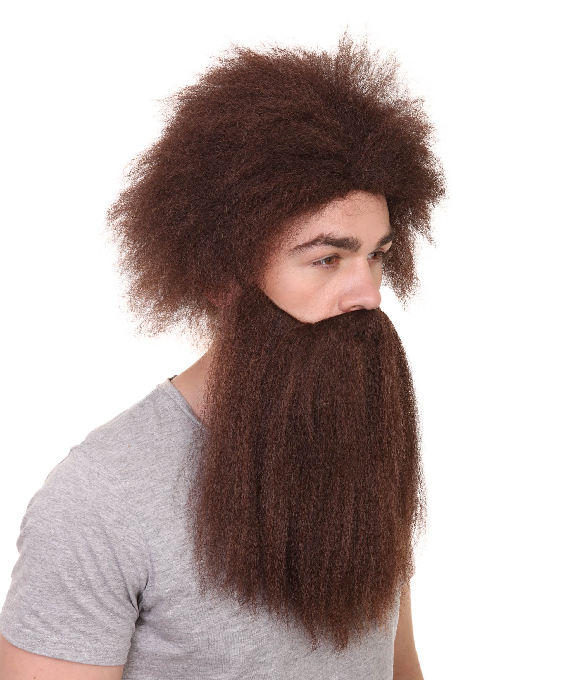 ハロウィンパーティー プレミアム 男性用 H-2381 ブラウン ケイブマン ウィッグ および ビアード セット