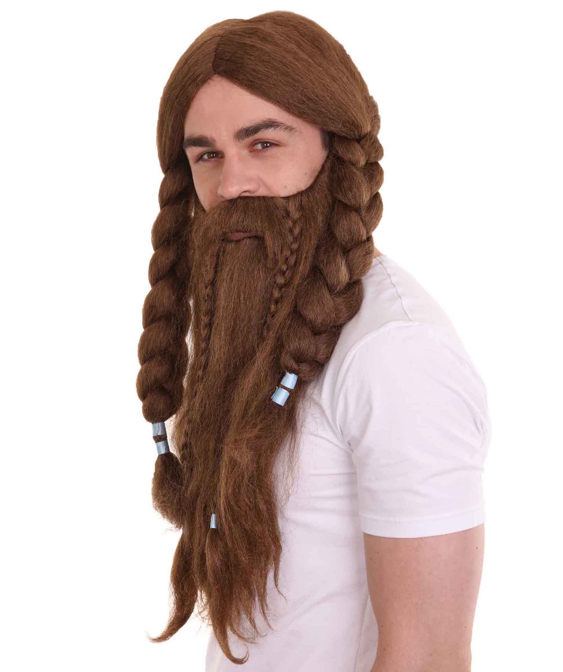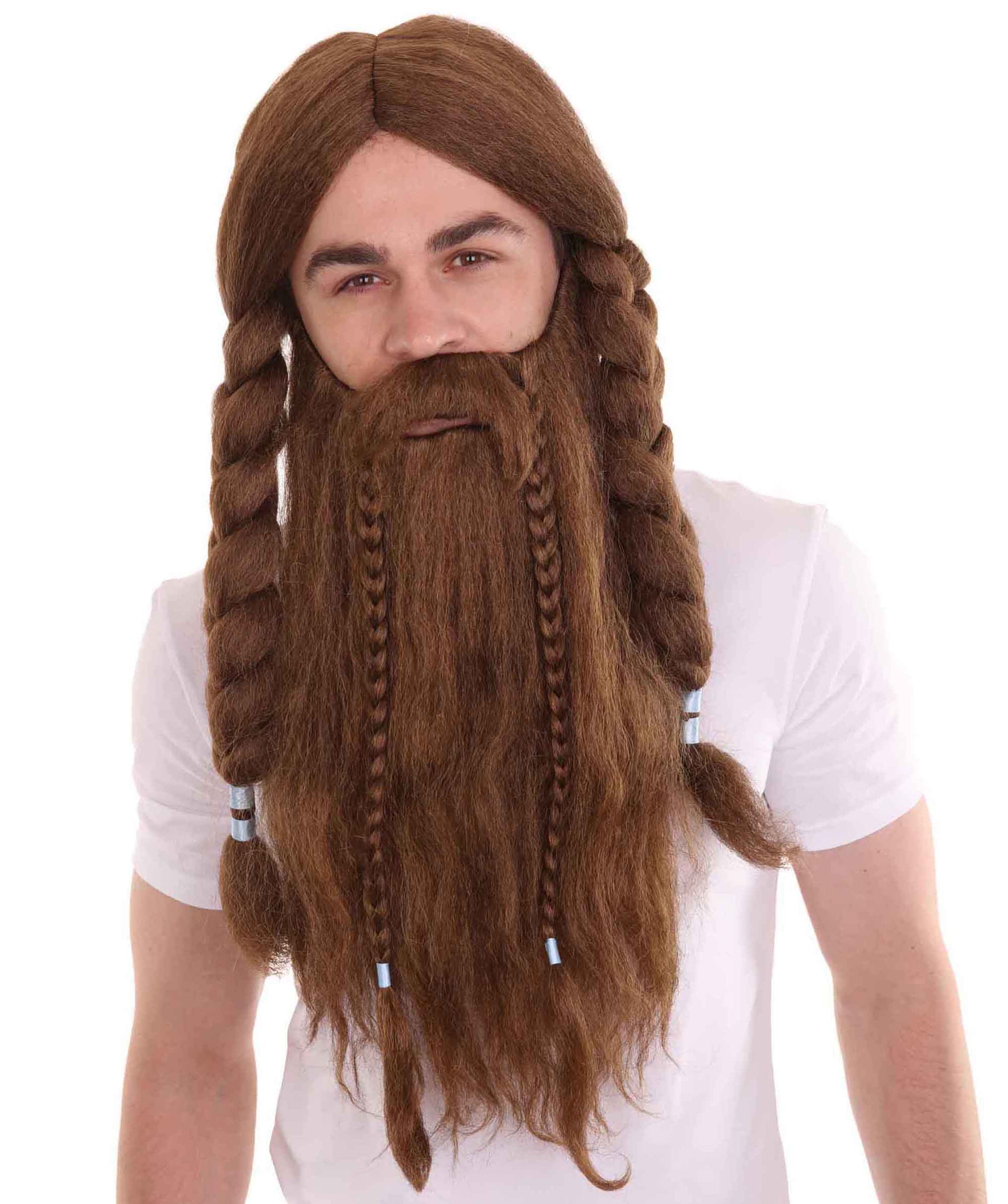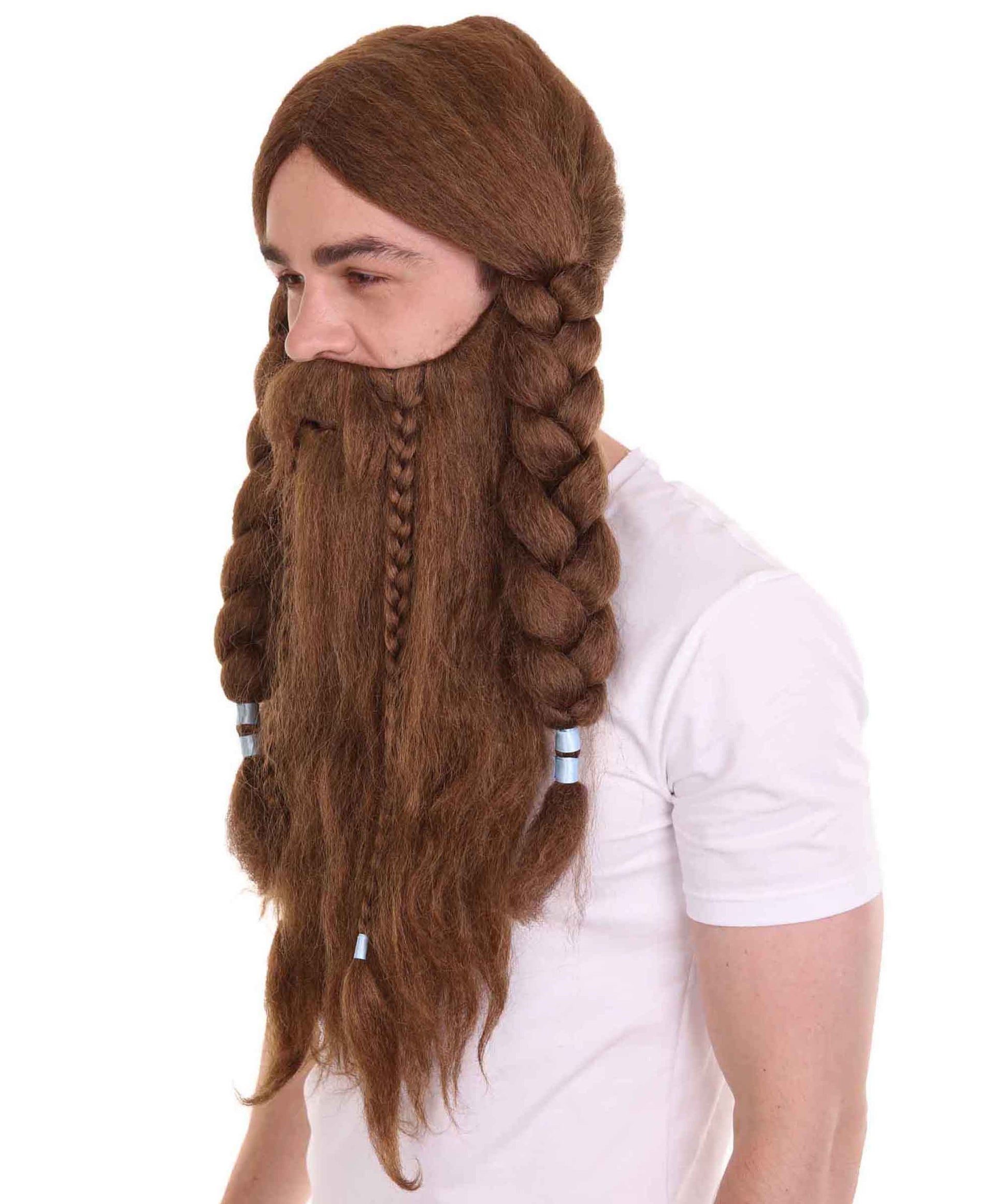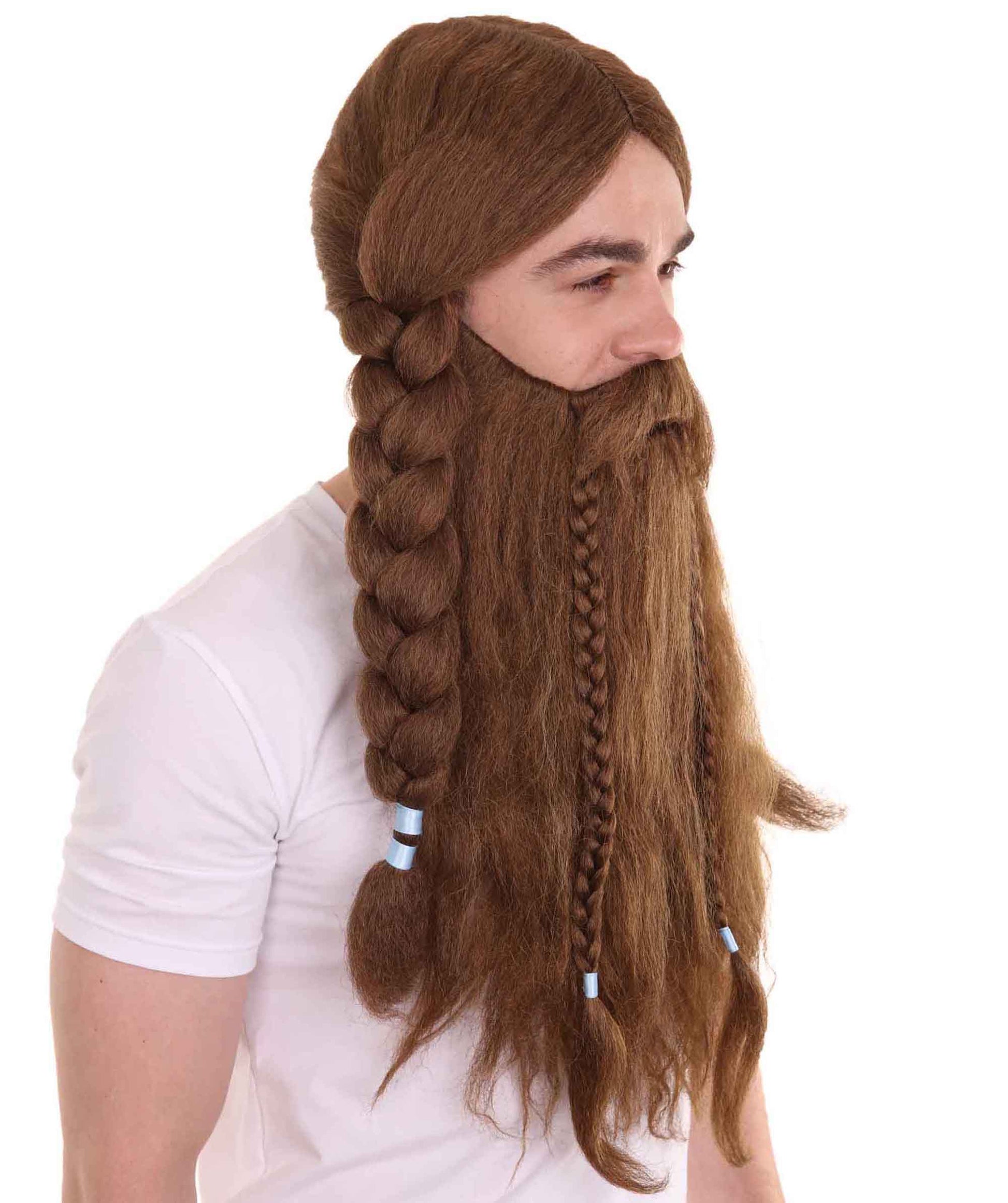 ハロウィンパーティープレミアム H-3613 バイキングウィッグ&ヒゲセット - ブラウン - 大人用